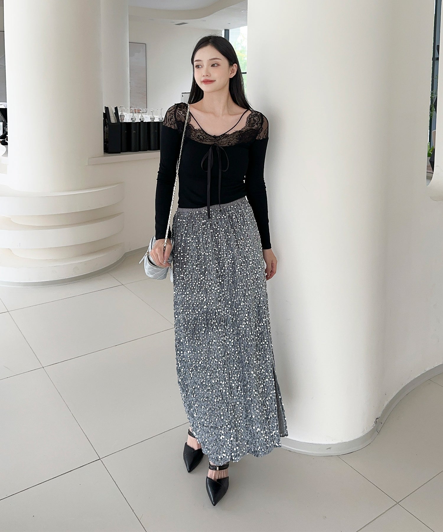 歩くたびにスパンコールがキラキラして、女性らしく華やかな印象に。