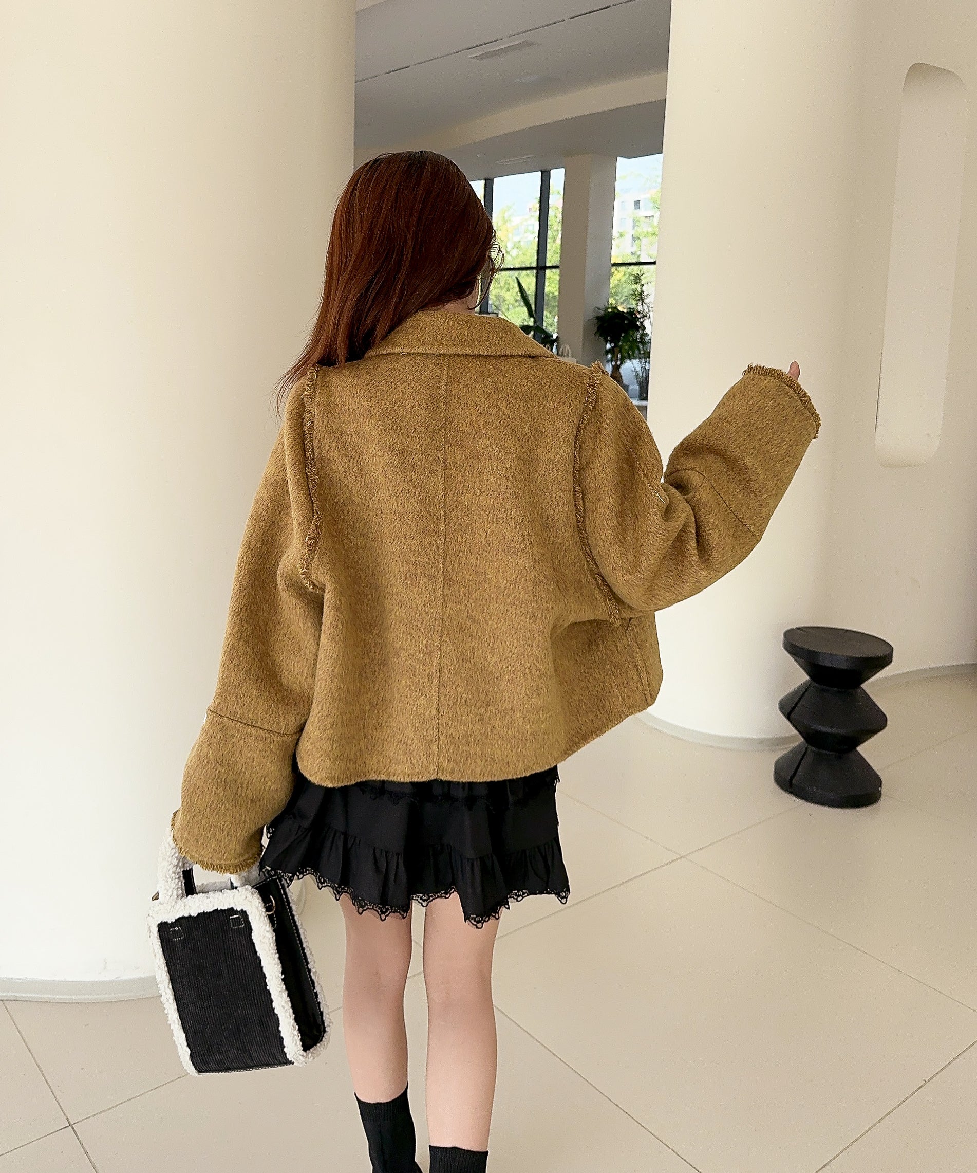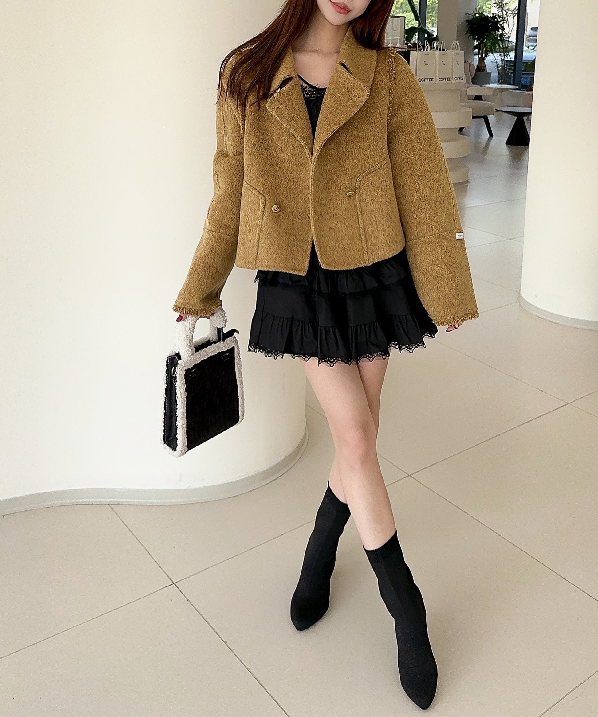 キュートな印象を与えるショート丈デザインで、スカートやワンピースとの相性も抜群。