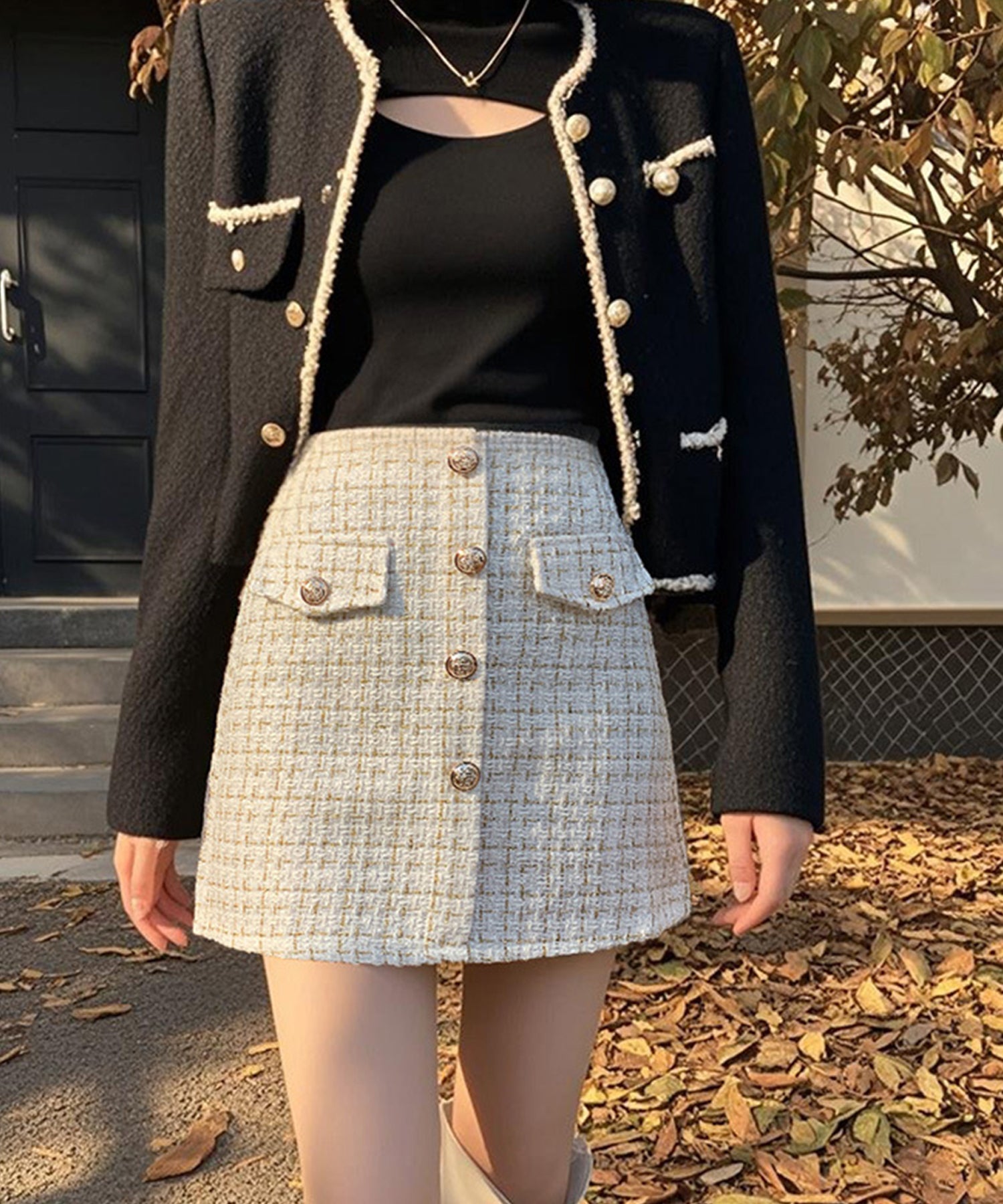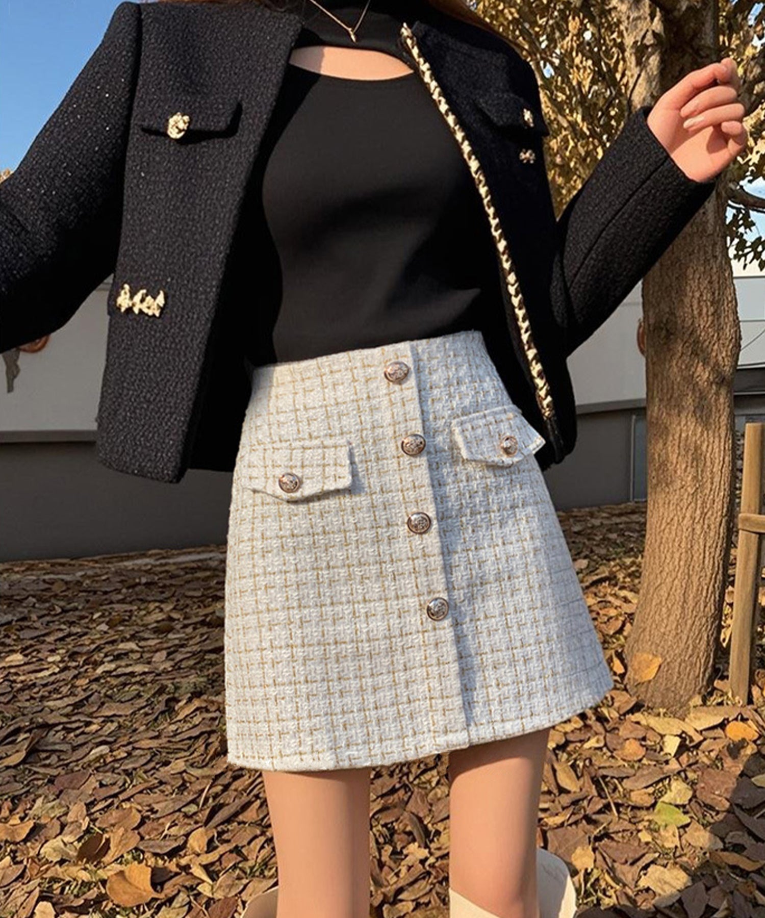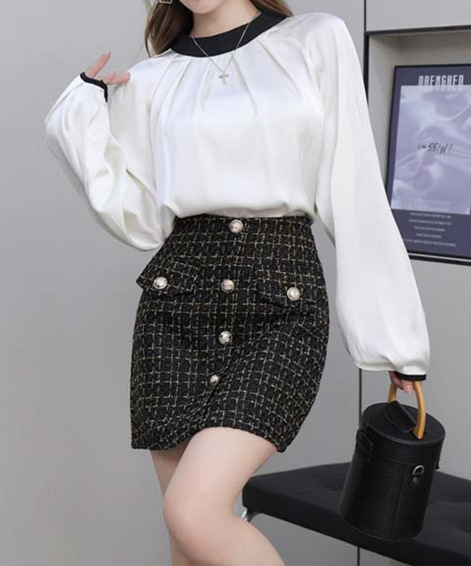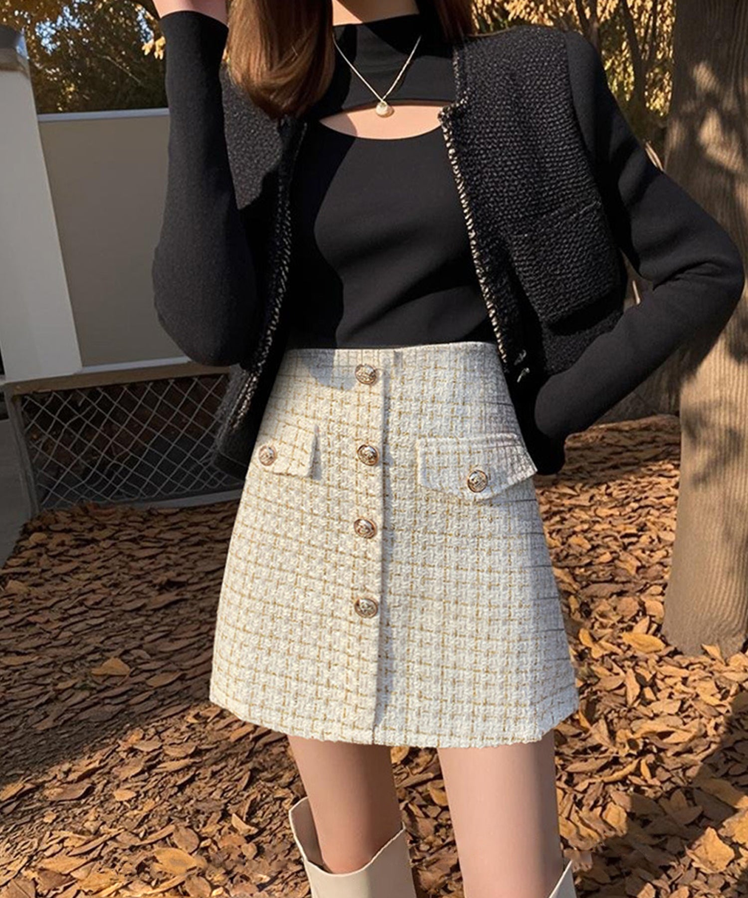 ブラウスやニットと合わせれば、上品フェミニンな印象に。