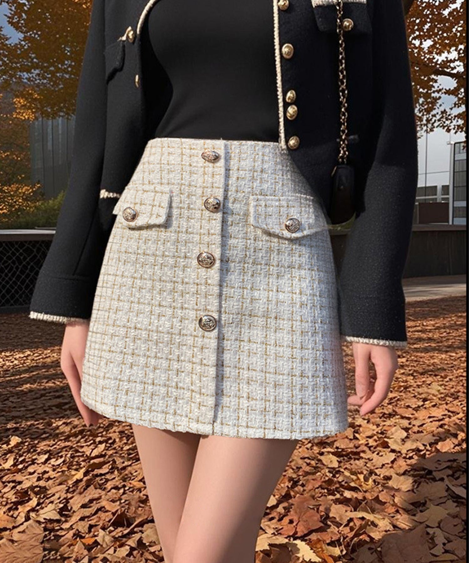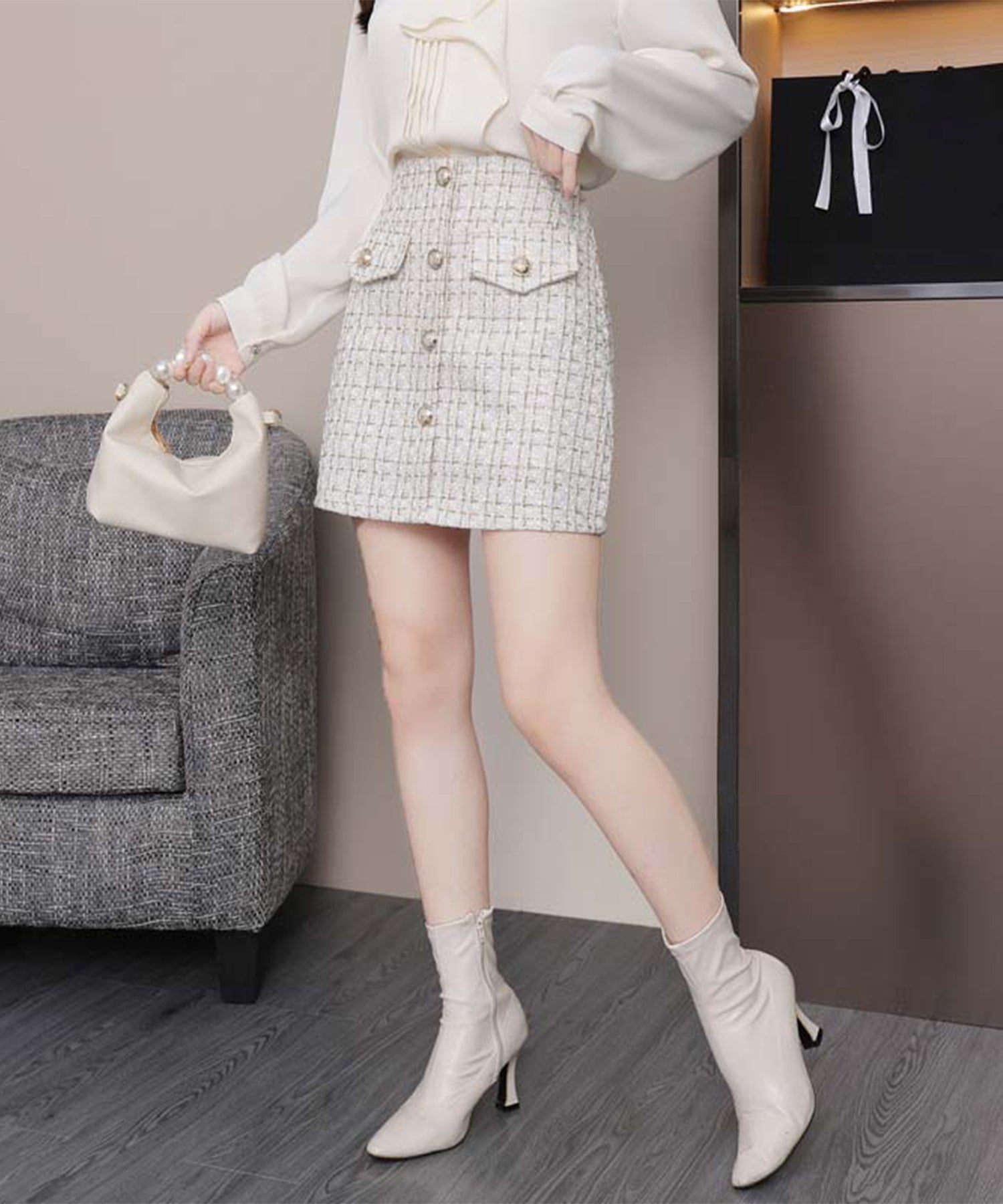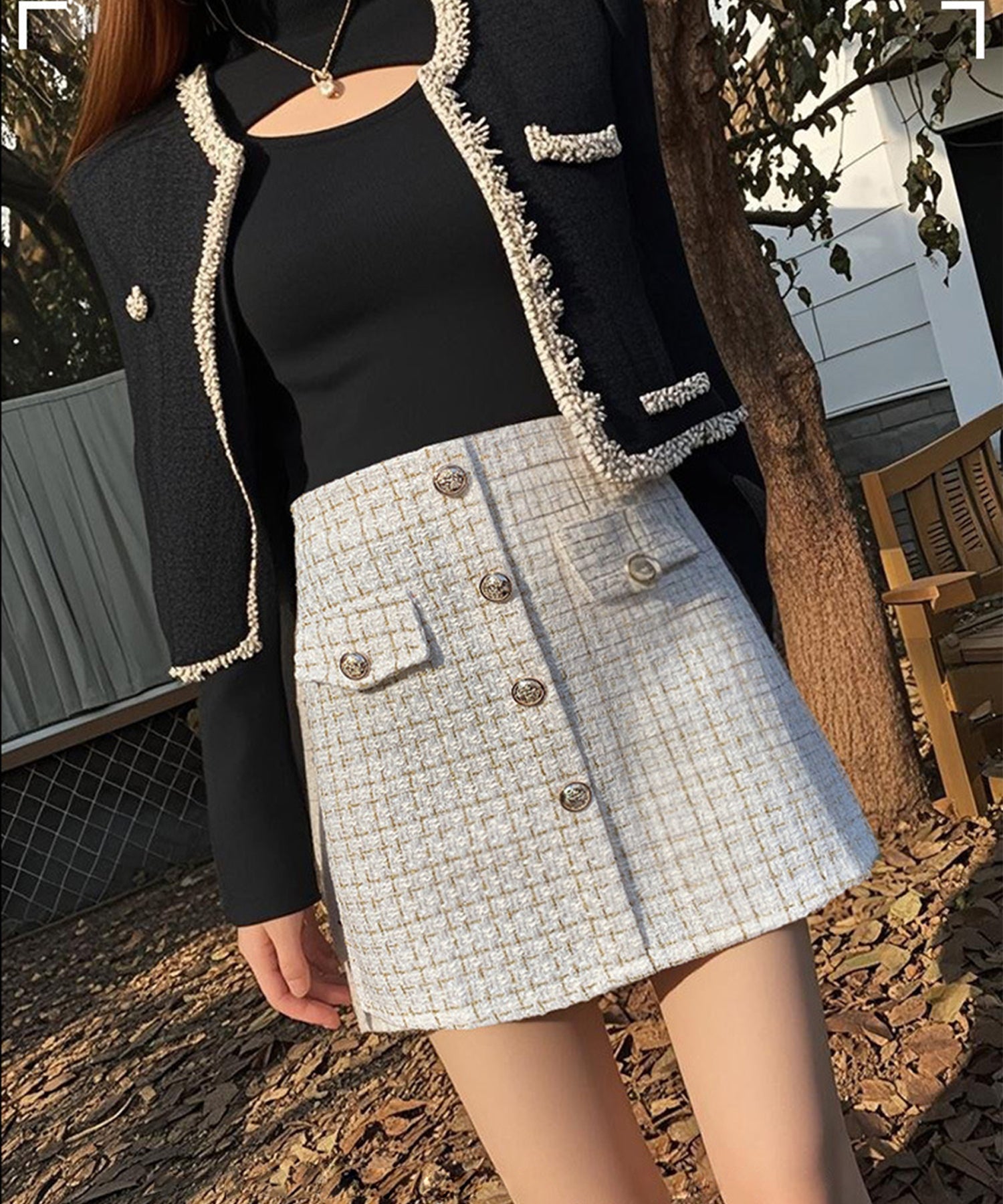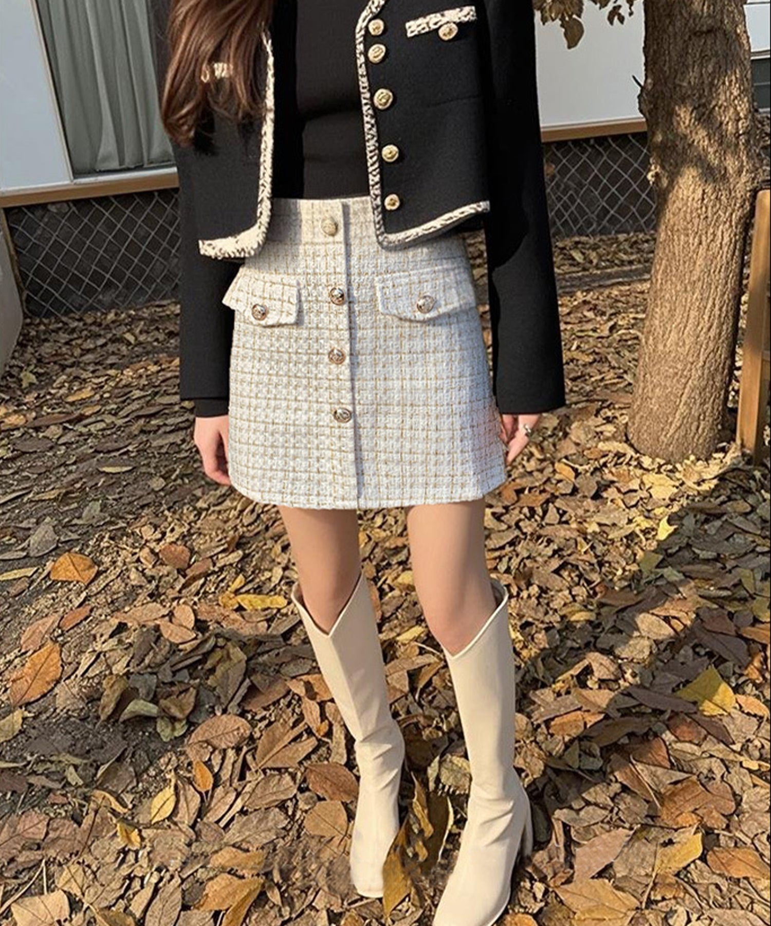 ブラウスやニットと合わせれば、上品フェミニンな印象に。