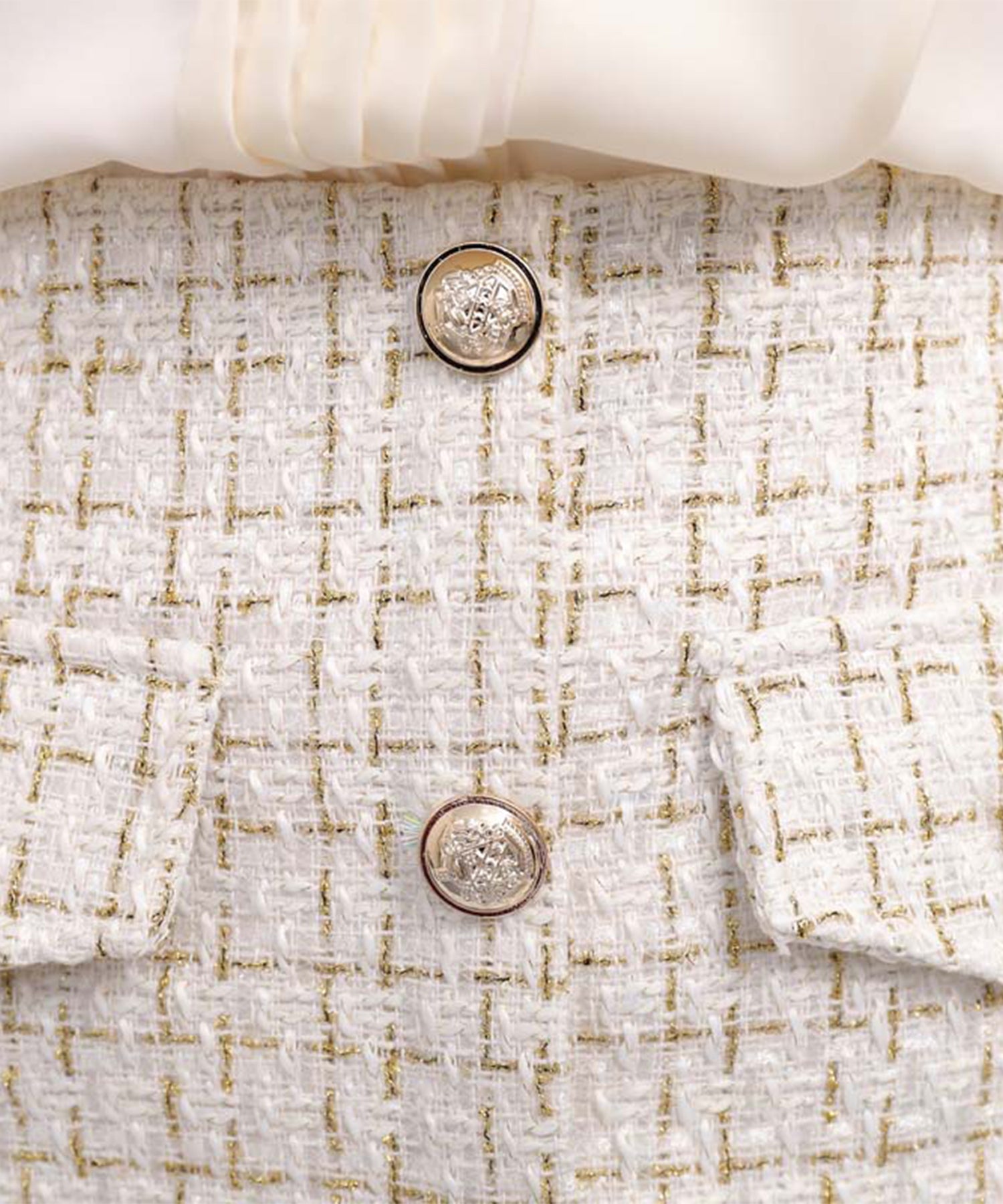 フロントのゴールドボタンがワンポイントになり、エレガントなテイストに。