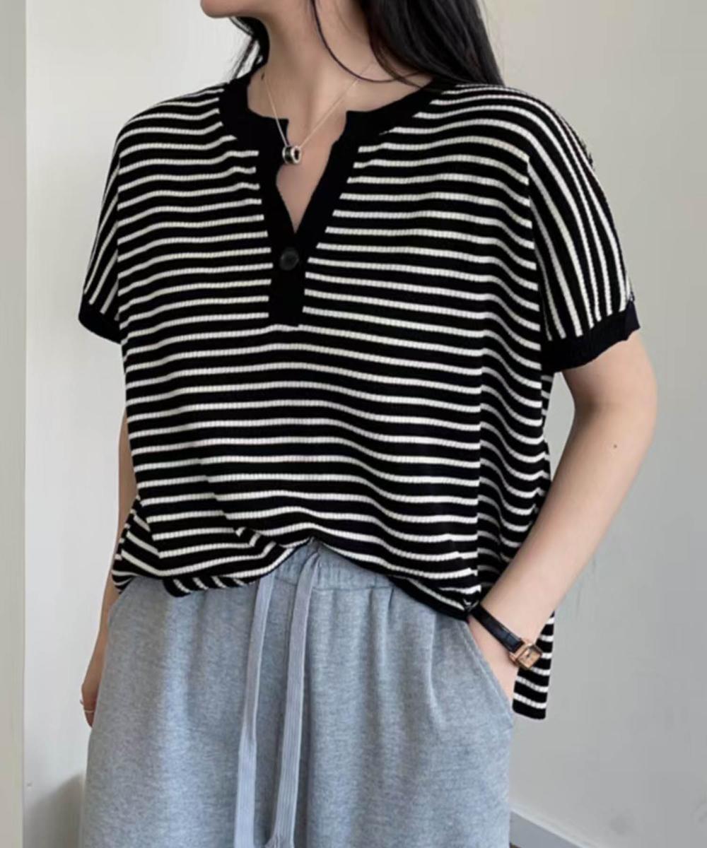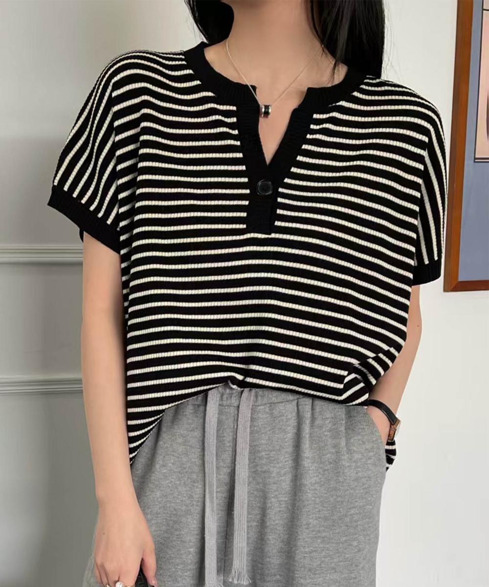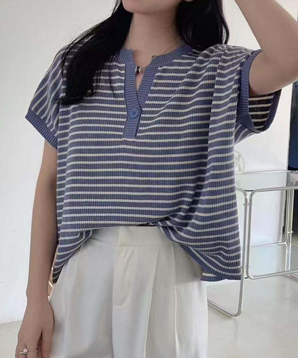 【aimoha】Yヘンリーネックボーダーリラックスプルオーバー