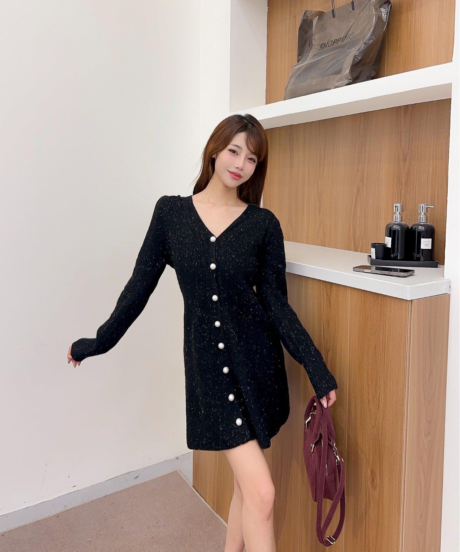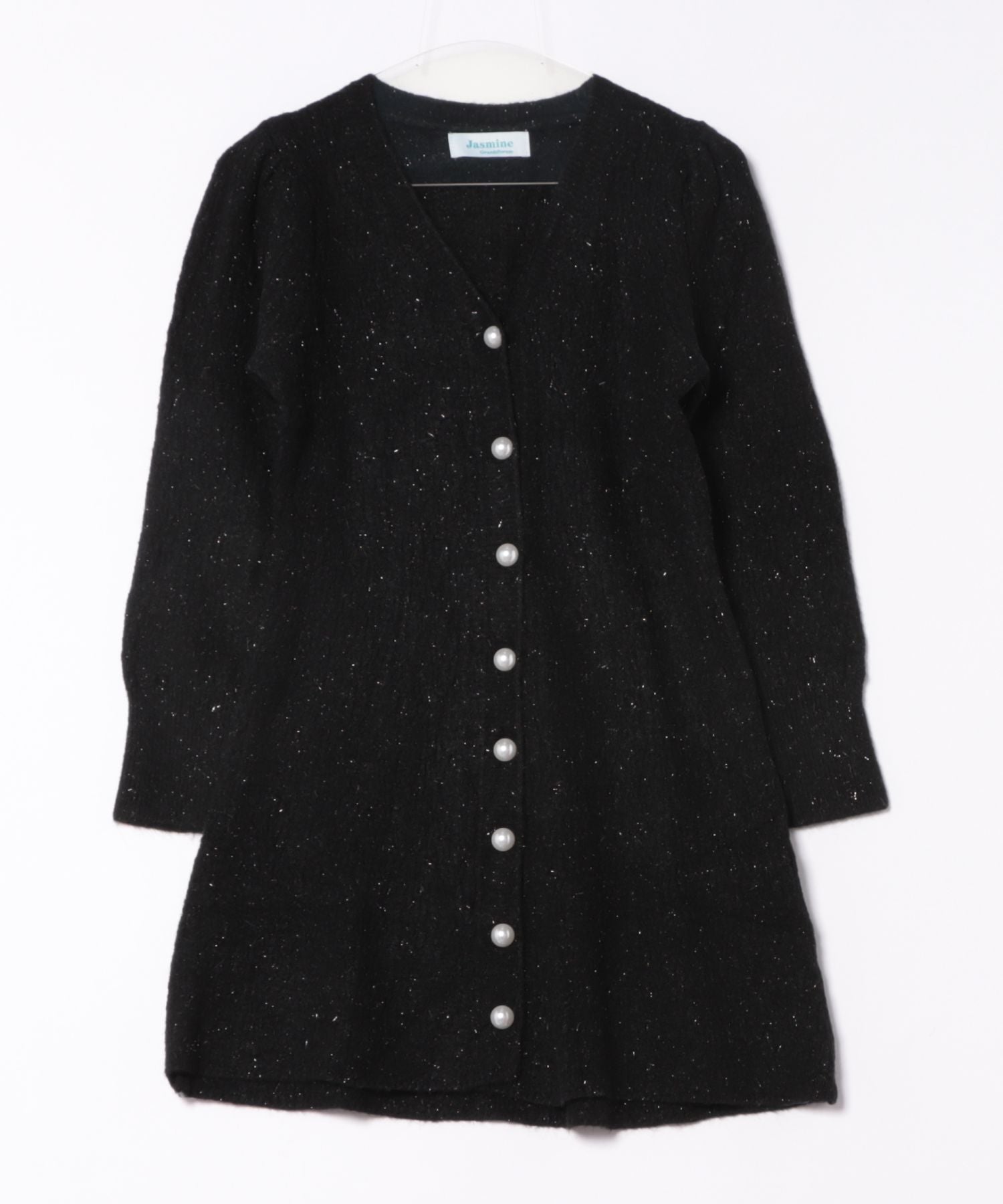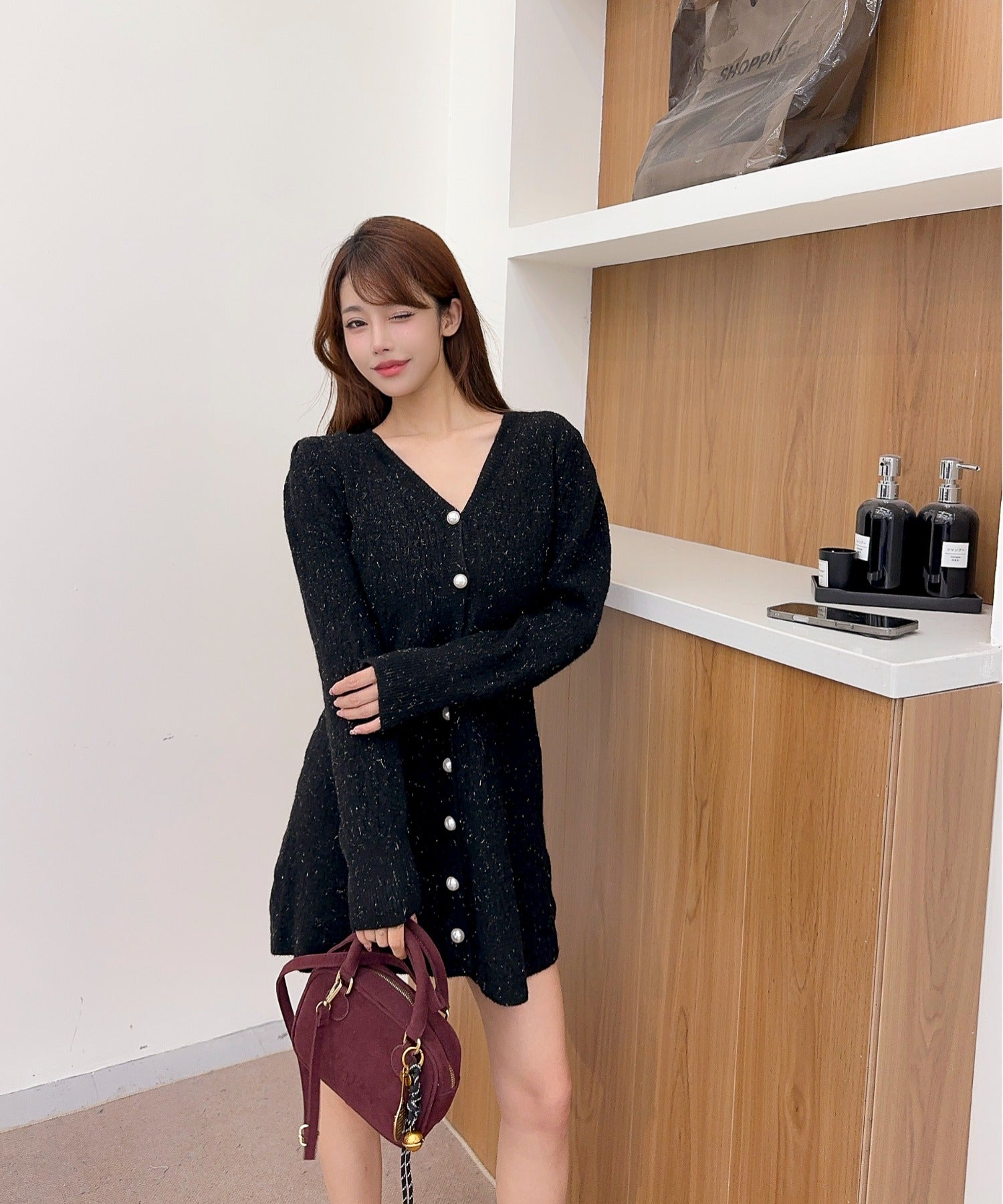 胸元のパールボタンがワンポイントになり、エレガントなテイストに。