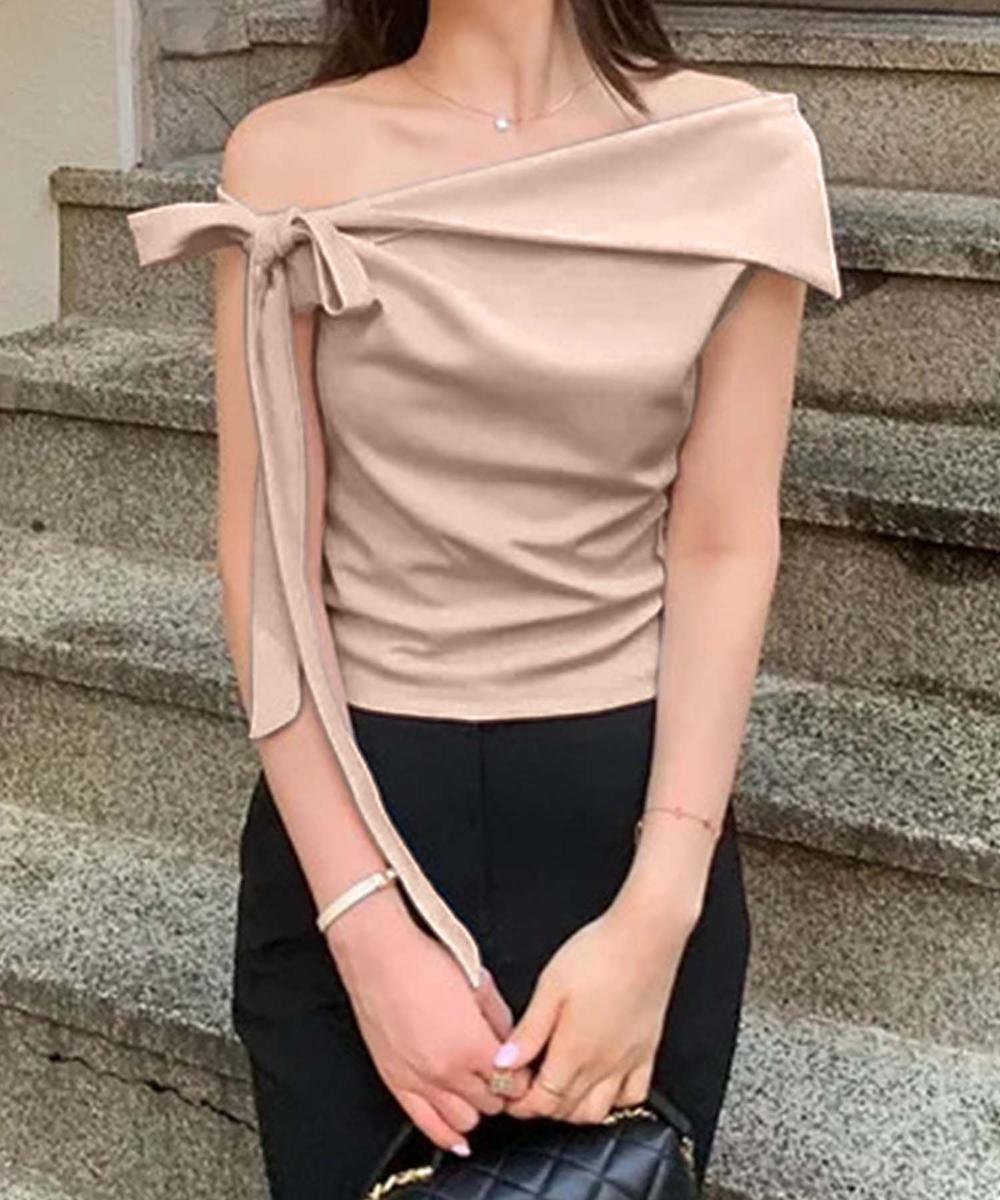 トレンド感溢れるデザインで、女性らしさを引き立てる肩見せショートトップス。