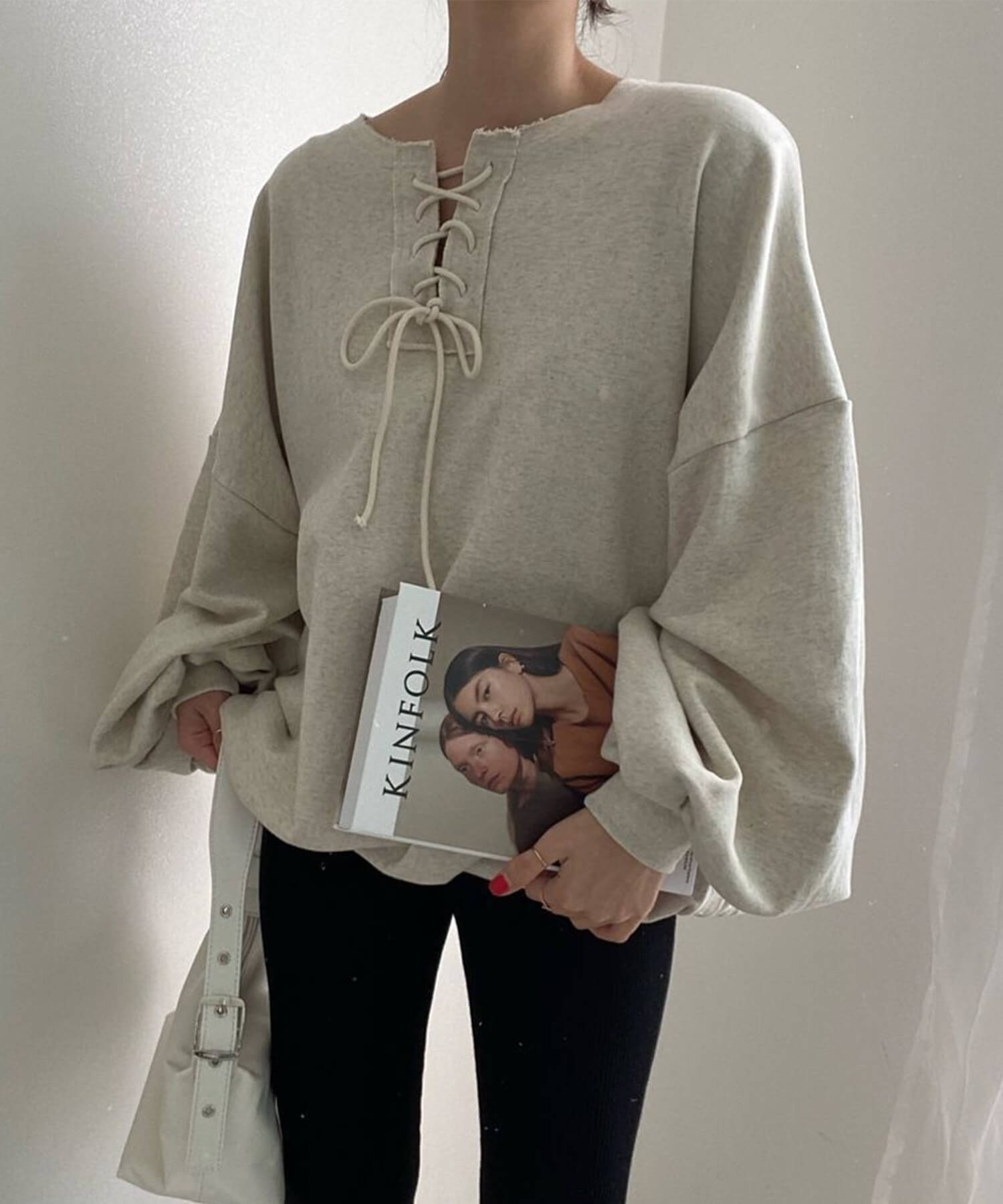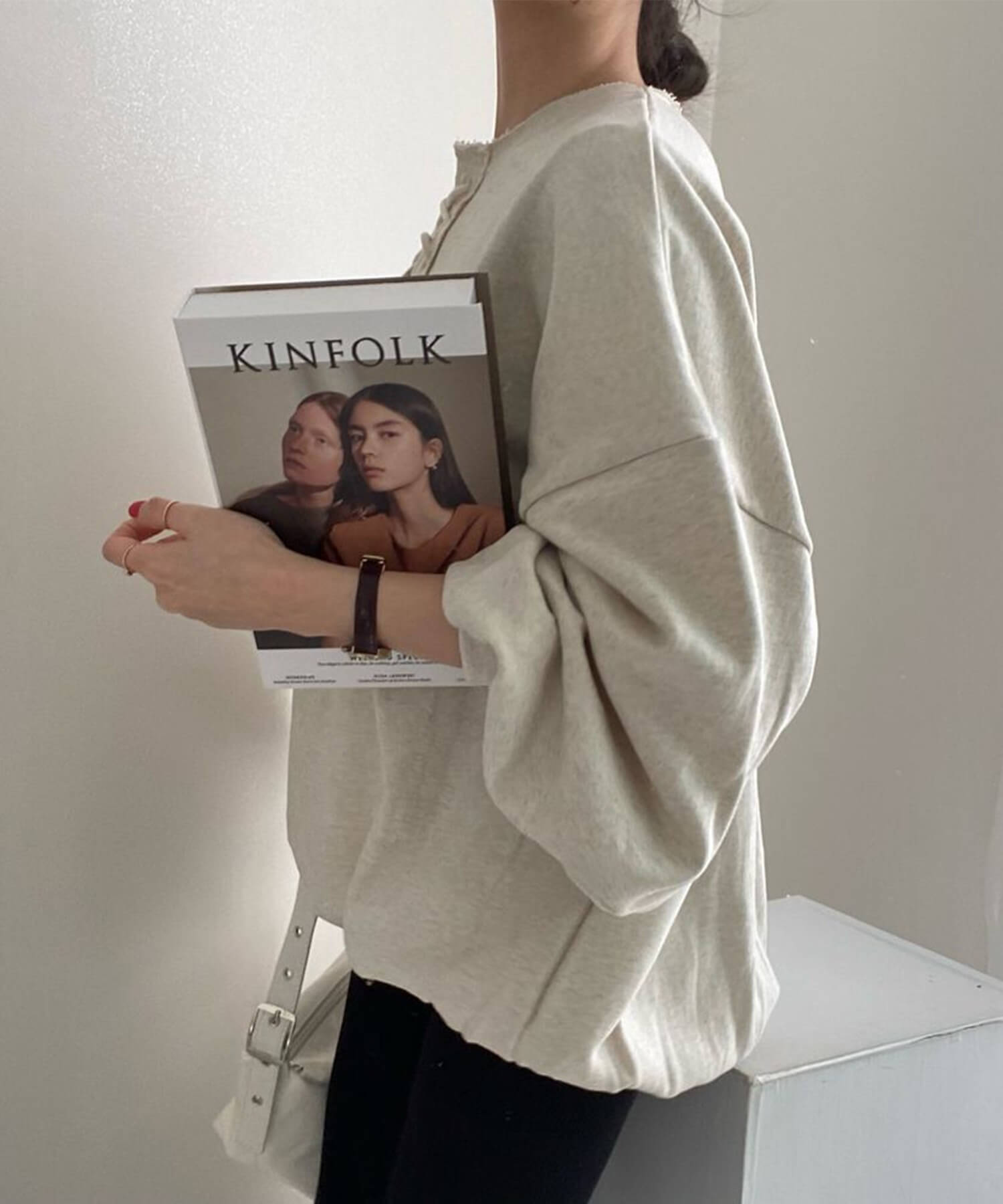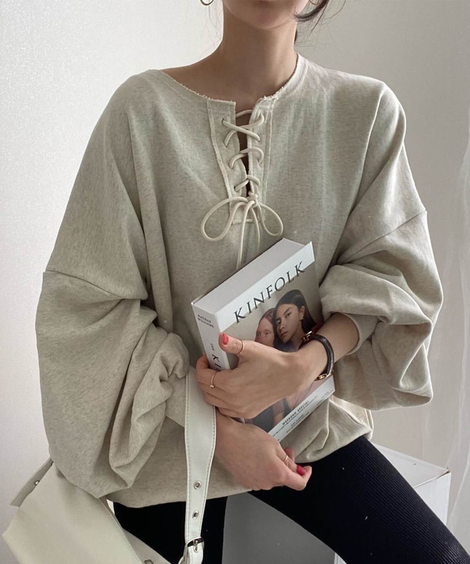 袖のサイズ感がだぼっとした今年らしいボリュームスリーブのスウェットです。