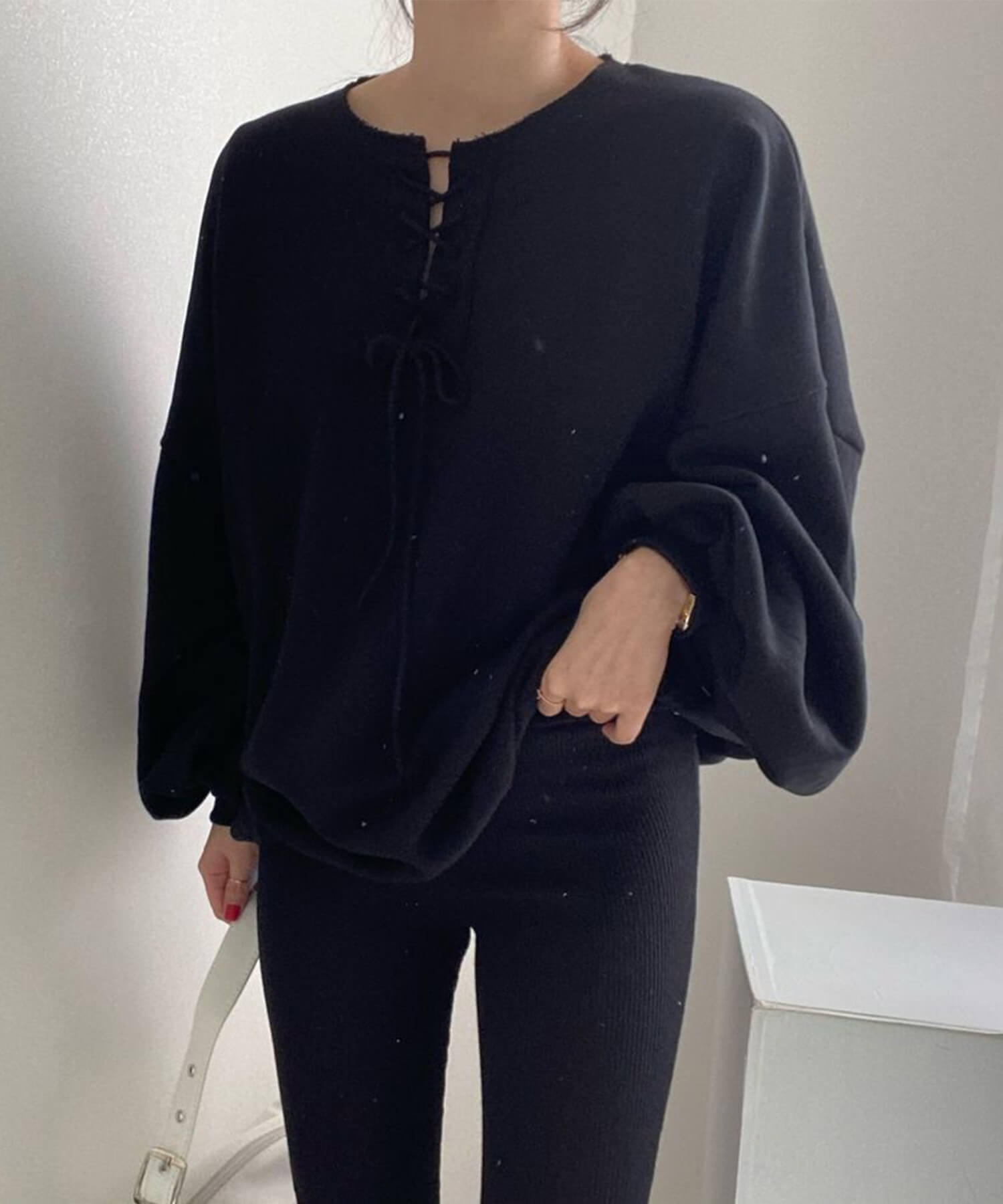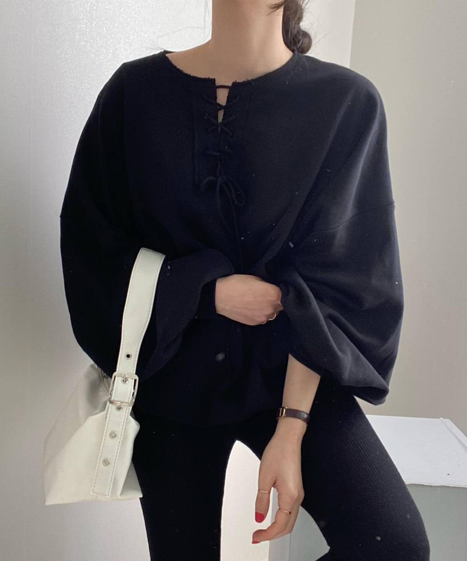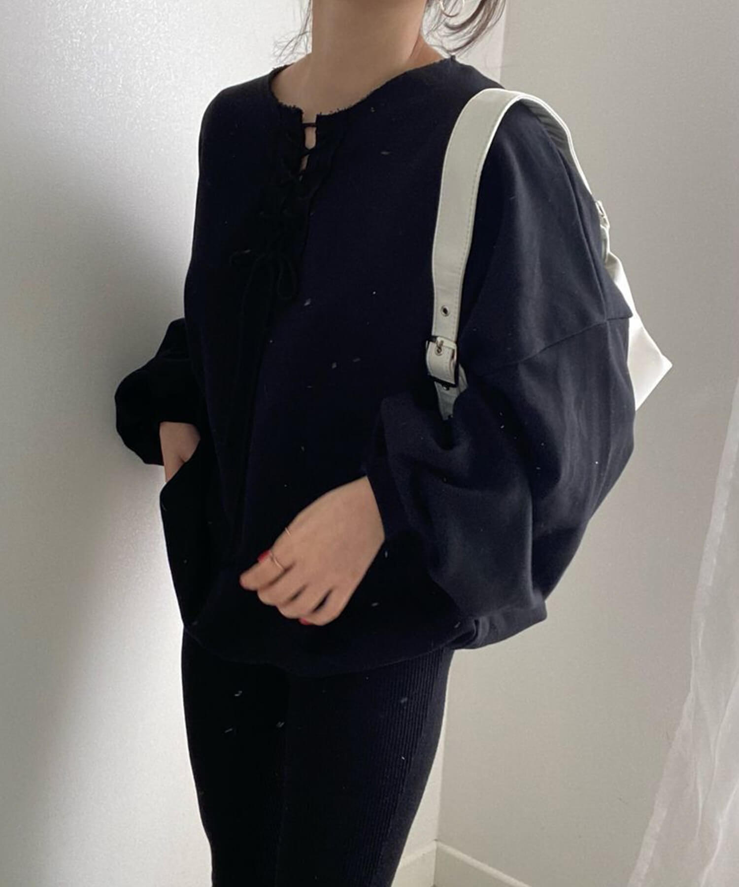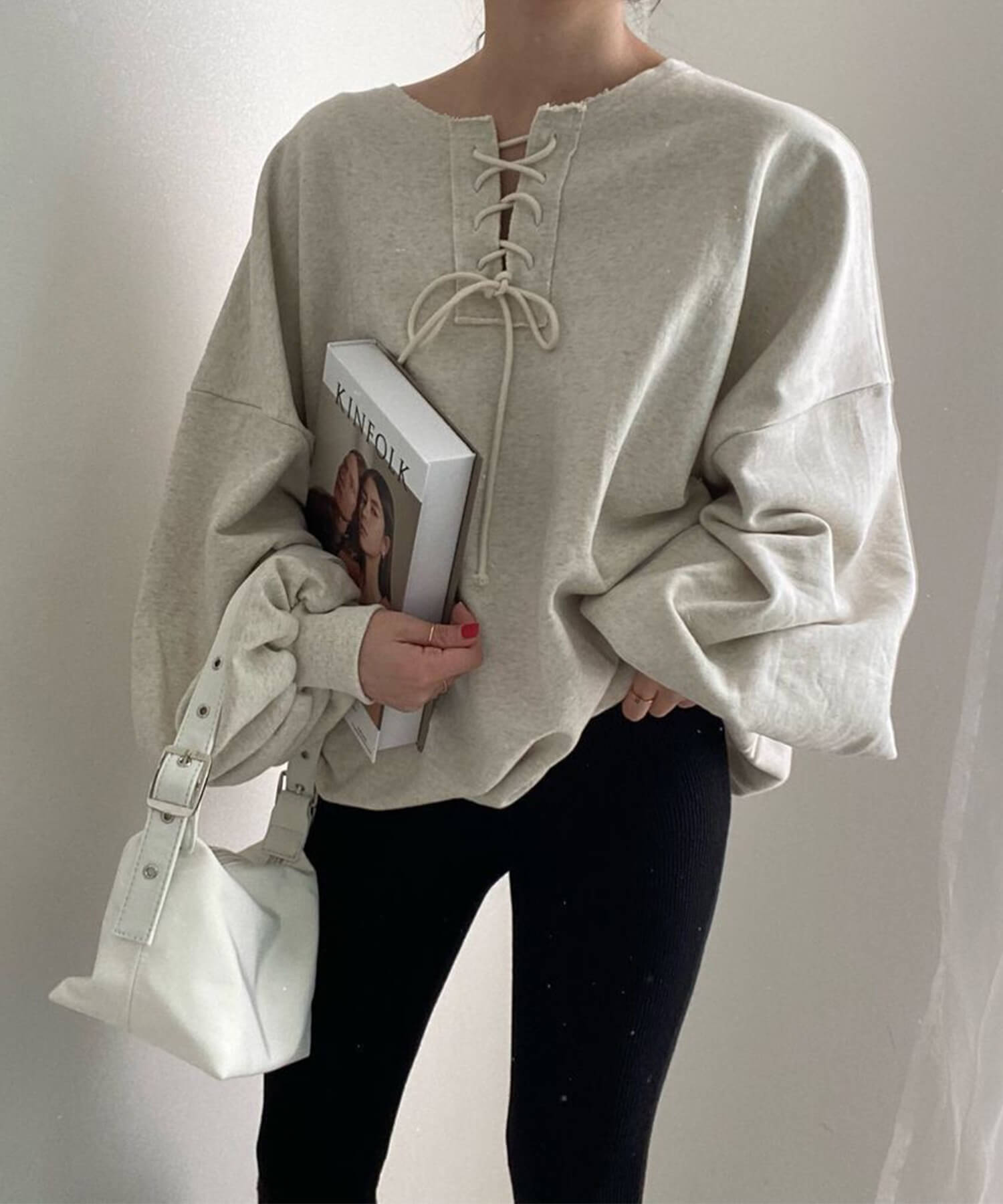 袖のサイズ感がだぼっとした今年らしいボリュームスリーブのスウェットです。