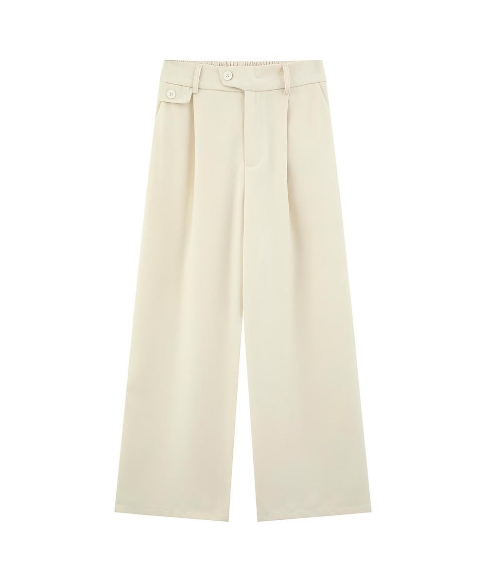 洗練されたワイドシルエットのスラックスパンツ。後ろゴムでゆったりとした履き心地。揺れ感のある綺麗なシルエットで上品な大人スタイルに。