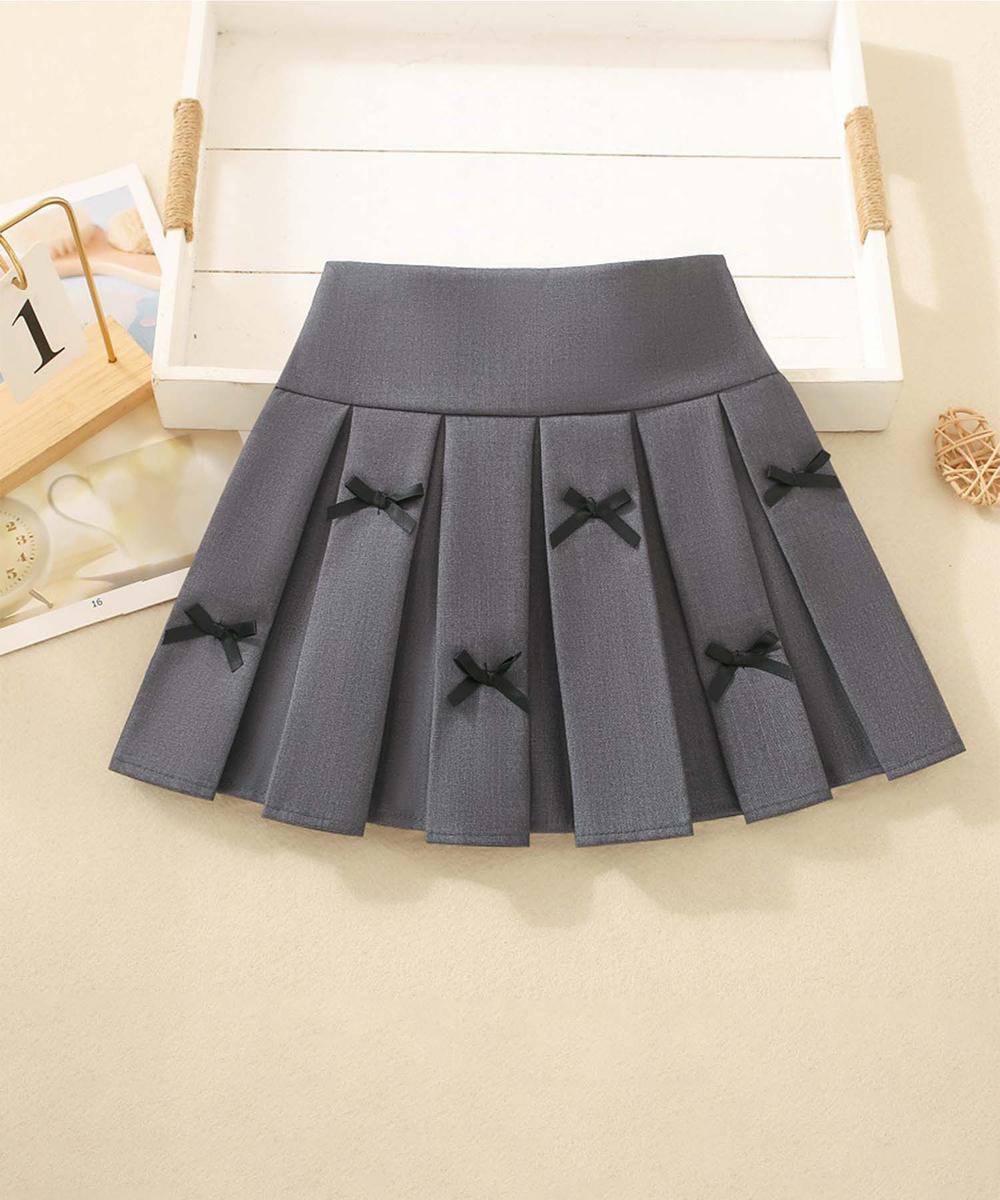 プリーツが上品で落ち着いた印象を与え、クラシックなスタイルを際立たせる。小さなリボンがあしらわれており、可愛らしさと華やかさをプラス。