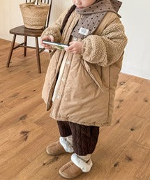 ゆったりサイズ感で中に厚手のセーターを着てもごわつきにくい中綿ジャケット。おしりまですっぽりと隠れる丈感と、裏起毛でとても暖かな1枚。袖のボア切り替えが可愛く、ユニセックスで着用していただけます。