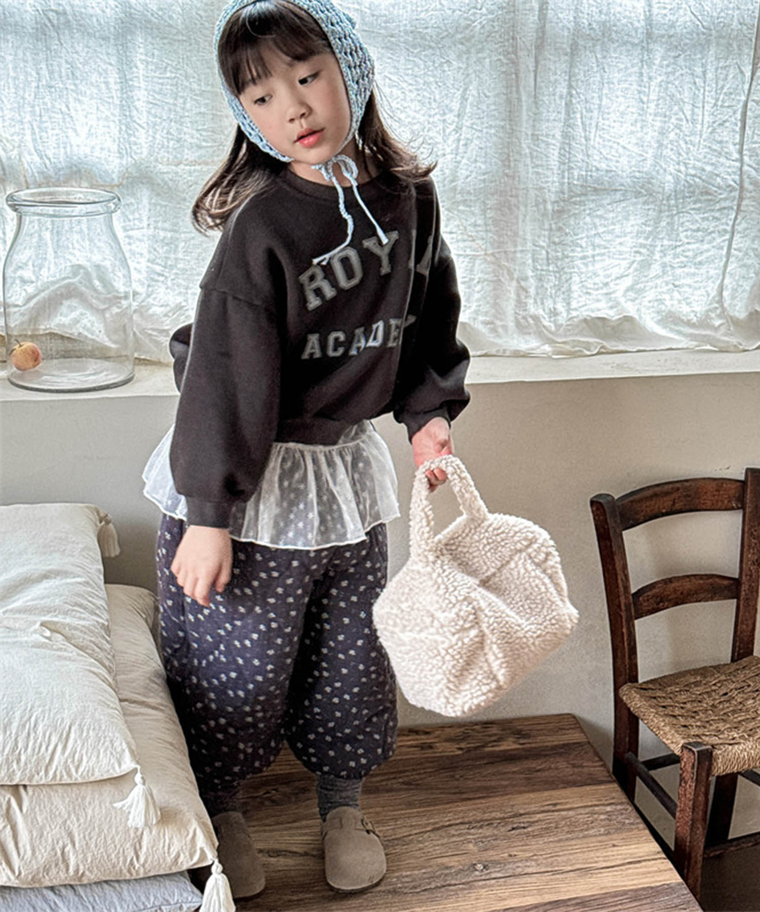 小花柄がナチュラルで可愛いワイドパンツ。肌に優しい綿100%の生地に中綿をはさんでいるため、防寒性抜群で過ごしやすいアイテムです。ウエストはゴム仕様で、ふんわりとしたシルエットになっているため、ストレスフリーな履き心地。裾にはシルエットを際立たせるゴム入り。シンプルにスウェットやニットを合わせるのがおすすめです。