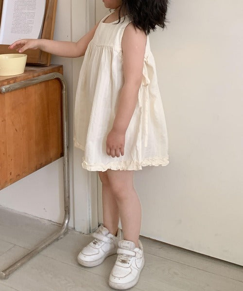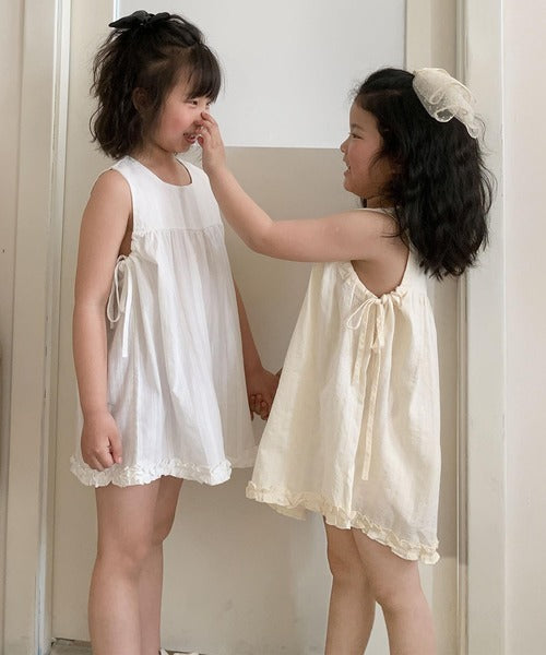 両サイドにはリボンが施され、結ぶことでシルエットの調整が可能。