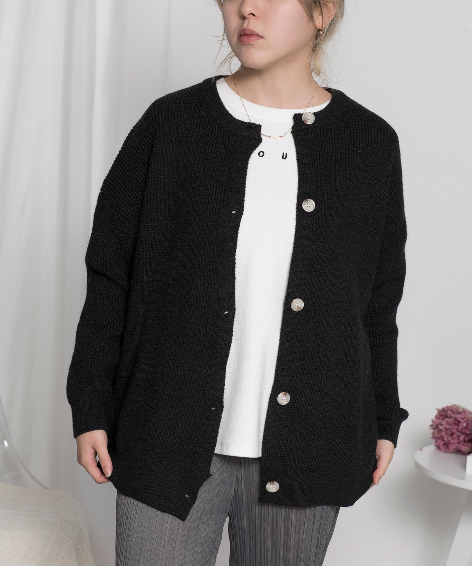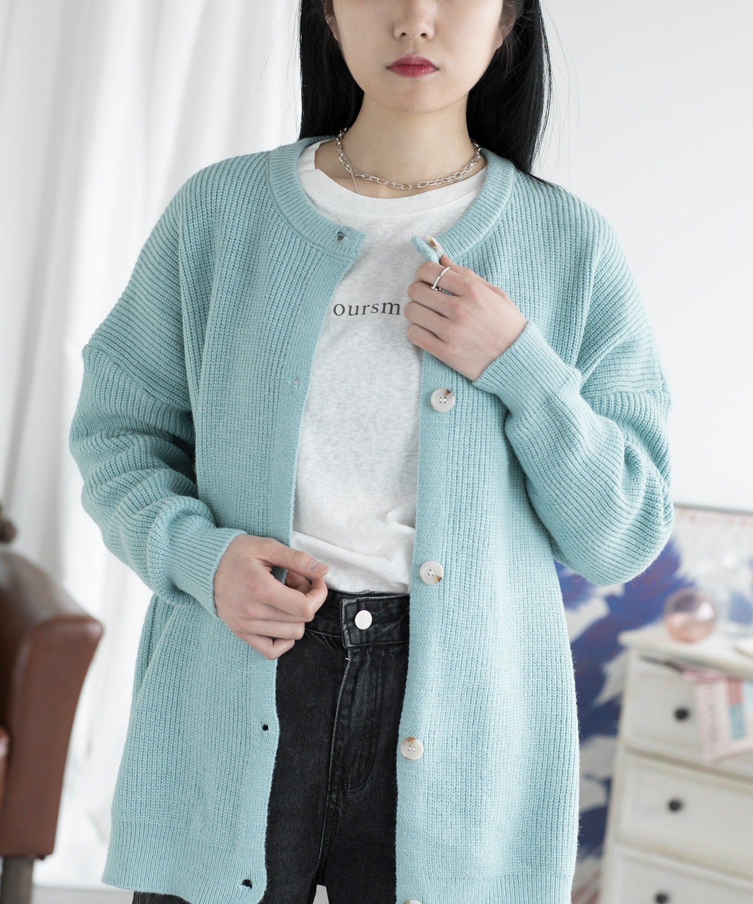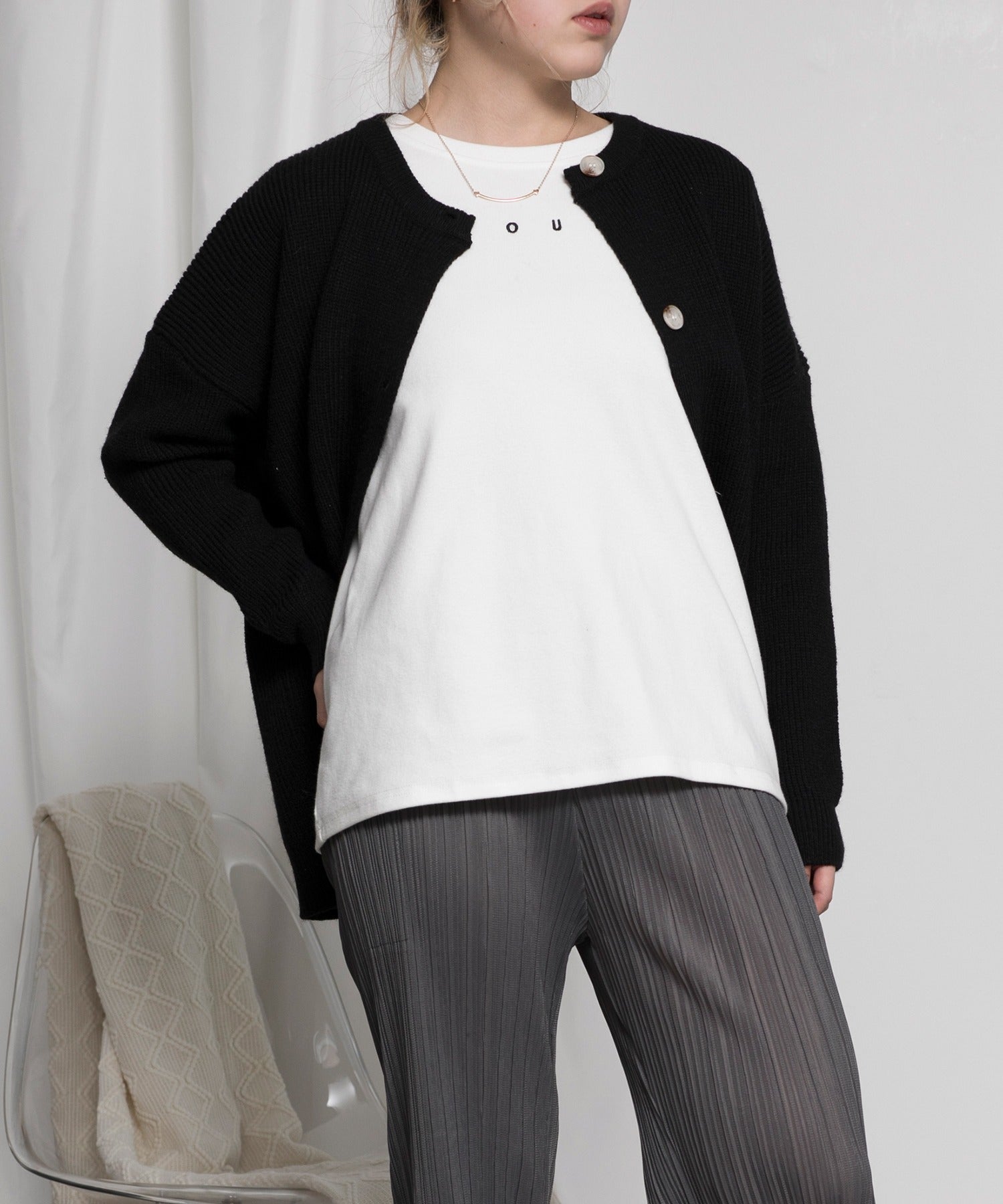 ラウンドネックなので前を閉じるとオーバートップス風に着ることもできます。