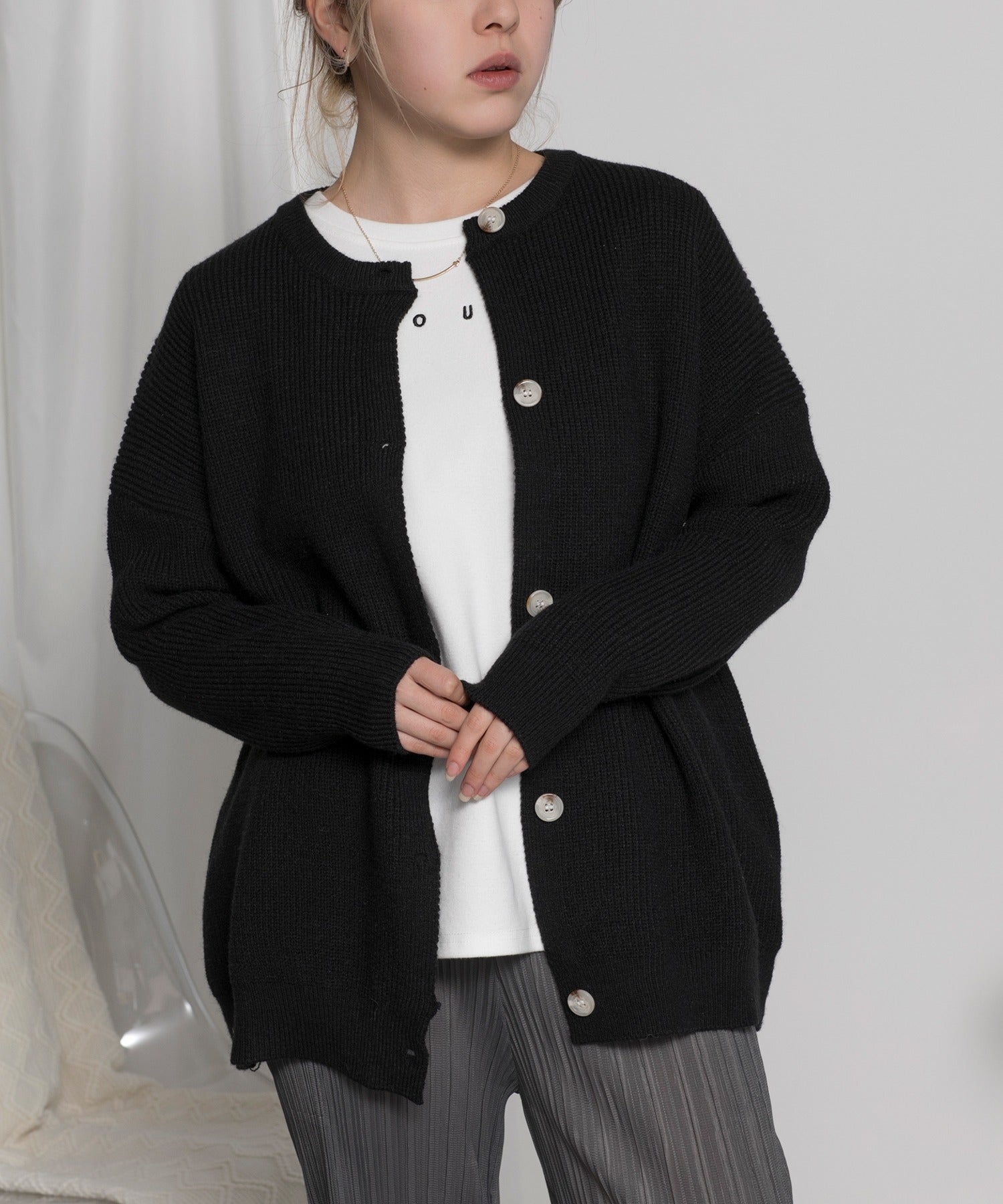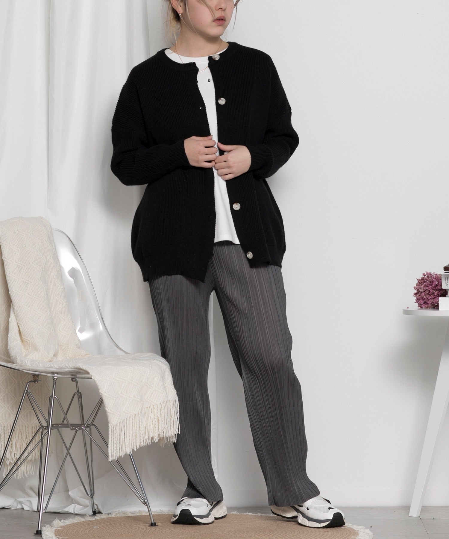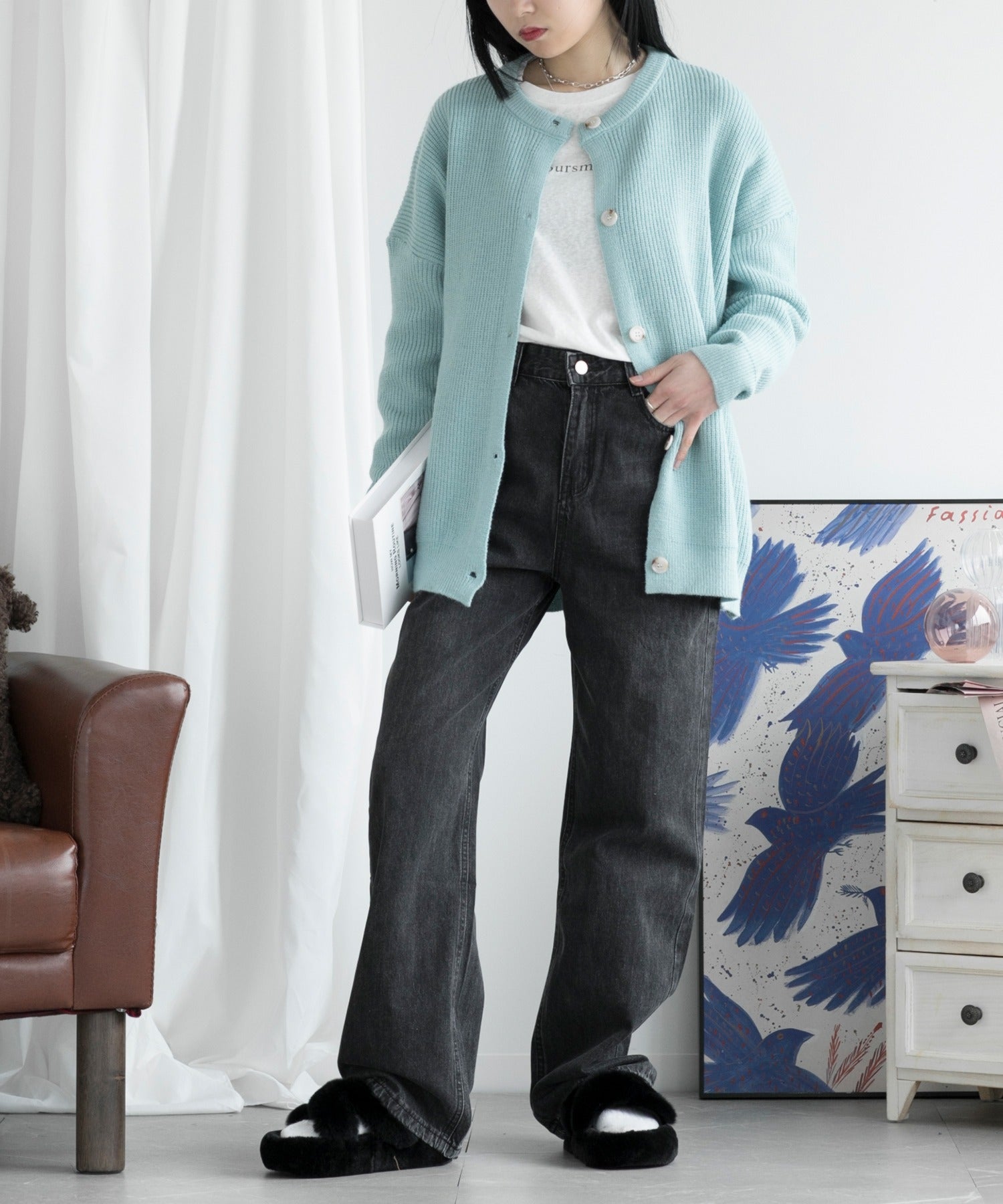 ラウンドネックなので前を閉じるとオーバートップス風に着ることもできます。