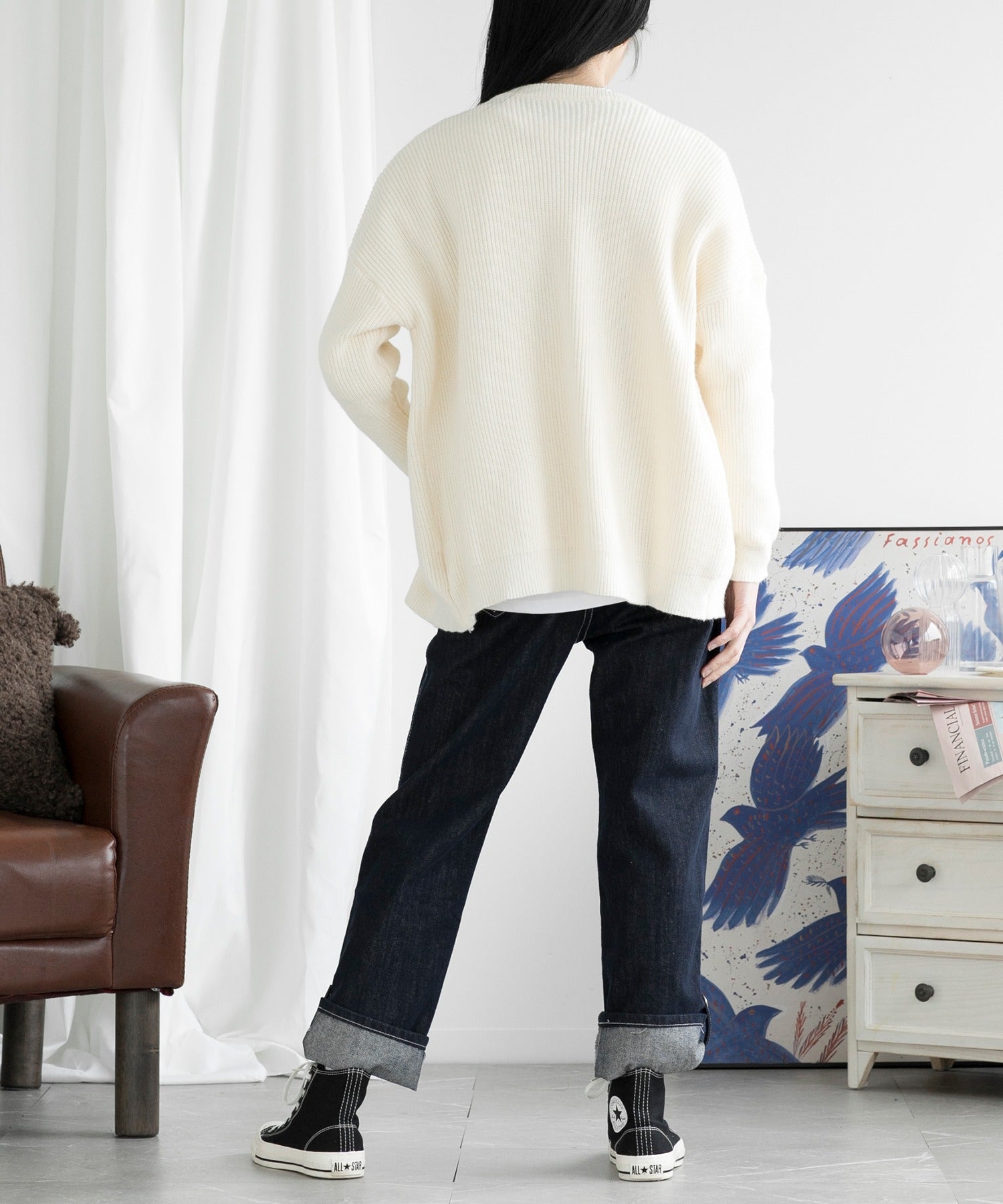 ゆったり感がルースでカジュアルなアイテムと相性がよく、温度調整用にも1枚あるとシーズン通して着れるのでおすすめです。