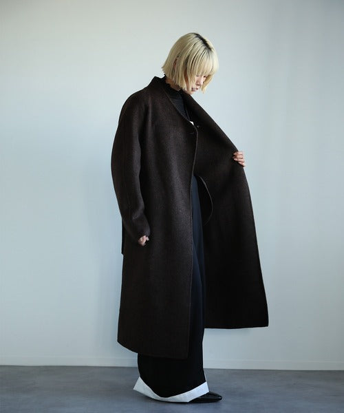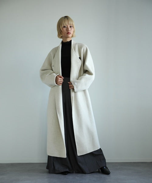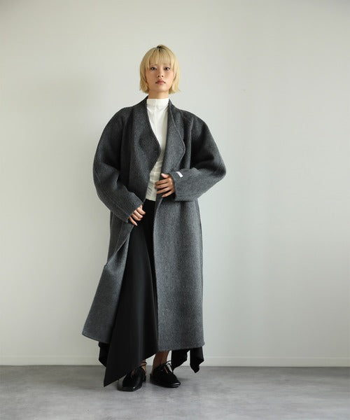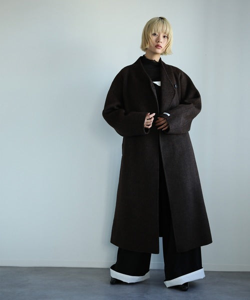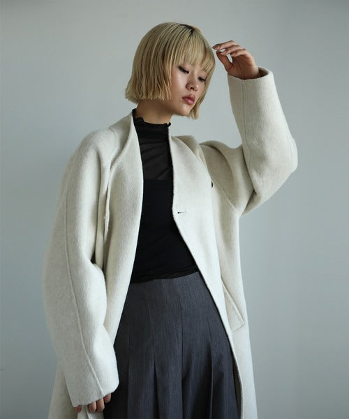 【moyo】O型シルエットのノーカラーロングコートが登場!