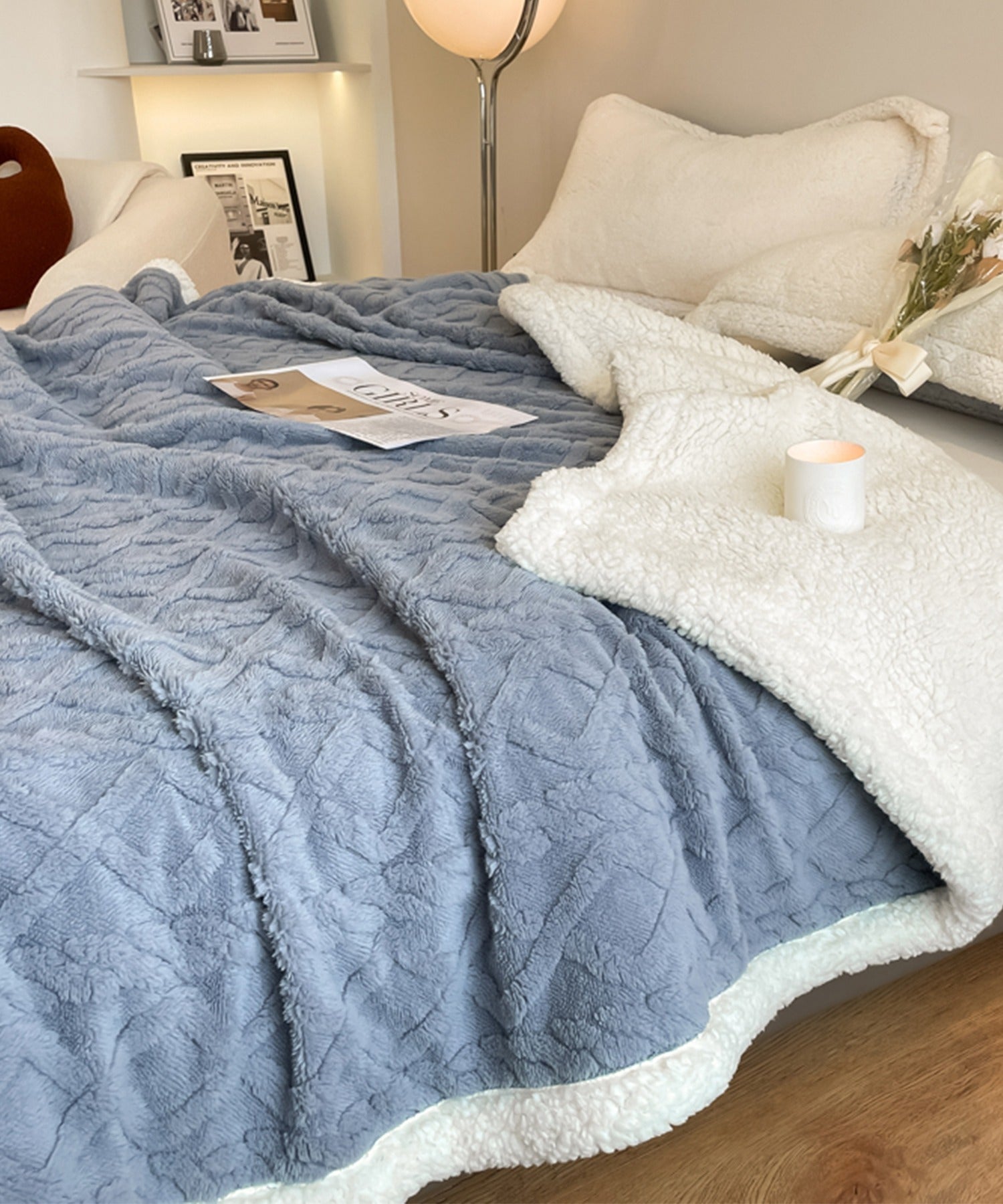 シングル布団より一回り小さめな大きさのブランケット。