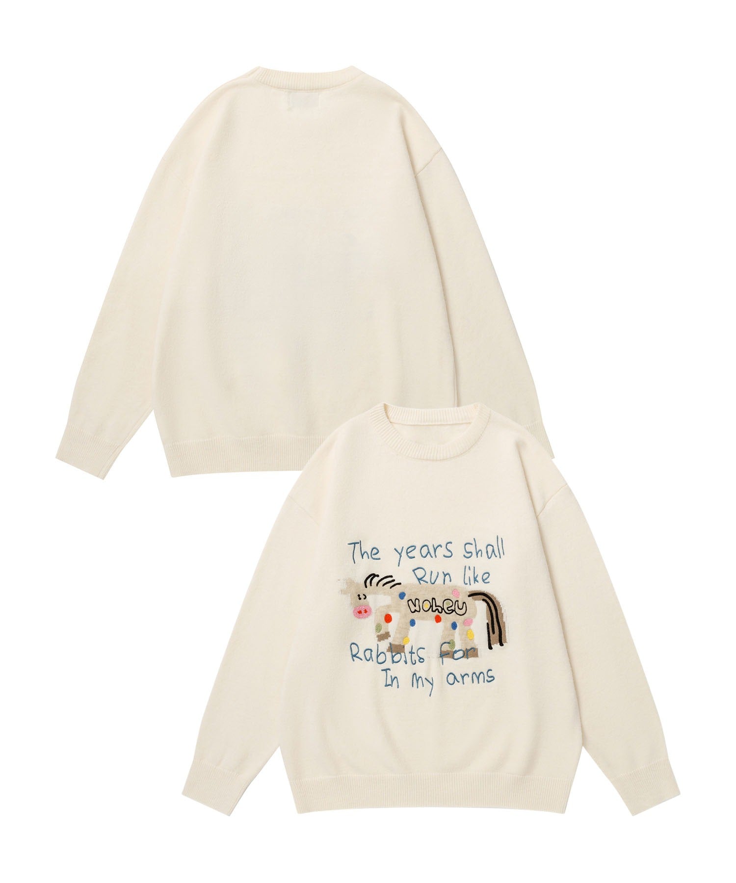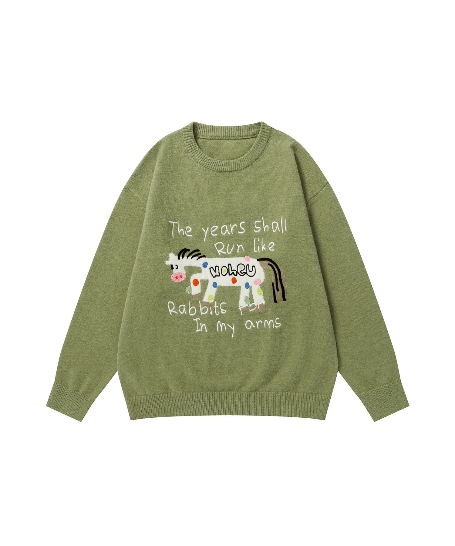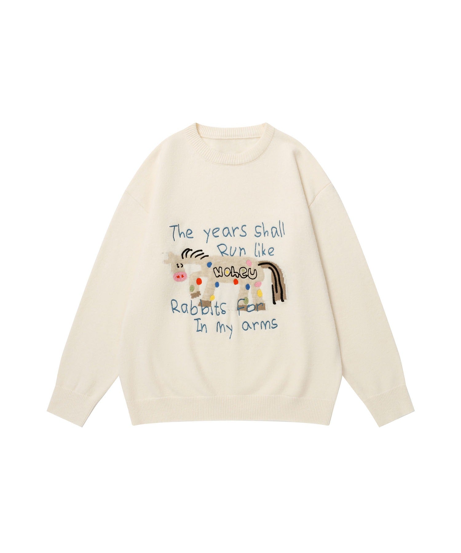 フロントにはカラフルなマルチドット模様のお馬さんのキャラクターとメッセージがデザインされ、着るだけでポップでかわいい印象に。