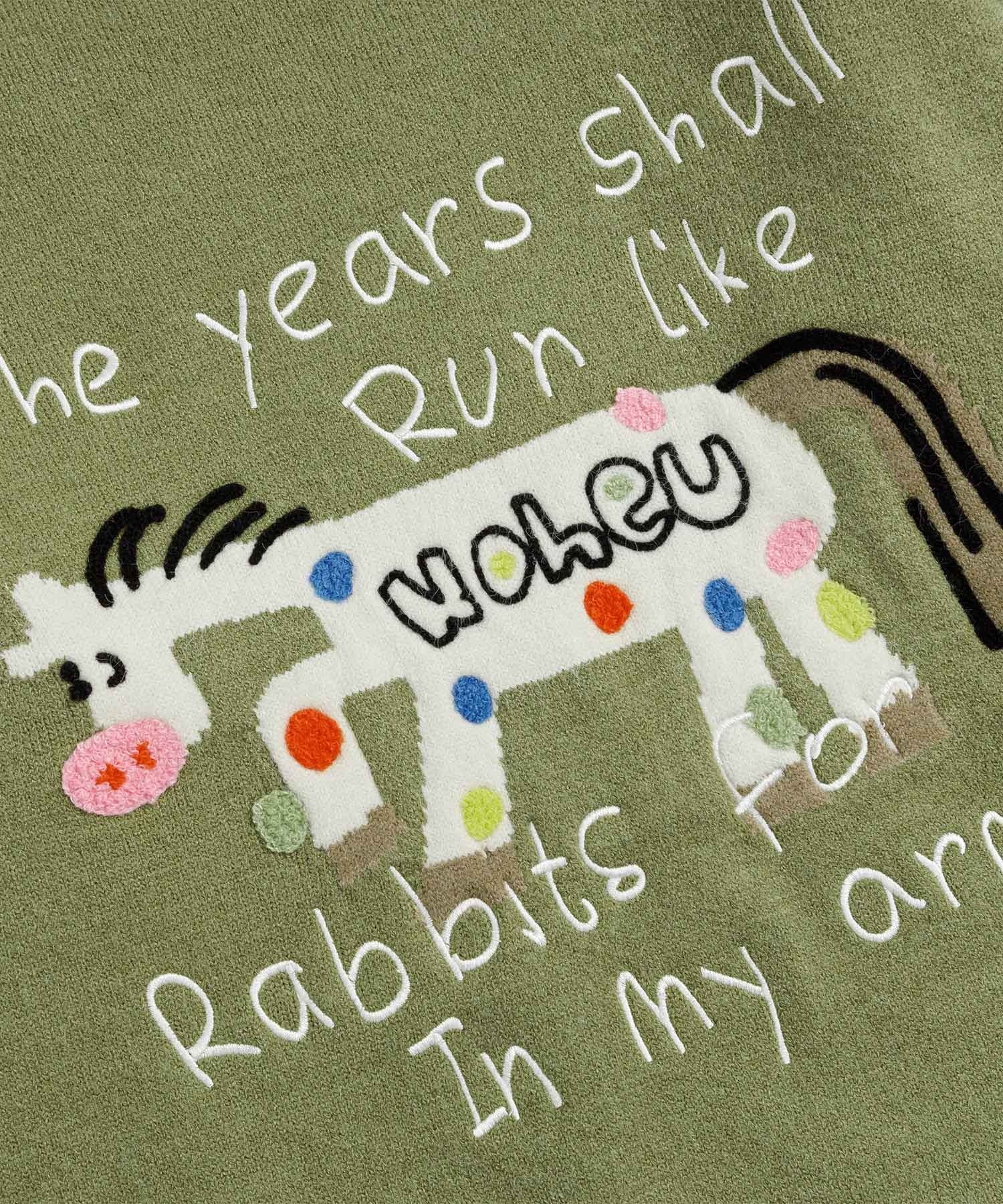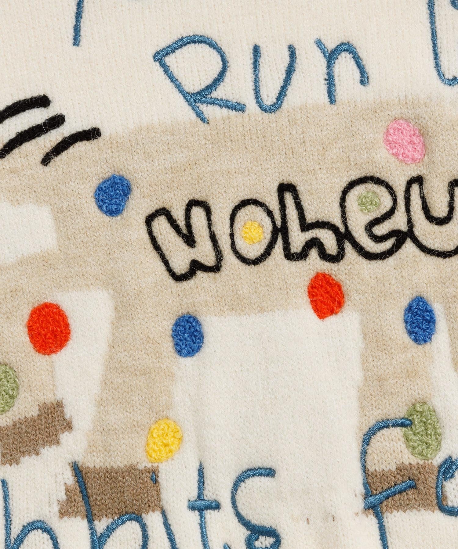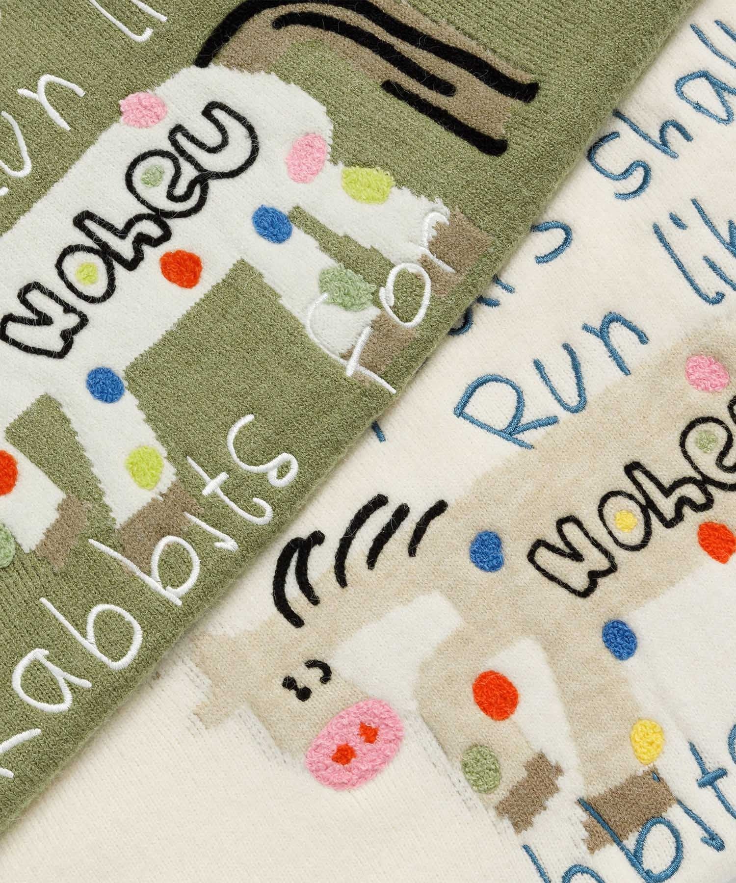 遊び心たっぷりのイラストが目を引く、レトロ&ストリート感のあるニットセーター。
