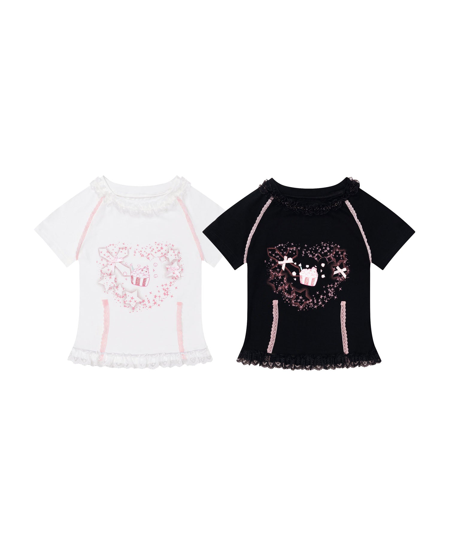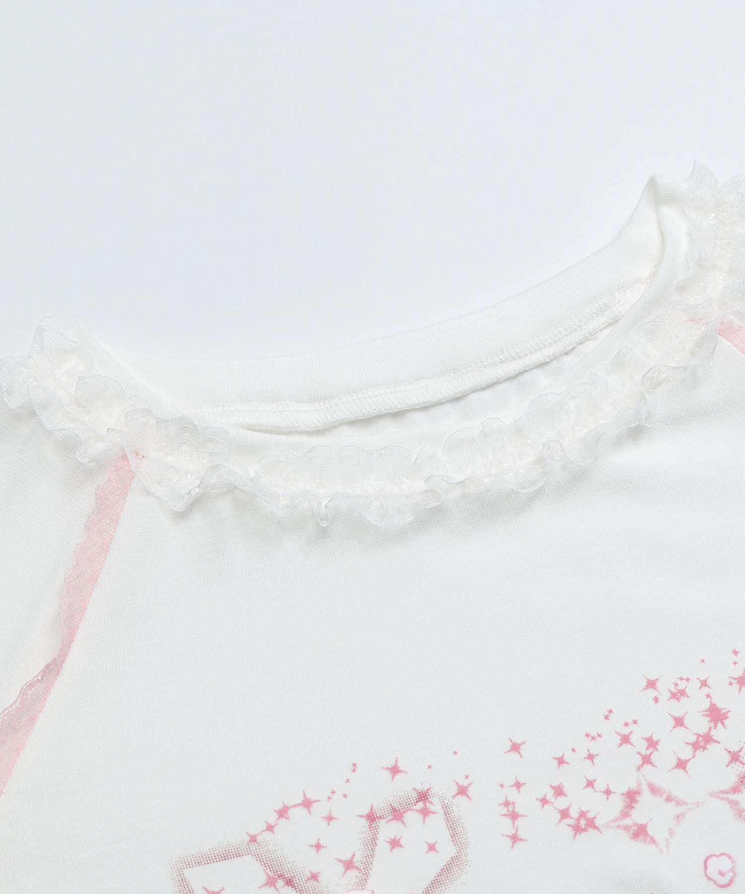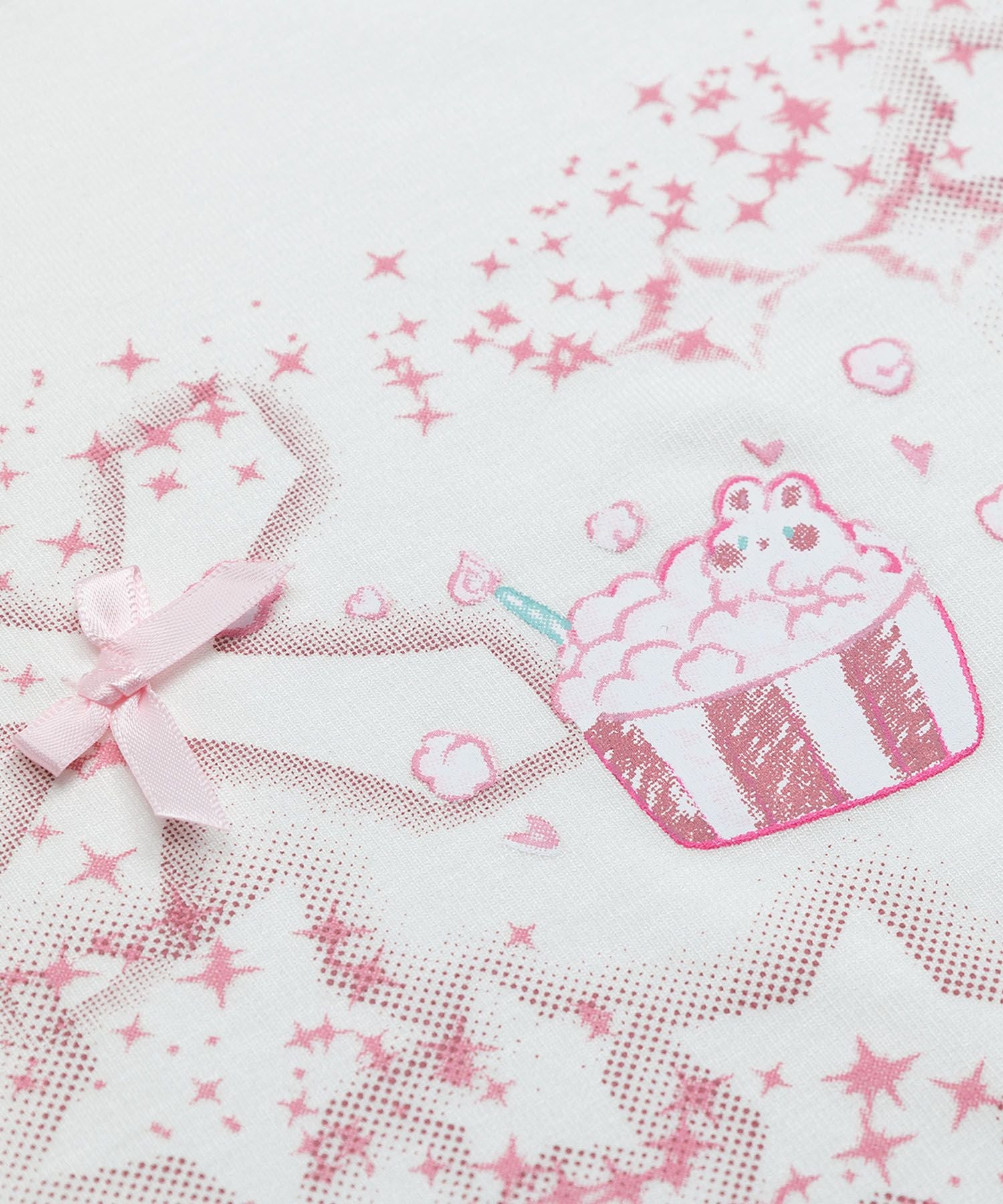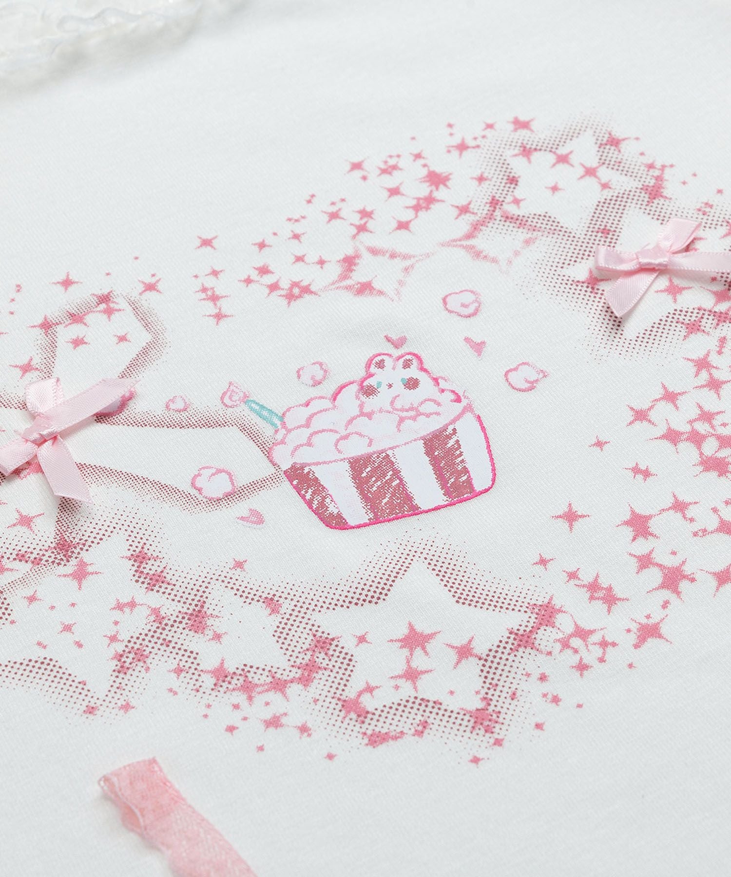胸元に散りばめたスター×リボンモチーフが夢見心地な雰囲気を演出してくれるドリーミーTシャツ。
