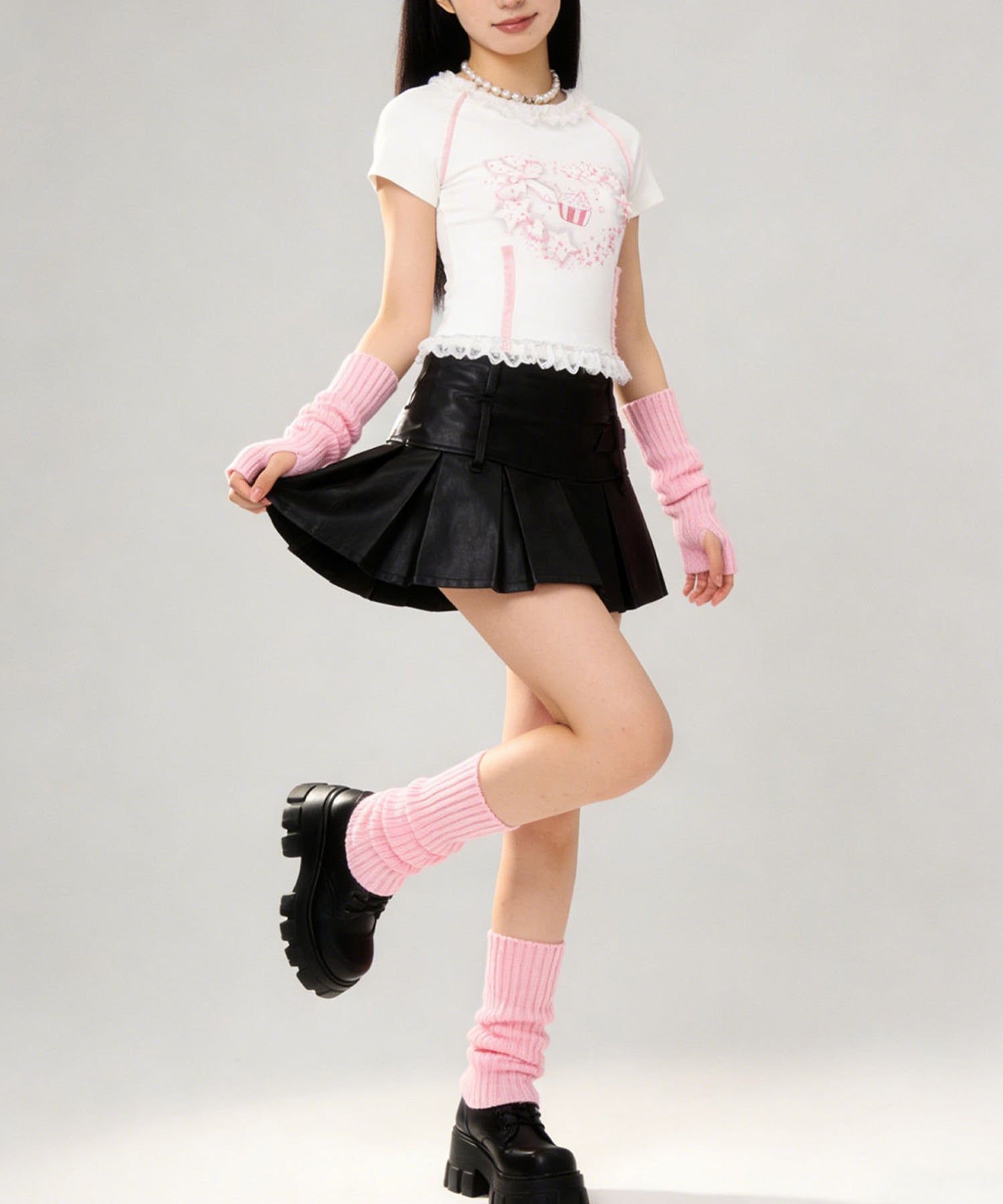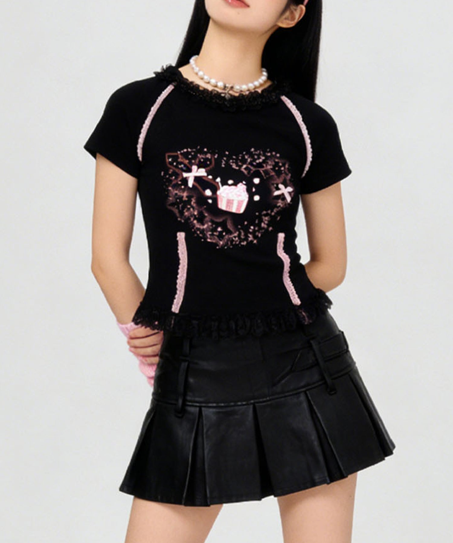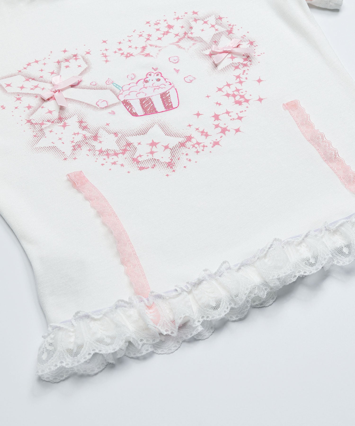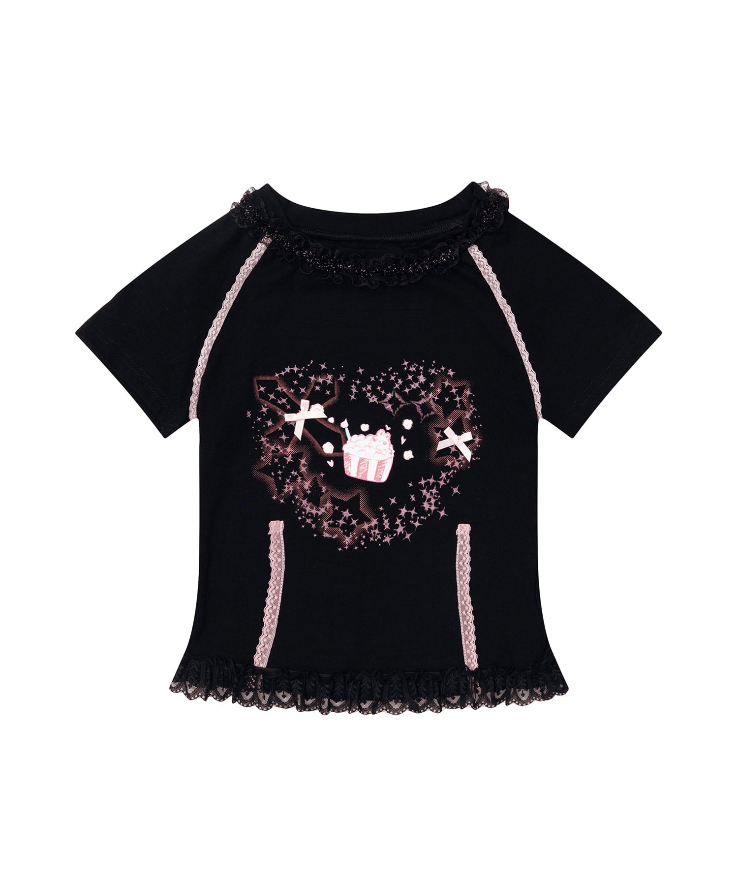 胸元に散りばめたスター×リボンモチーフが夢見心地な雰囲気を演出してくれるドリーミーTシャツ。