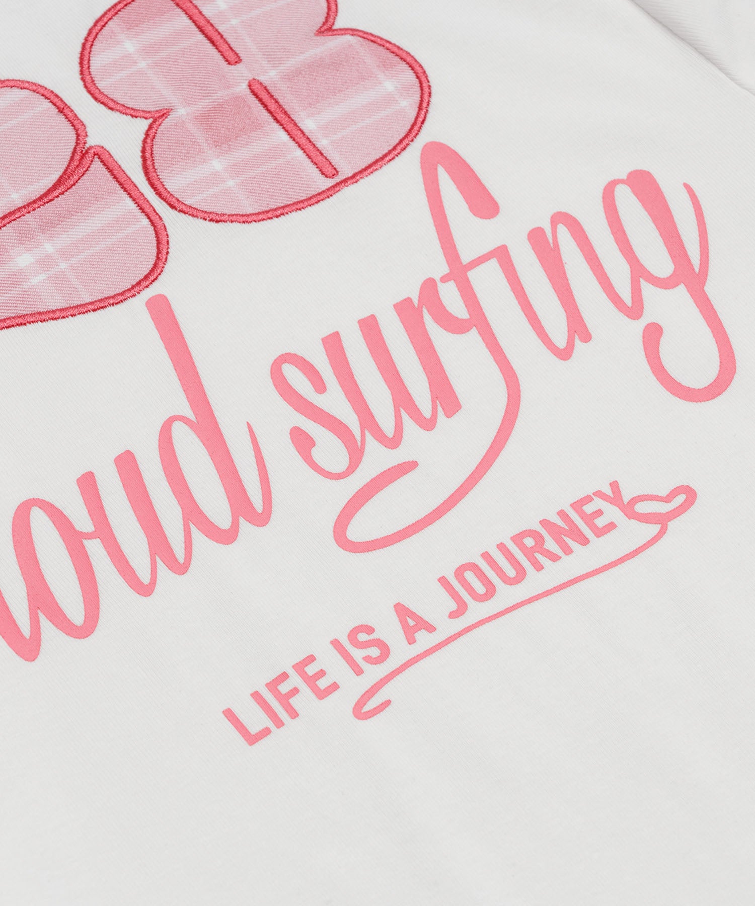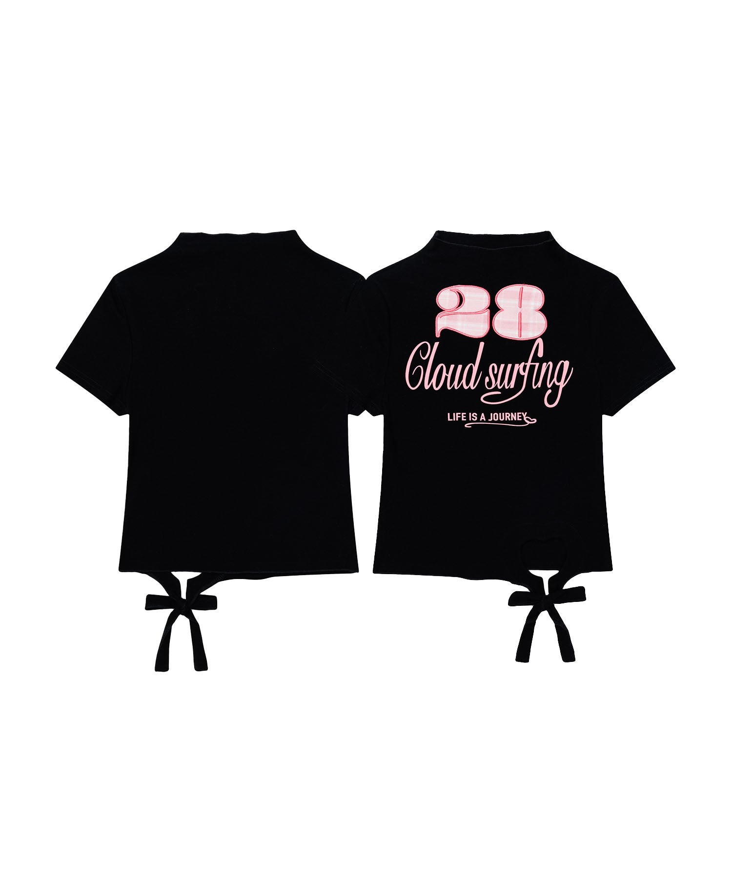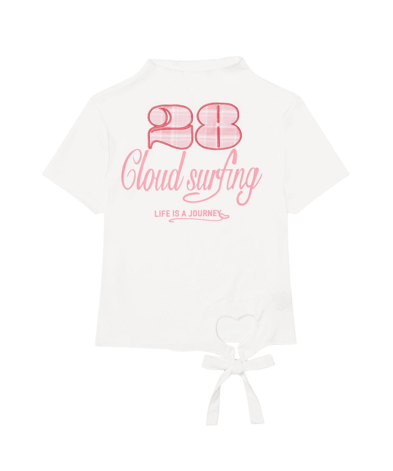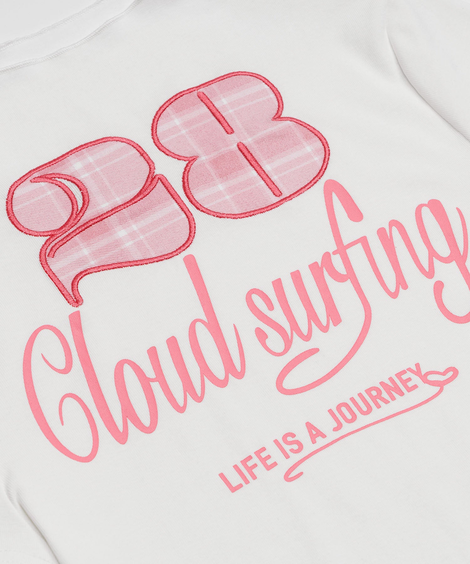 大きめの“28 Cloud surfing”英字ロゴが目を引くガーリーカジュアルTシャツ。