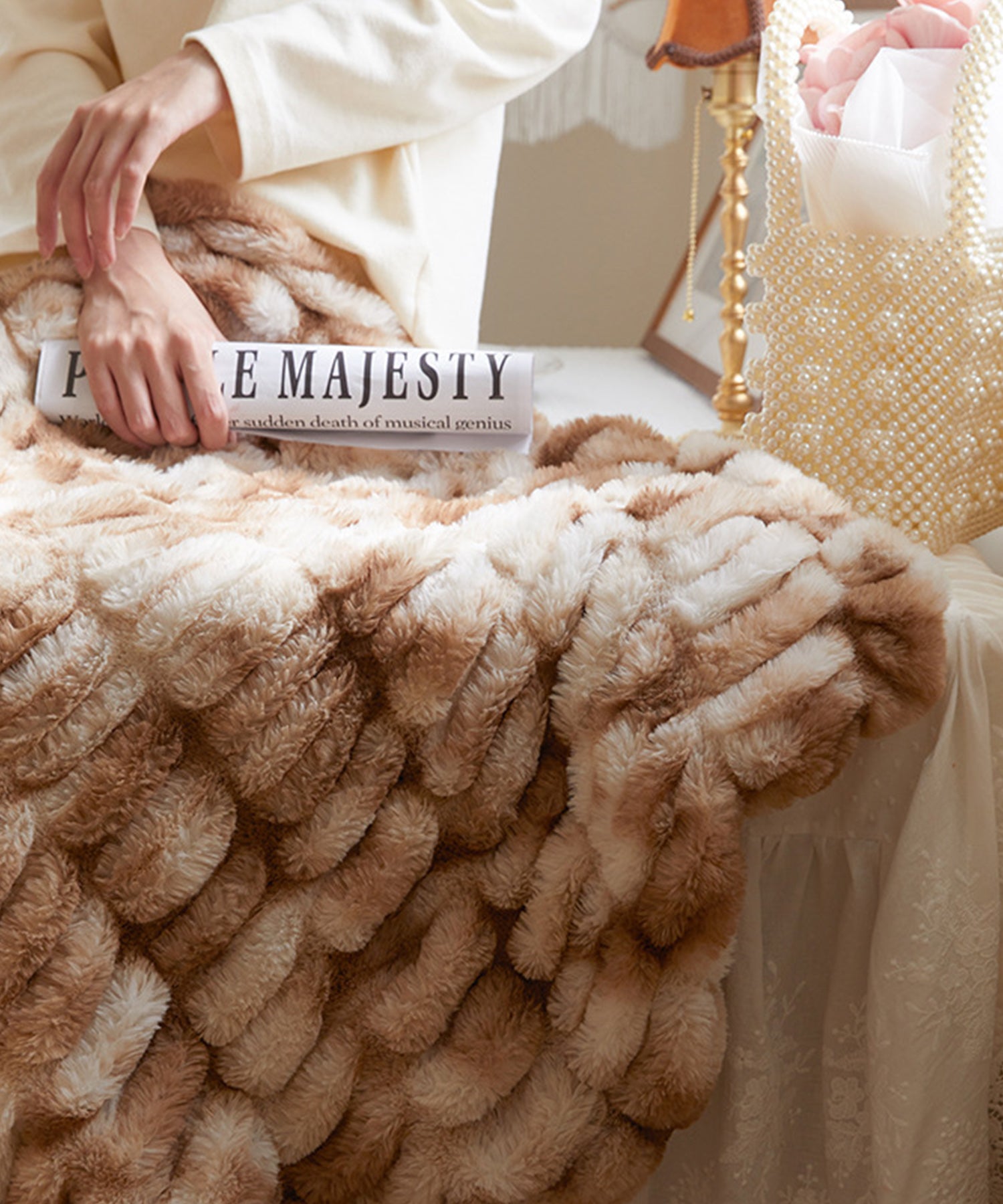 ふわふわとろとろの手触りが心地いいブランケット。