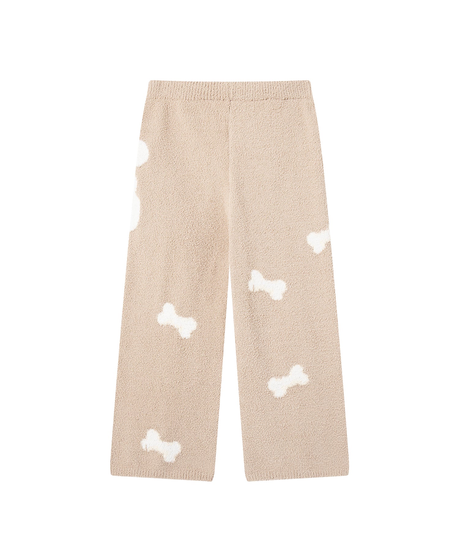 トップスはゆるやかなリラックスシルエットで、パンツには骨柄とomochiのモチーフを散りばめ、上下で可愛さを楽しめる仕上がりです。