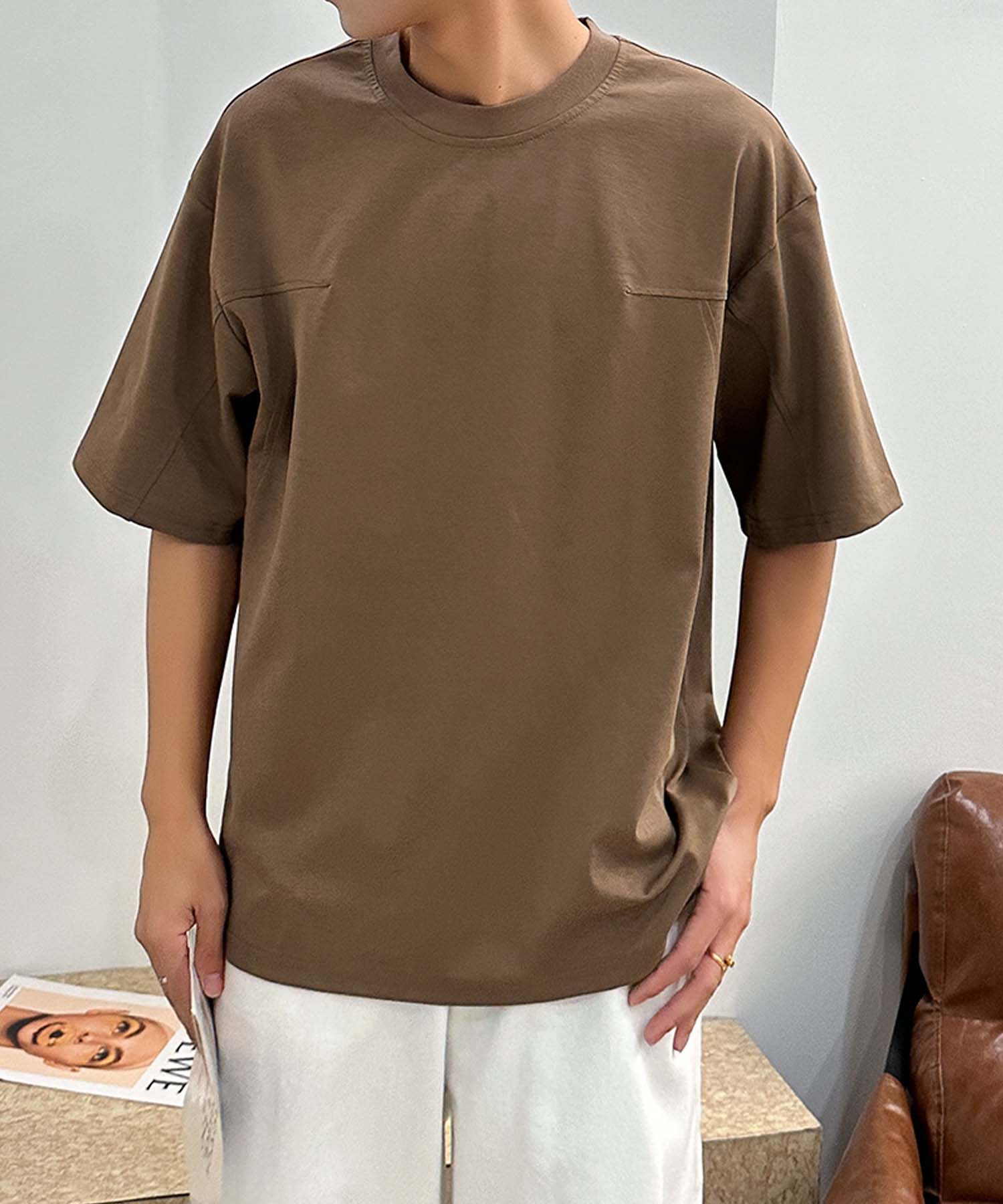 『フロントのプリーツディテールがポイントのシンプルリラックスTシャツ』
