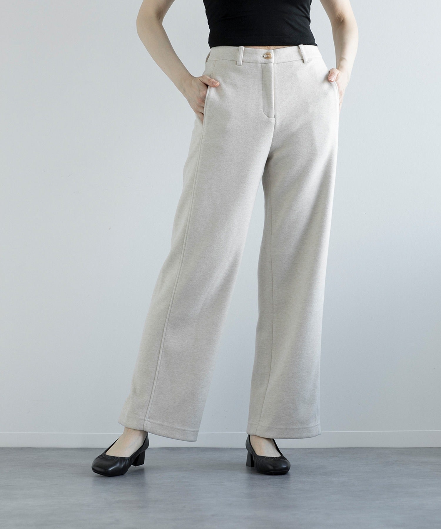 シンプルで着回し抜群なハイウエストストレートパンツ。