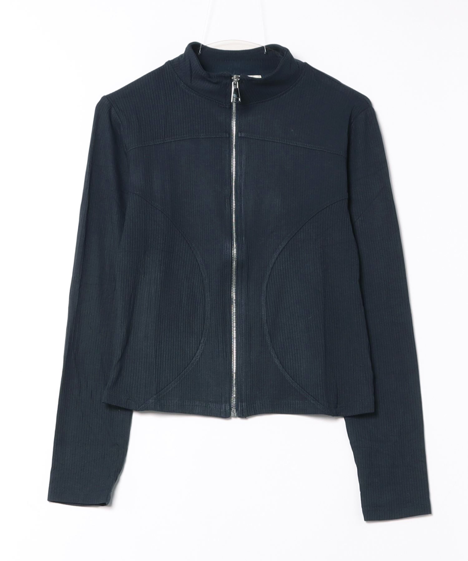 スタイリッシュでフィット感のあるジップアップジャケット。リブ編み素材が特徴で、シンプルながらも洗練された印象を与えます。首元はハイネックデザインなので、寒い季節にも活躍します。前面のカーブラインが女性らしいシルエットを引き立て、どんなコーディネートにも合わせやすい万能アイテムです。