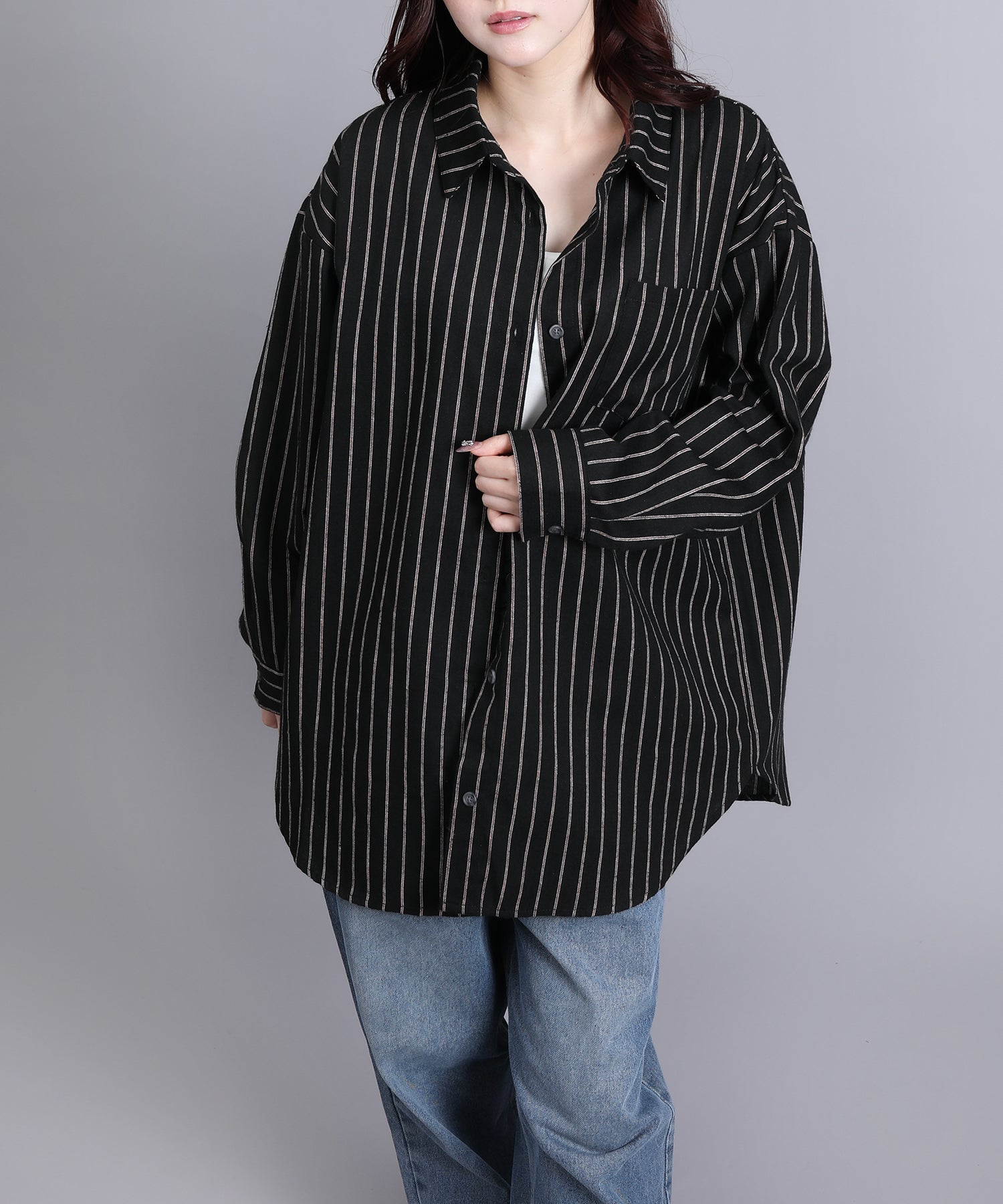 大人ハンサムなスタイルにぴったりな落ち着いた色味のストライプシャツ。ゆるっとしたオーバーサイズがこなれ感をプラスし華奢見せしてくれます。合わせるアイテム次第でロングシーズン着られる、着回し力の高いアイテムです。