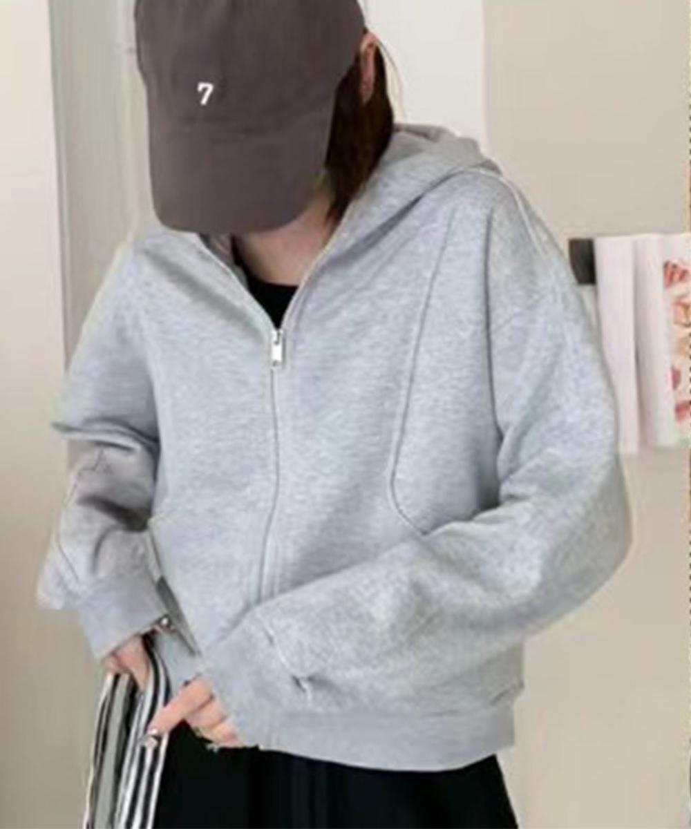 シンプルでスポーティーな魅力が際立つジップアップフーディ。フロントのジッパーが着脱を簡単にし、リラックス感のあるデザインが特徴。