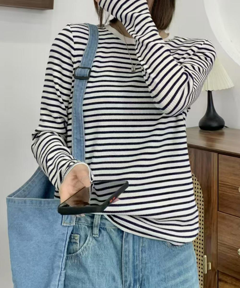 クラシックなボーダー柄が特徴のカジュアルTシャツ。シンプルでありながらも、細かなボーダーがアクセントとなり、スタイリッシュな印象を与えます。リラックス感のあるシルエットで着心地も抜群です。