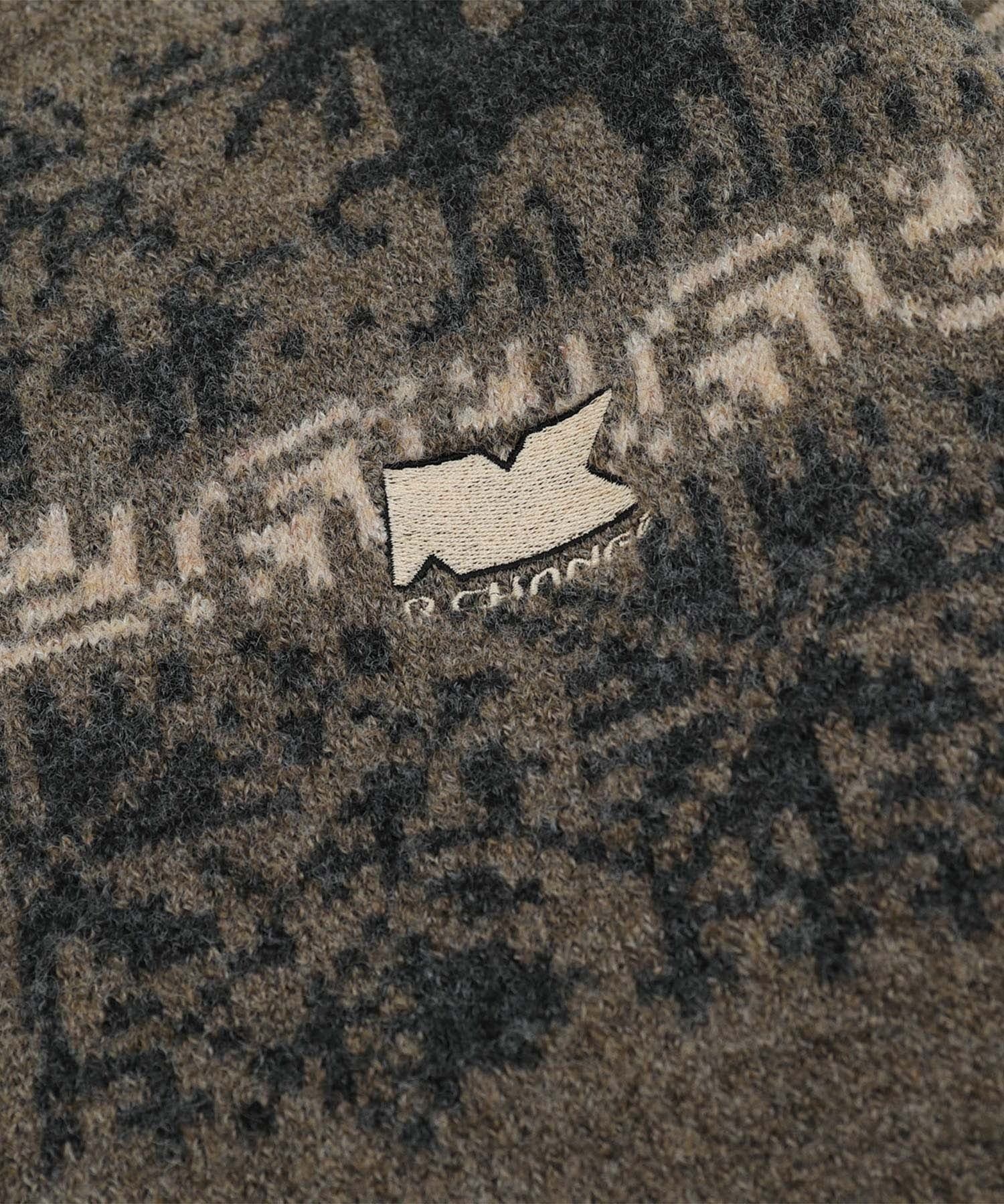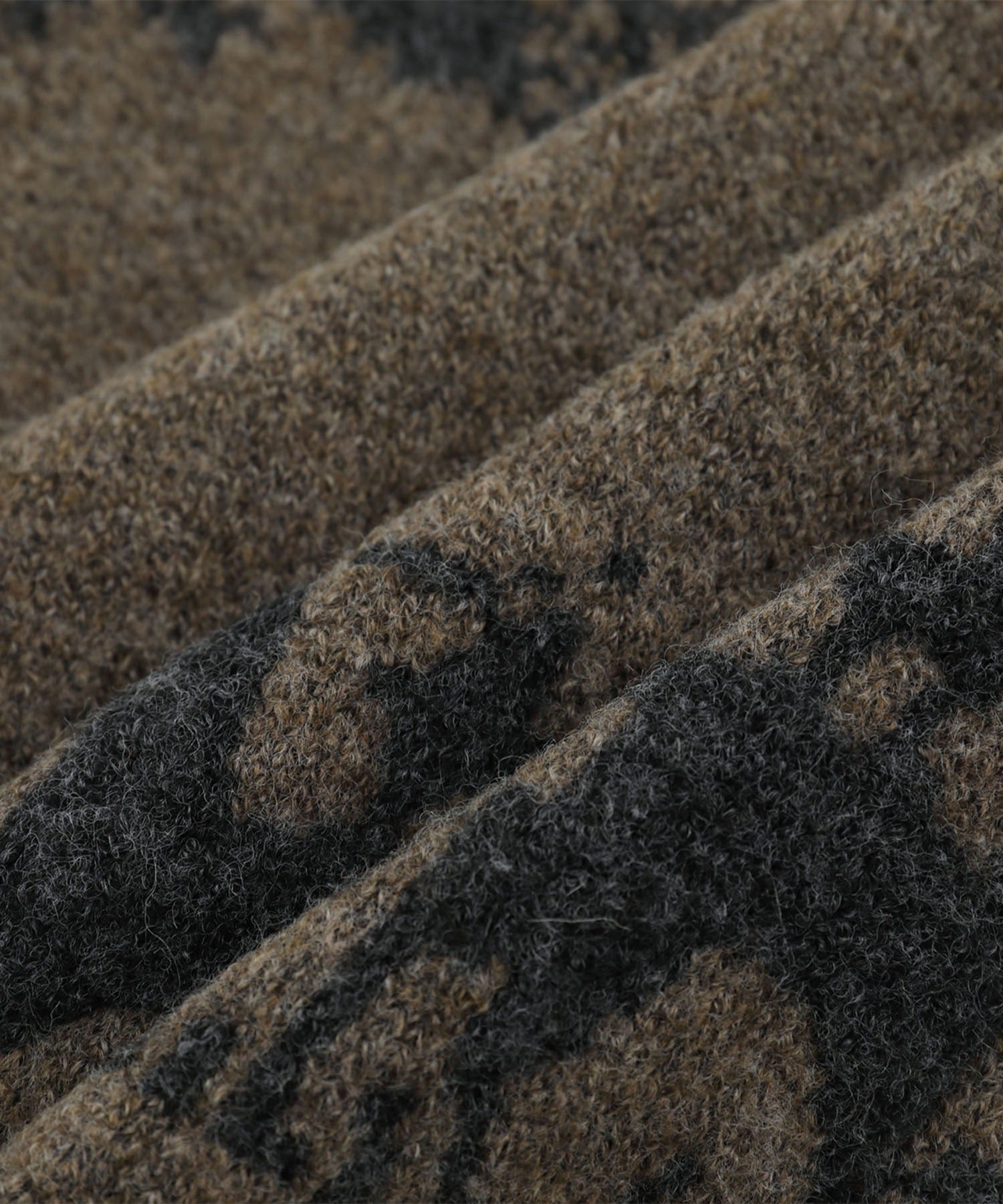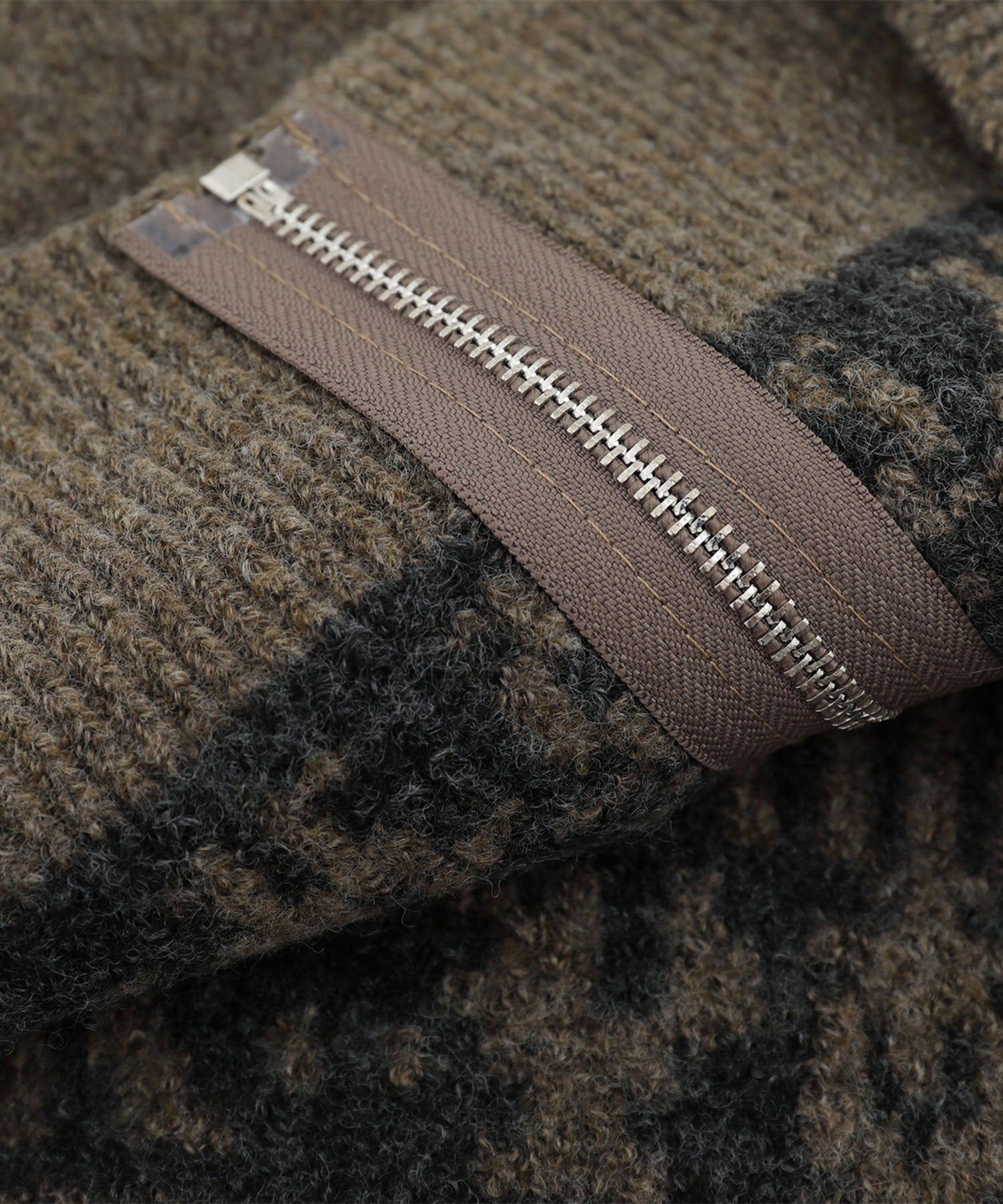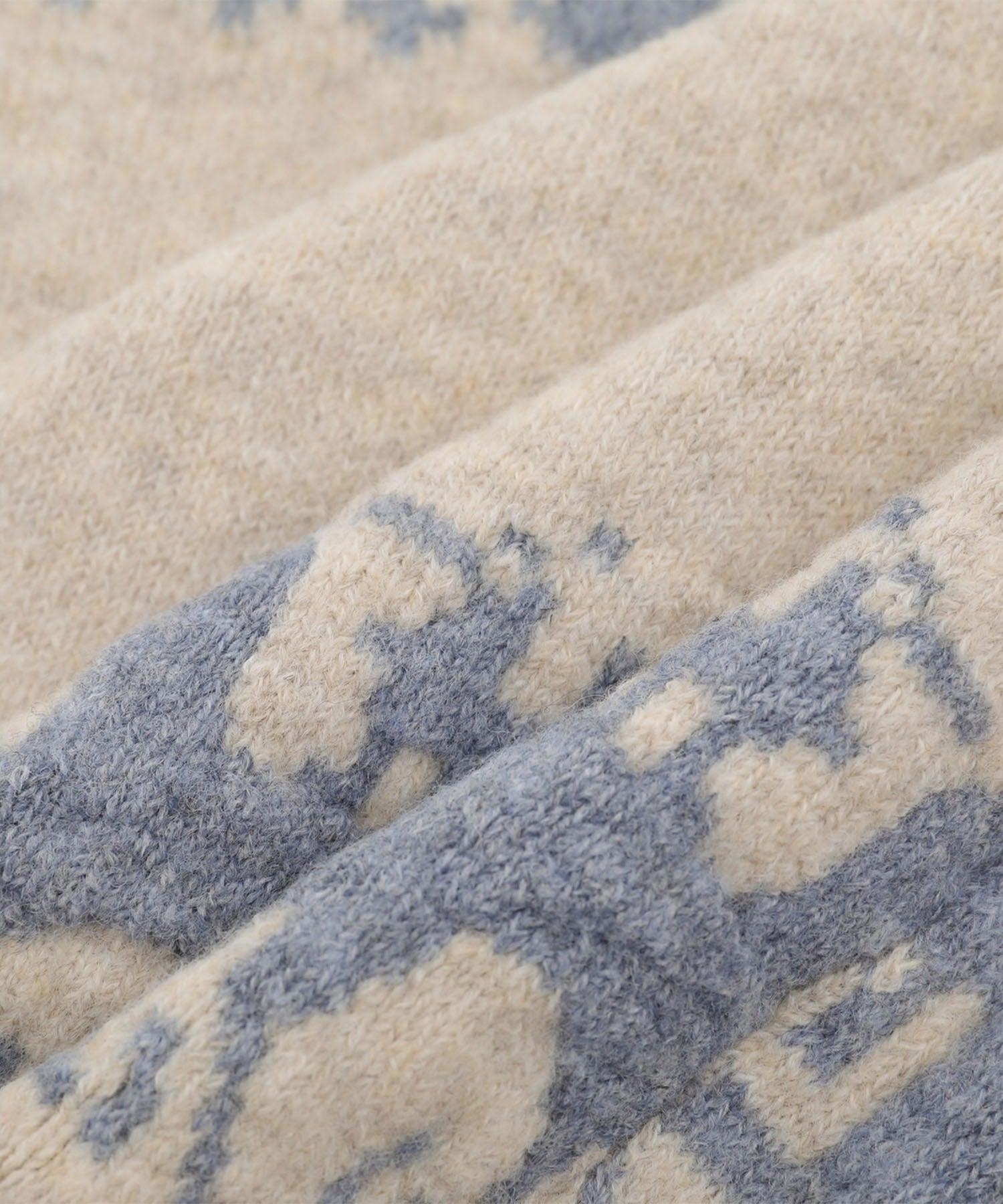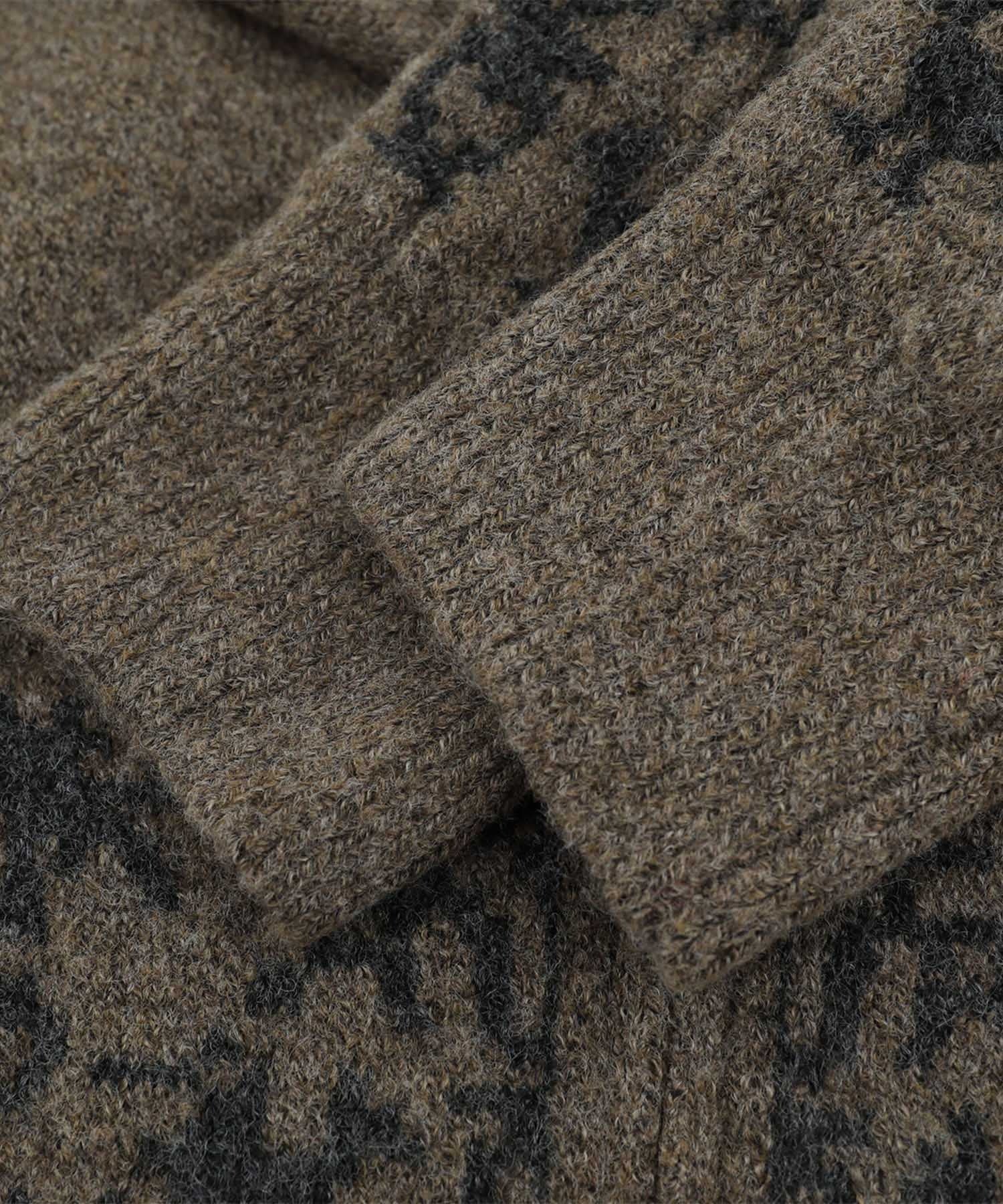 トナカイや動物たちが連なるノルディック風パターンを取り入れた、冬らしいジップアップニットカーディガン。