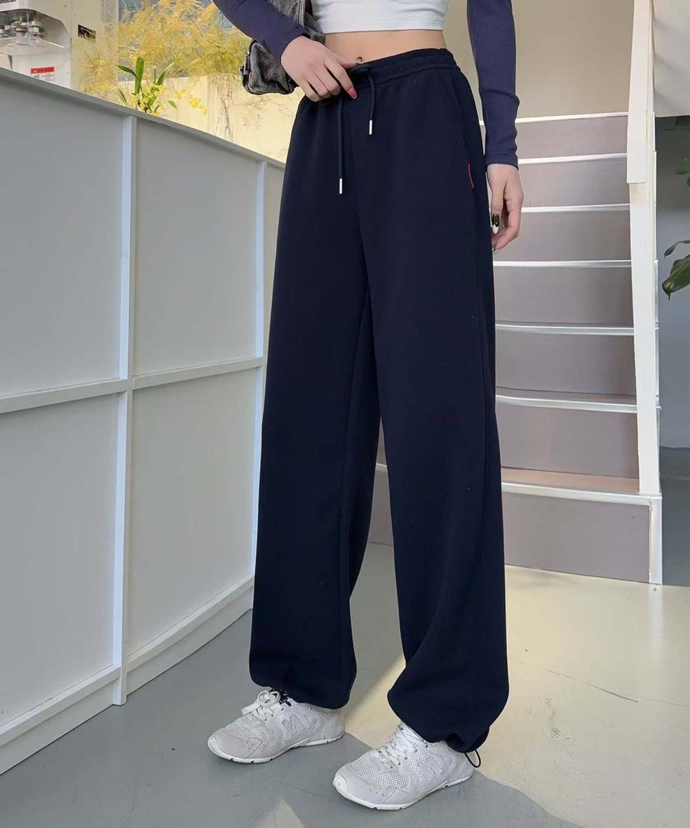 ウエストのドローストリングが特徴的なゆったり感のあるカジュアルパンツ。ワイドシルエットで、ストレスフリーな着心地で、ラフな日常コーデにぴったりなアイテムです。シンプルなデザインながらも、上品さとカジュアル感が絶妙に調和しています。