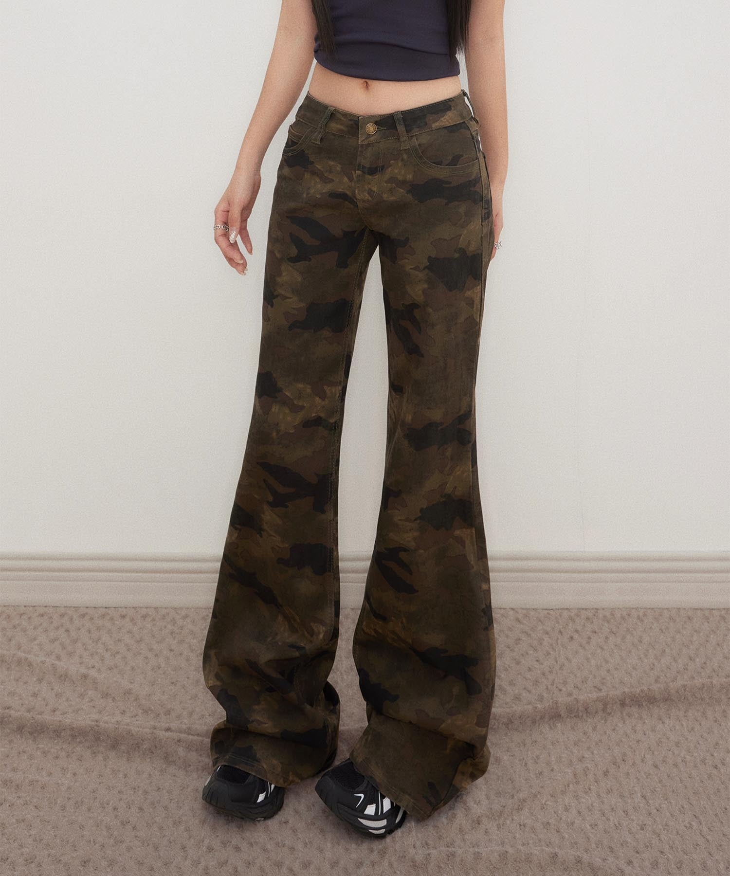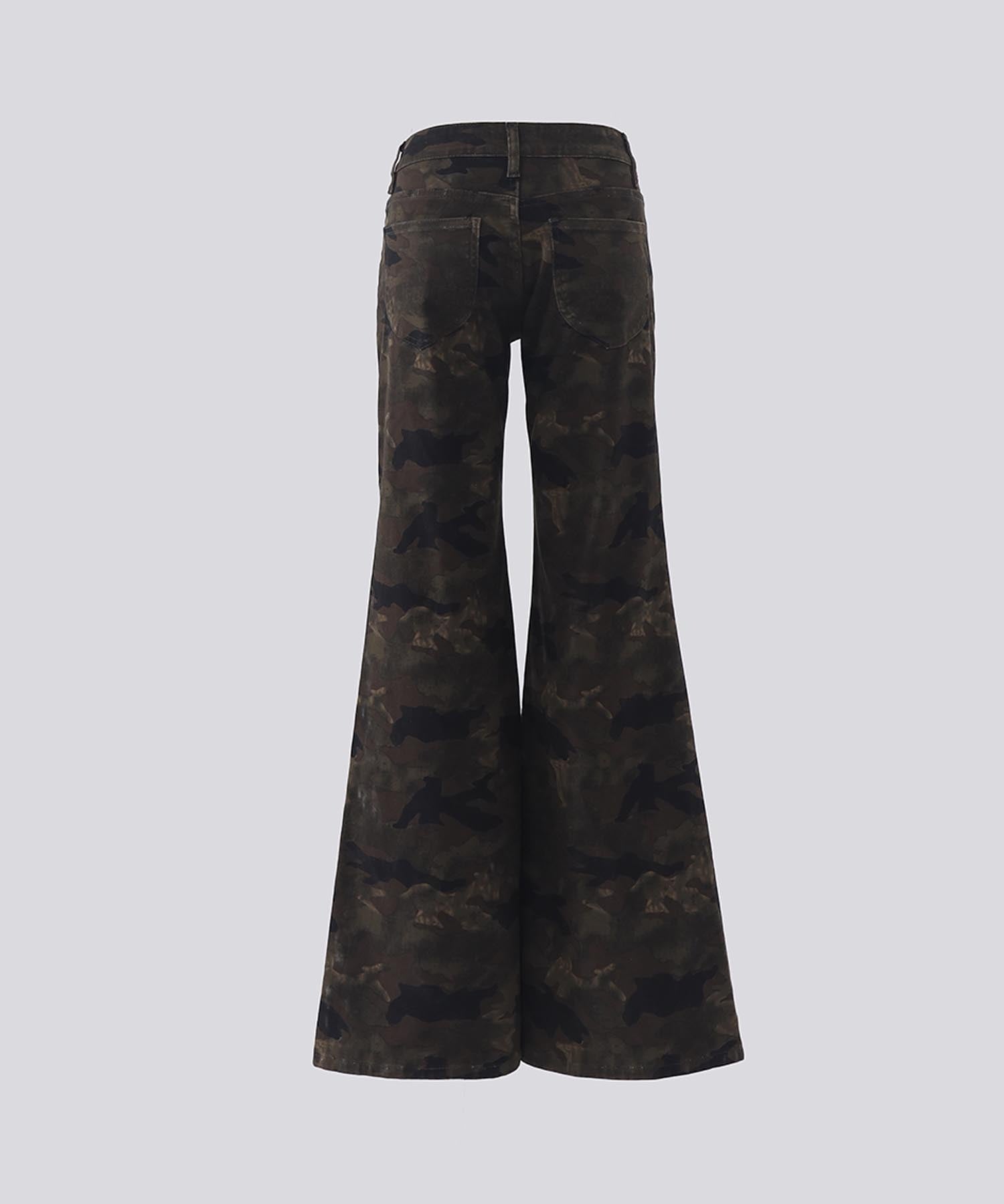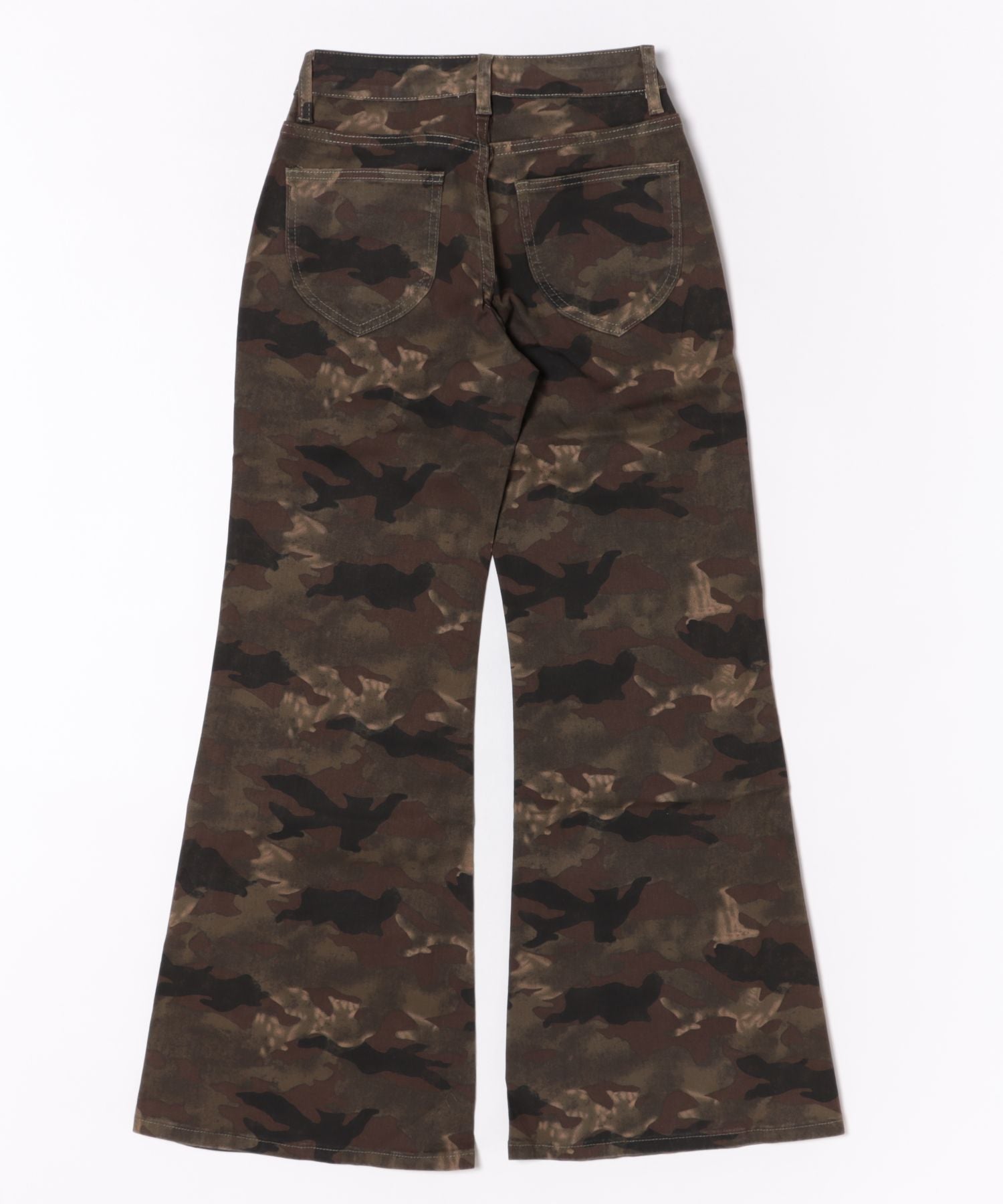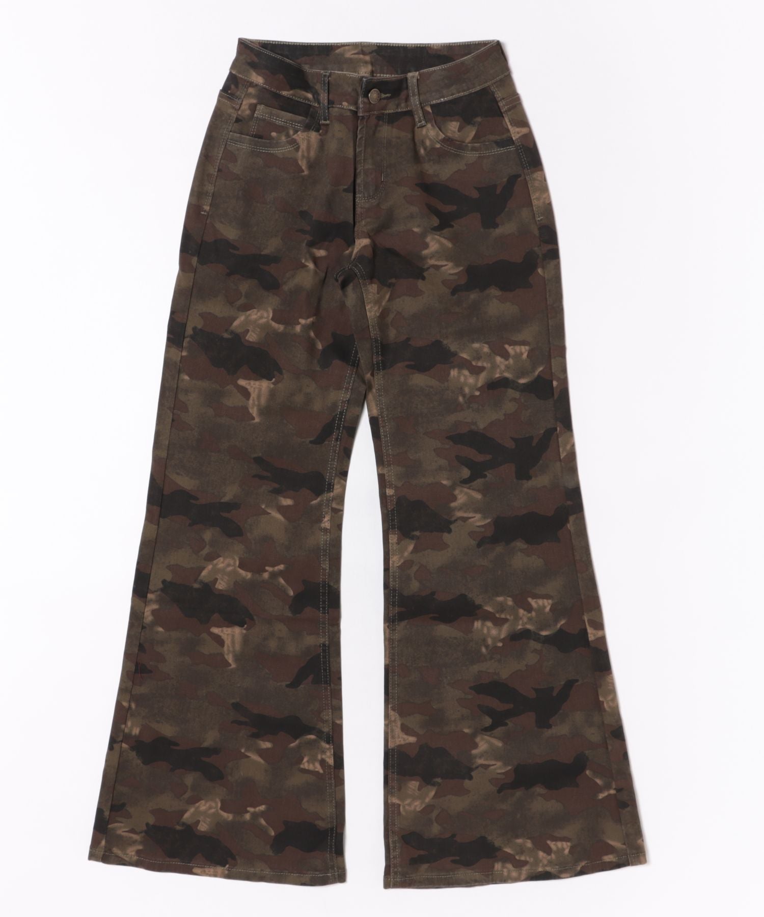 【HOOK】for girls ヴィンテージ×Y2K ローライズカモ柄フレアデニムパンツ