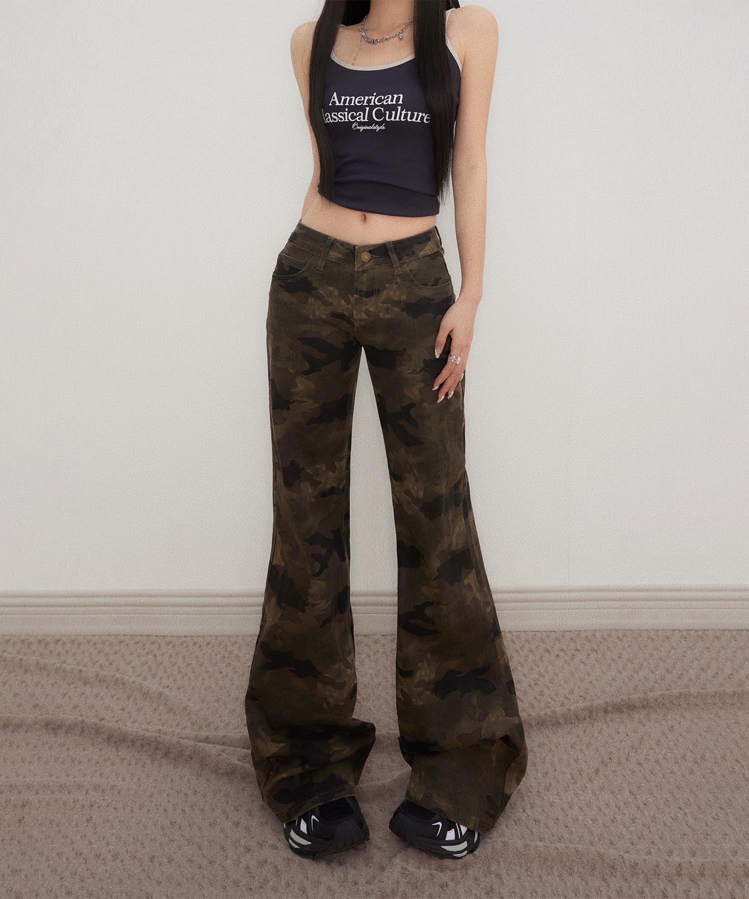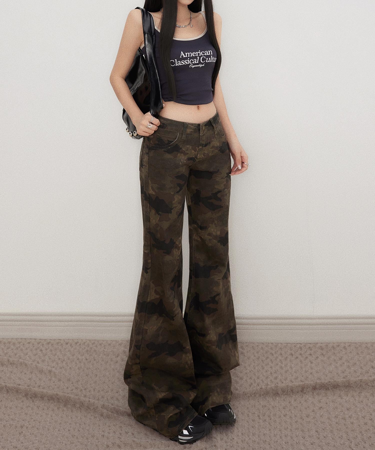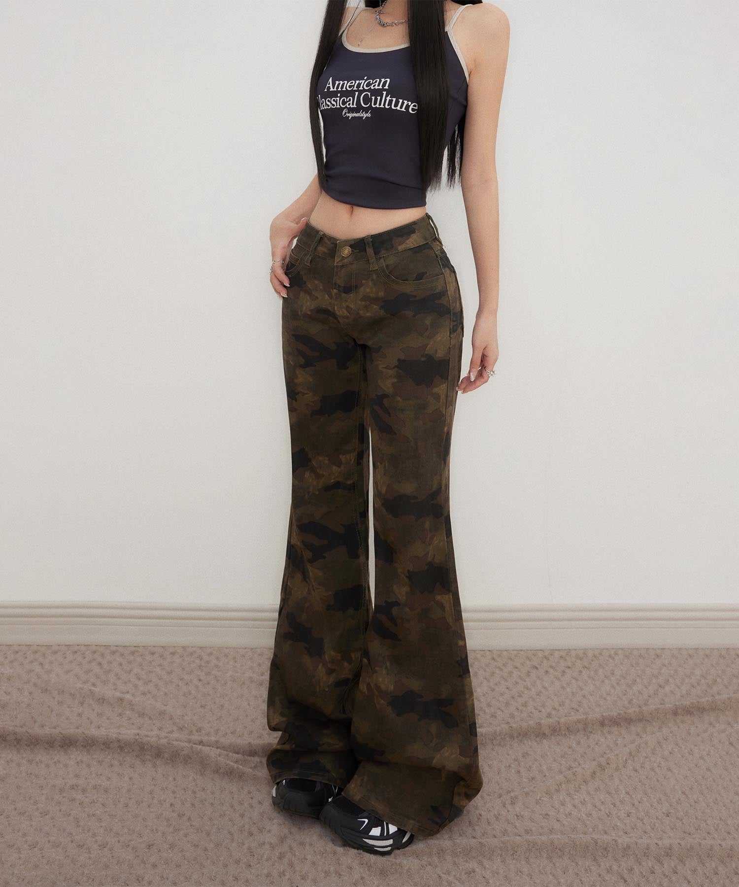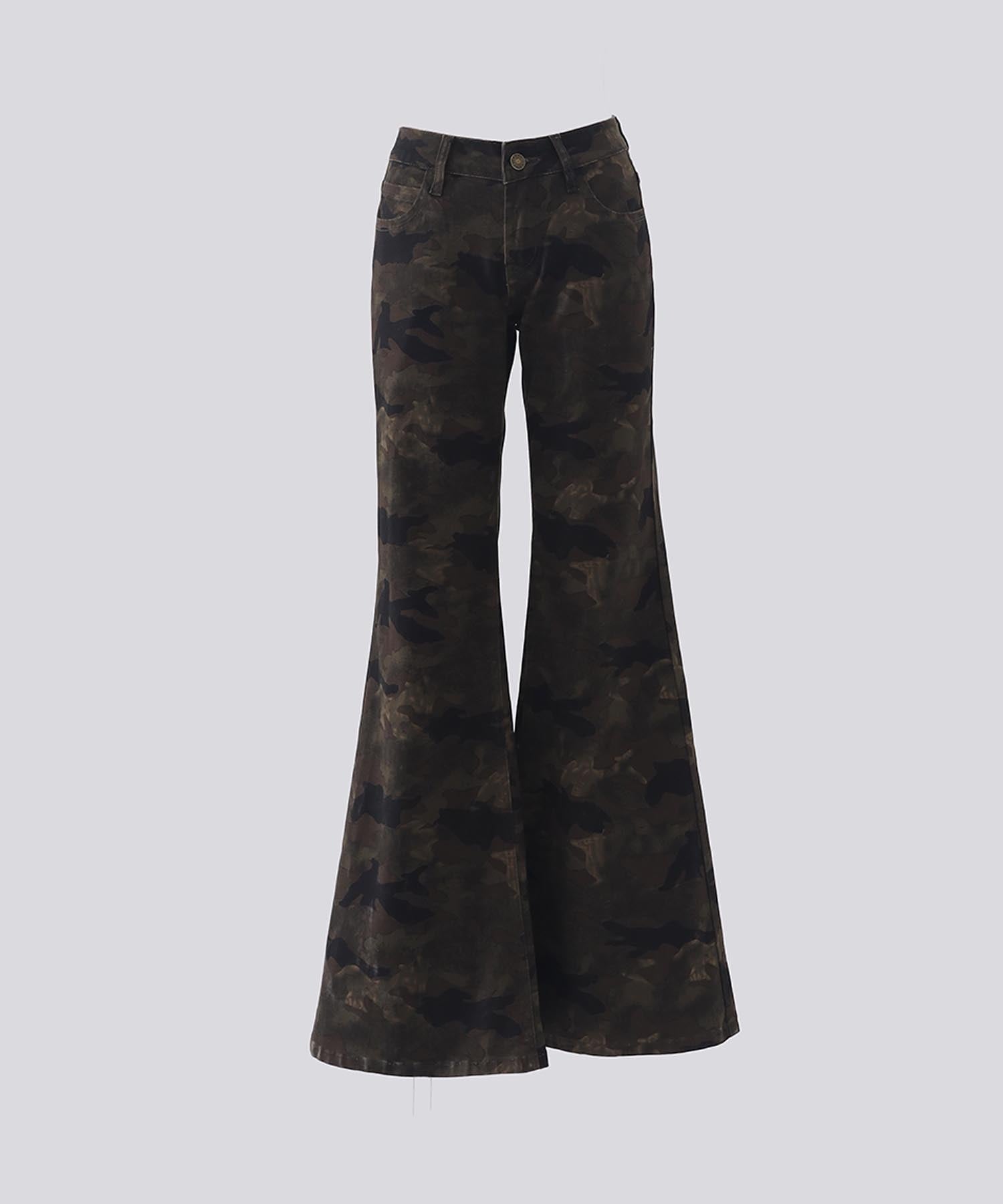 【HOOK】for girls ヴィンテージ×Y2K ローライズカモ柄フレアデニムパンツ
