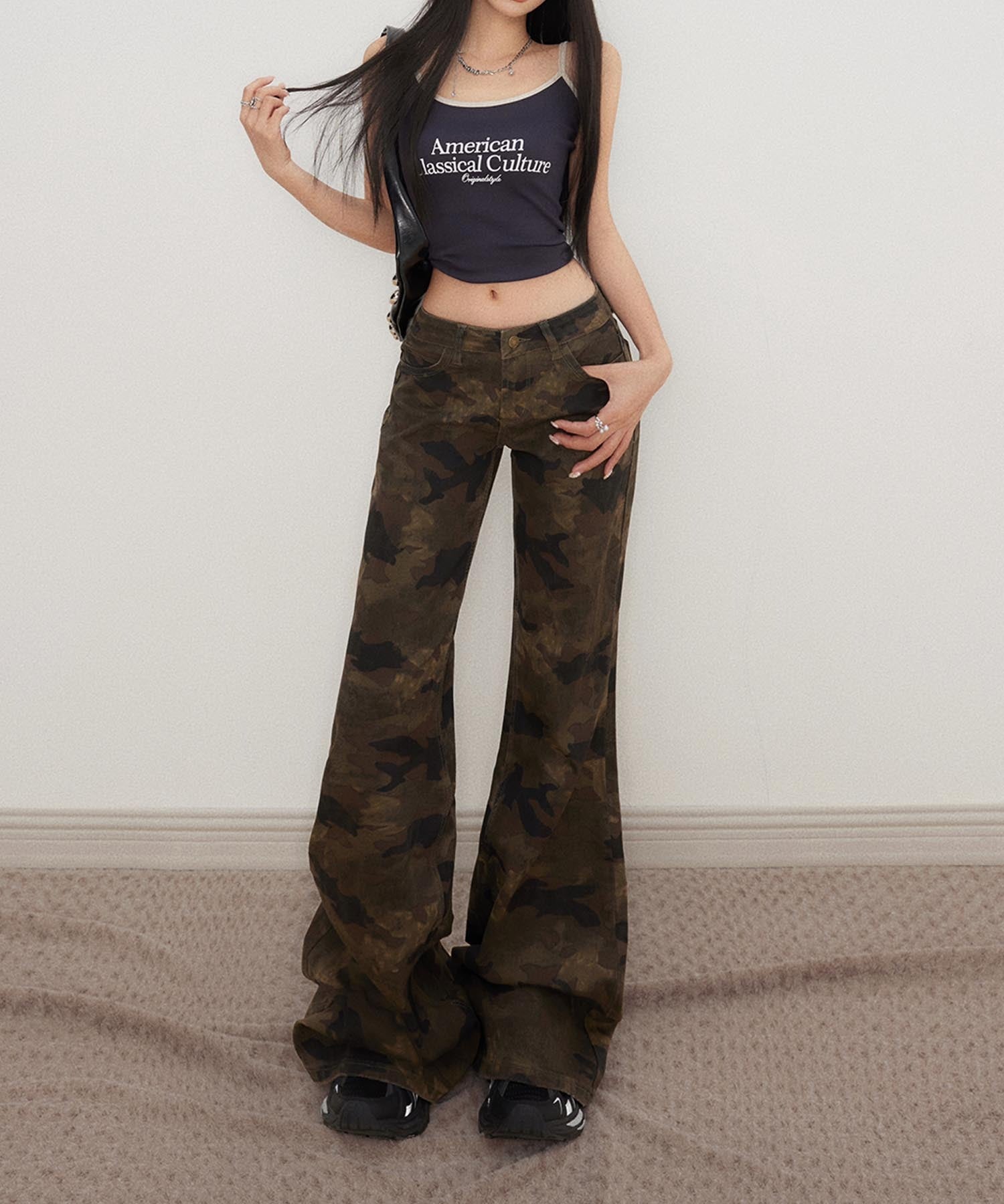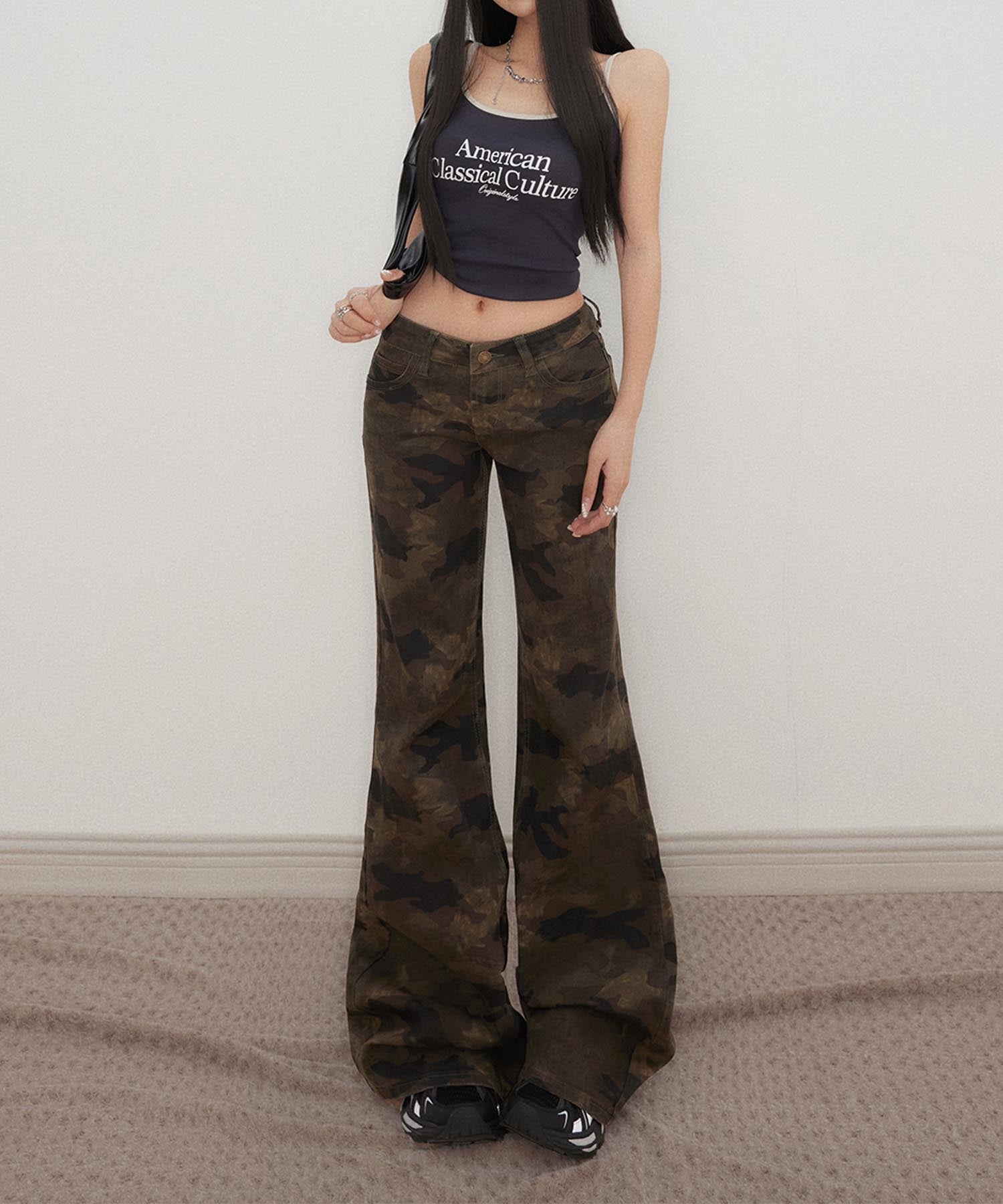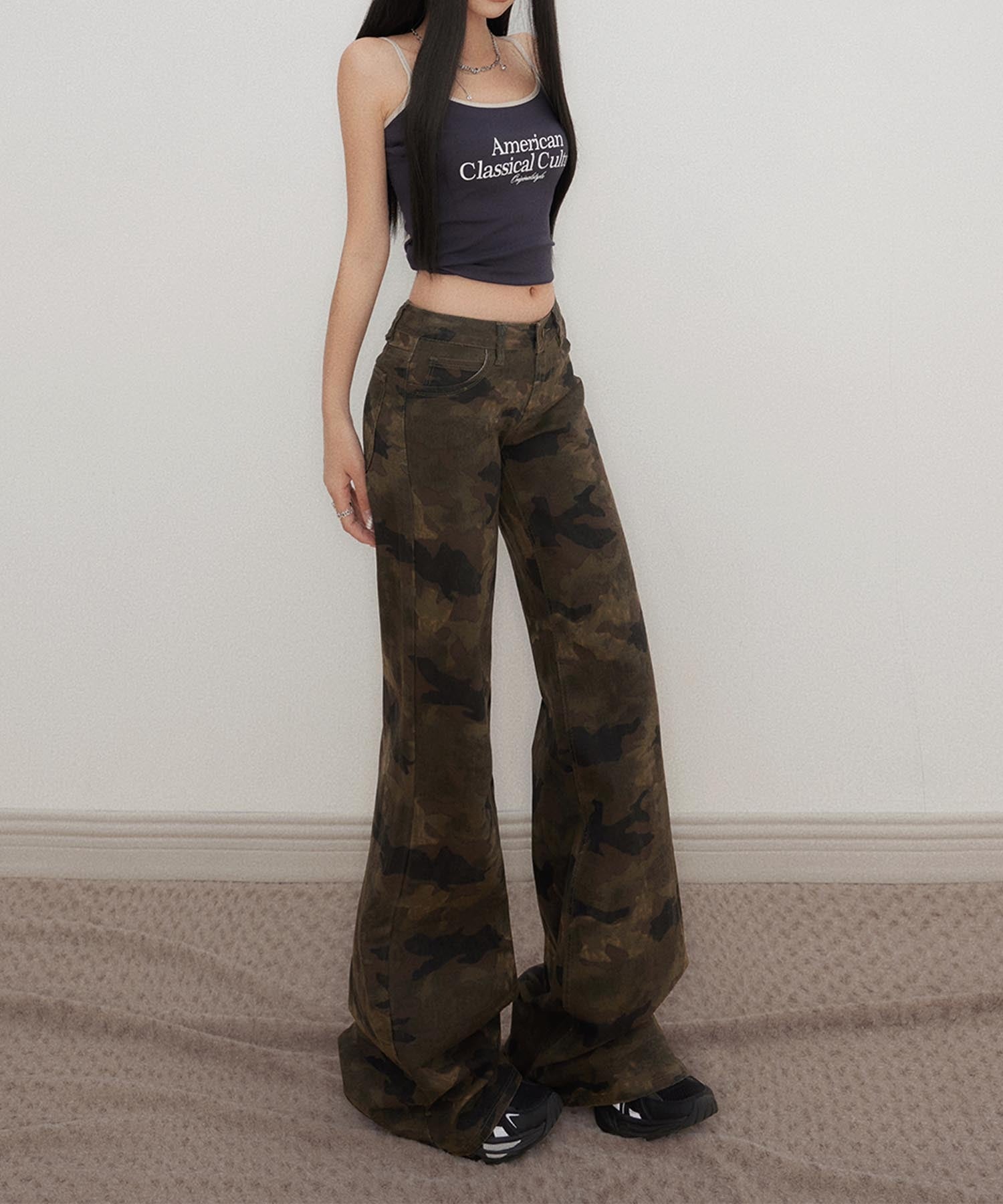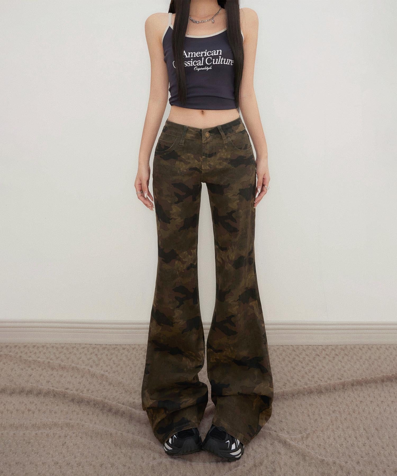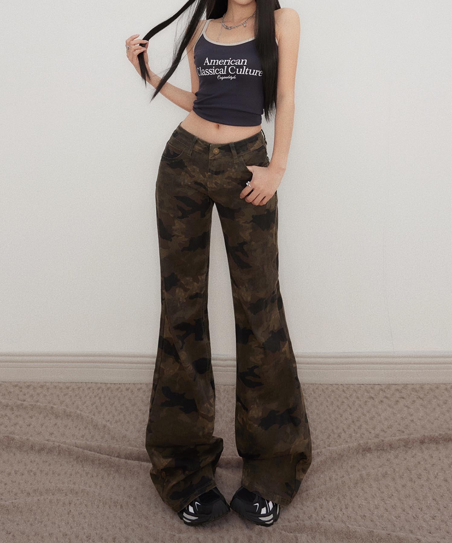 【HOOK】for girls ヴィンテージ×Y2K ローライズカモ柄フレアデニムパンツ