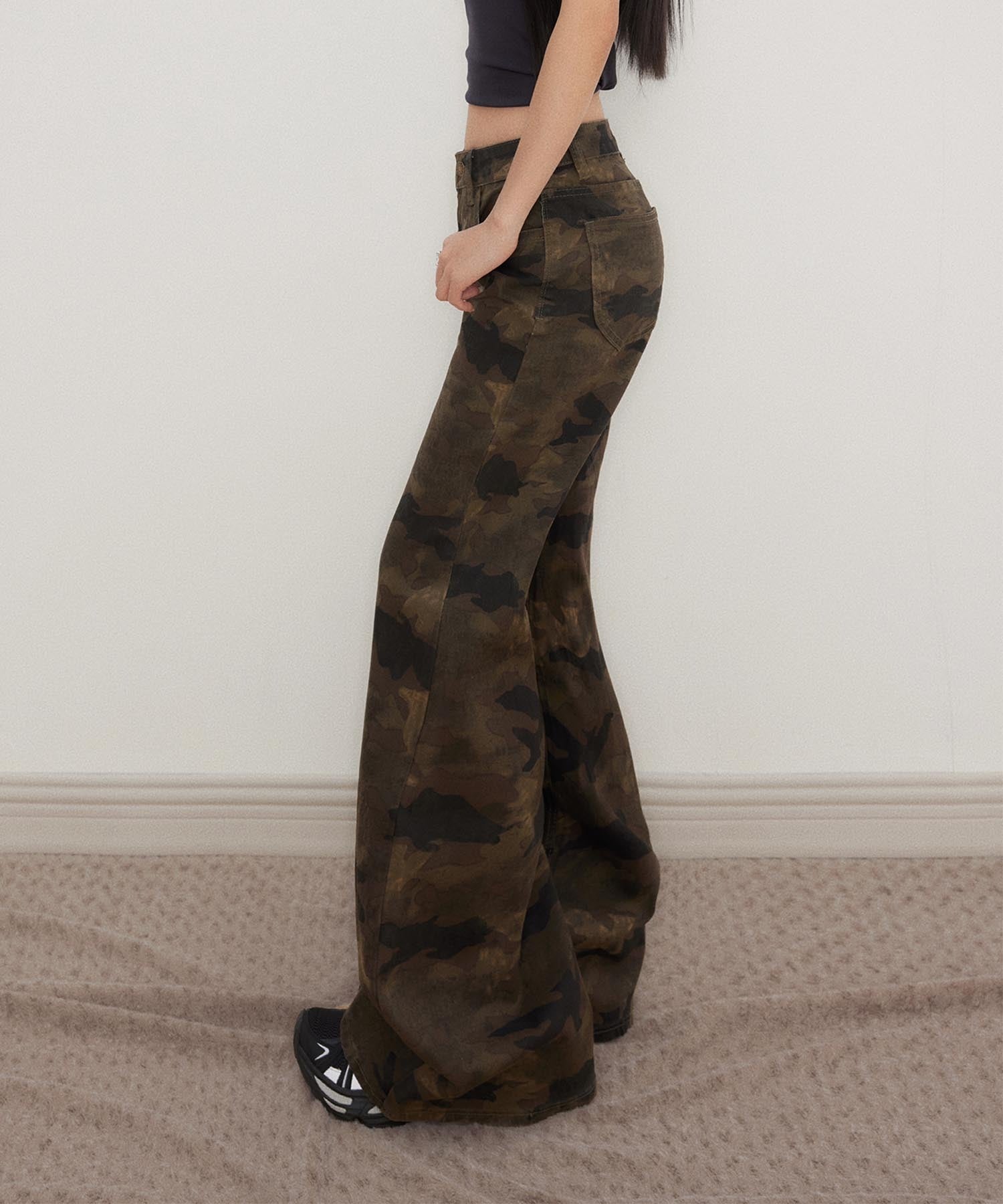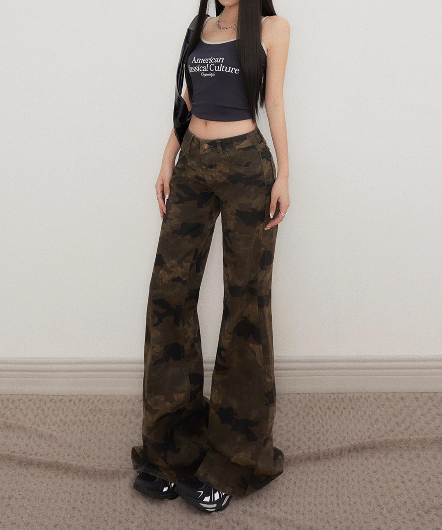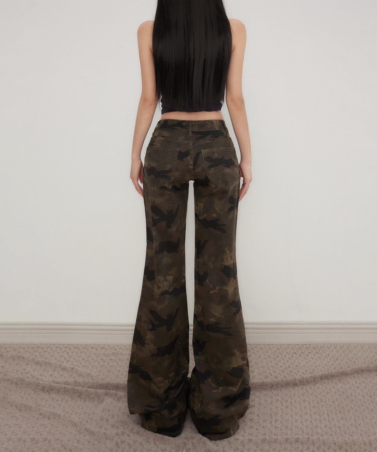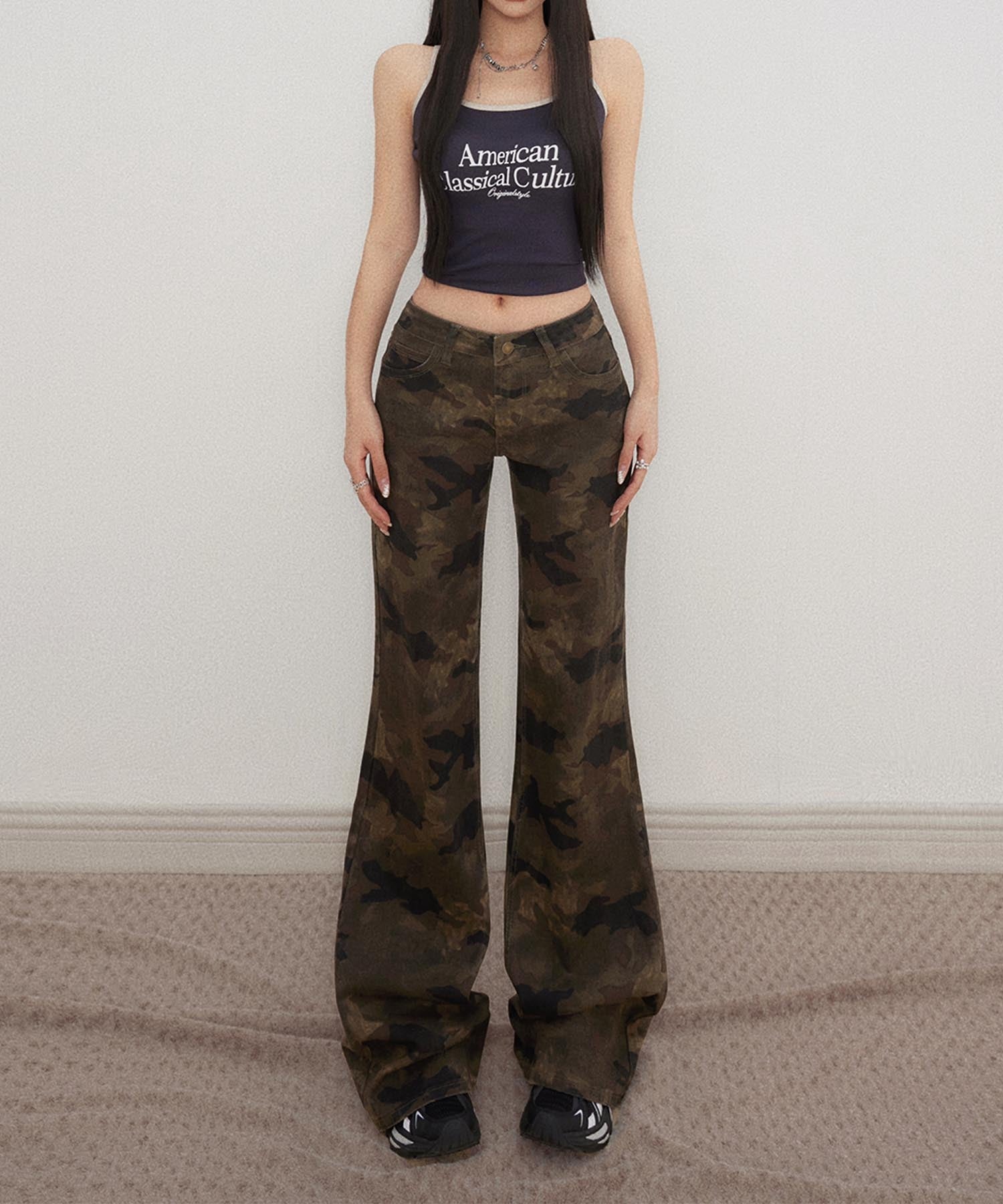 【HOOK】for girls ヴィンテージ×Y2K ローライズカモ柄フレアデニムパンツ