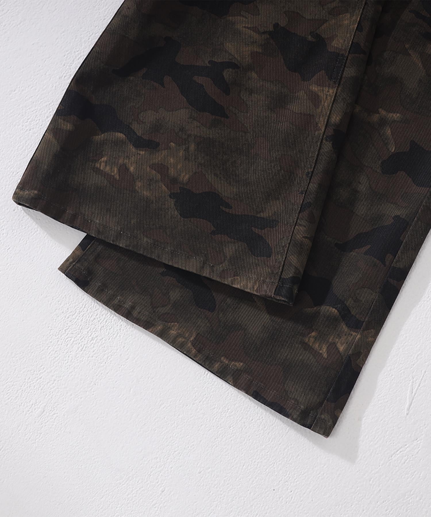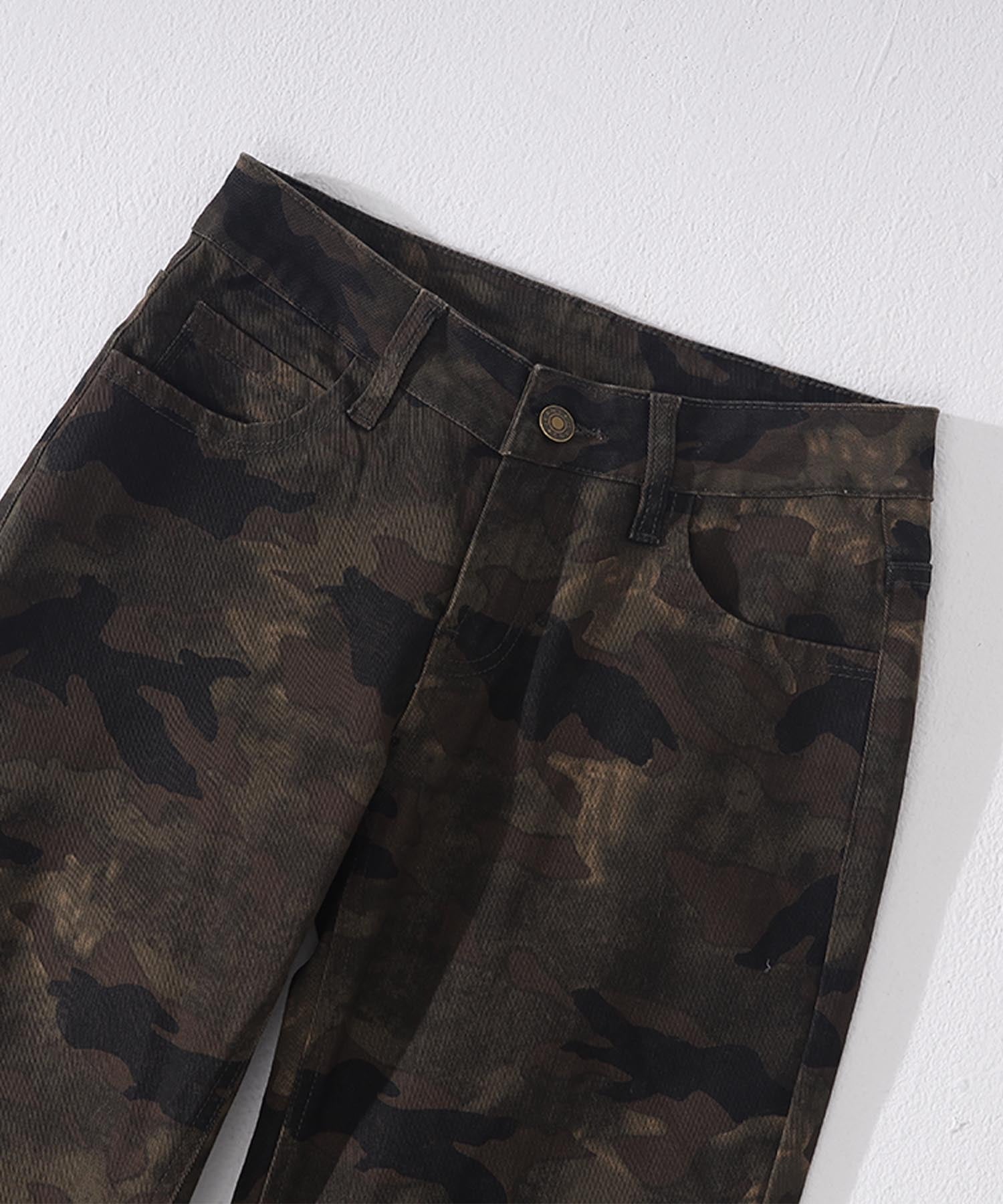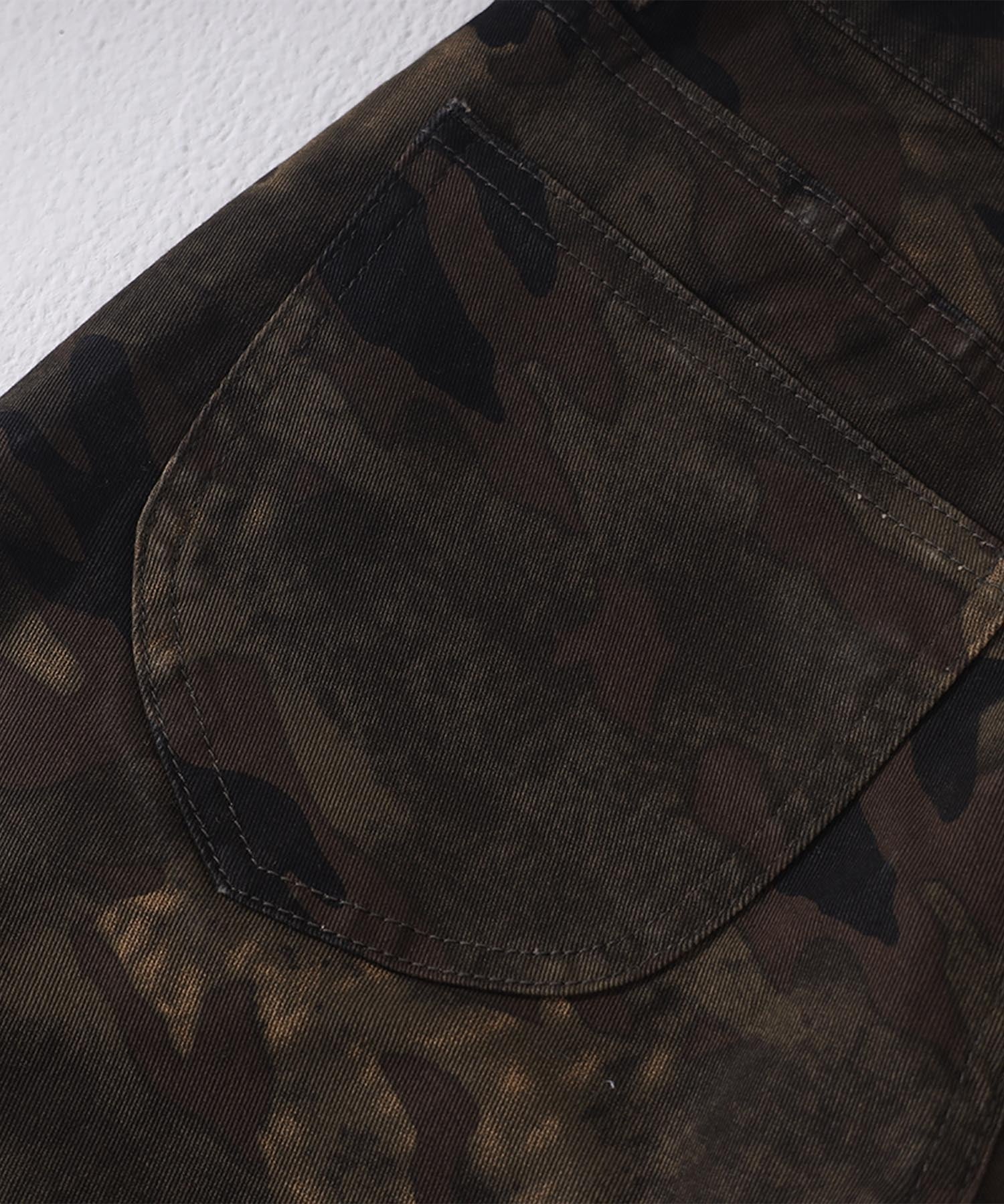 アメリカンヴィンテージからインスパイアされた迷彩柄がストリート感をプラスし、穿くだけでコーデがキマる一本。