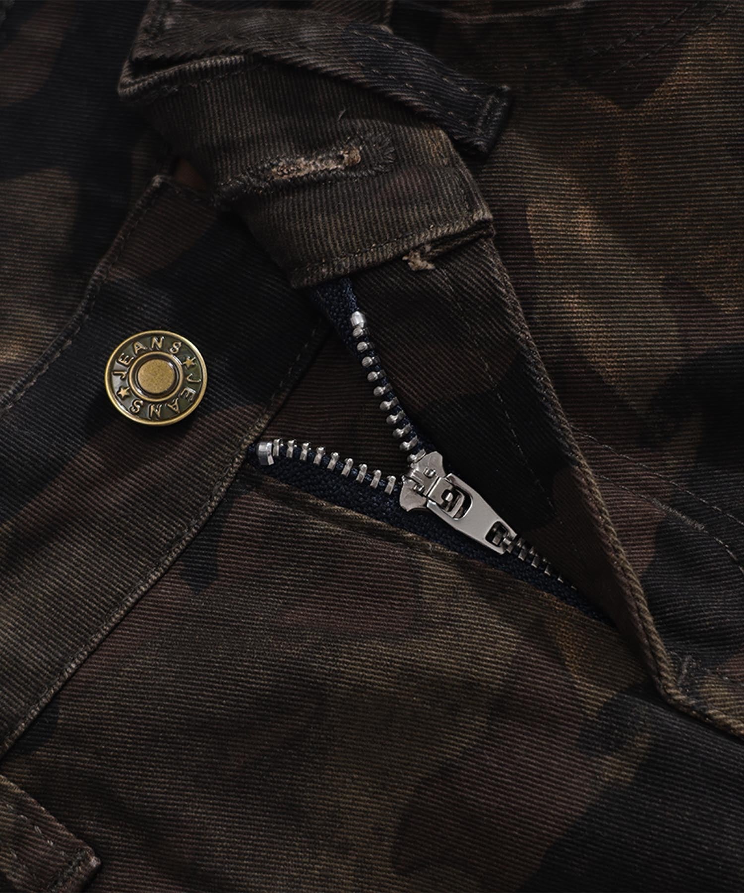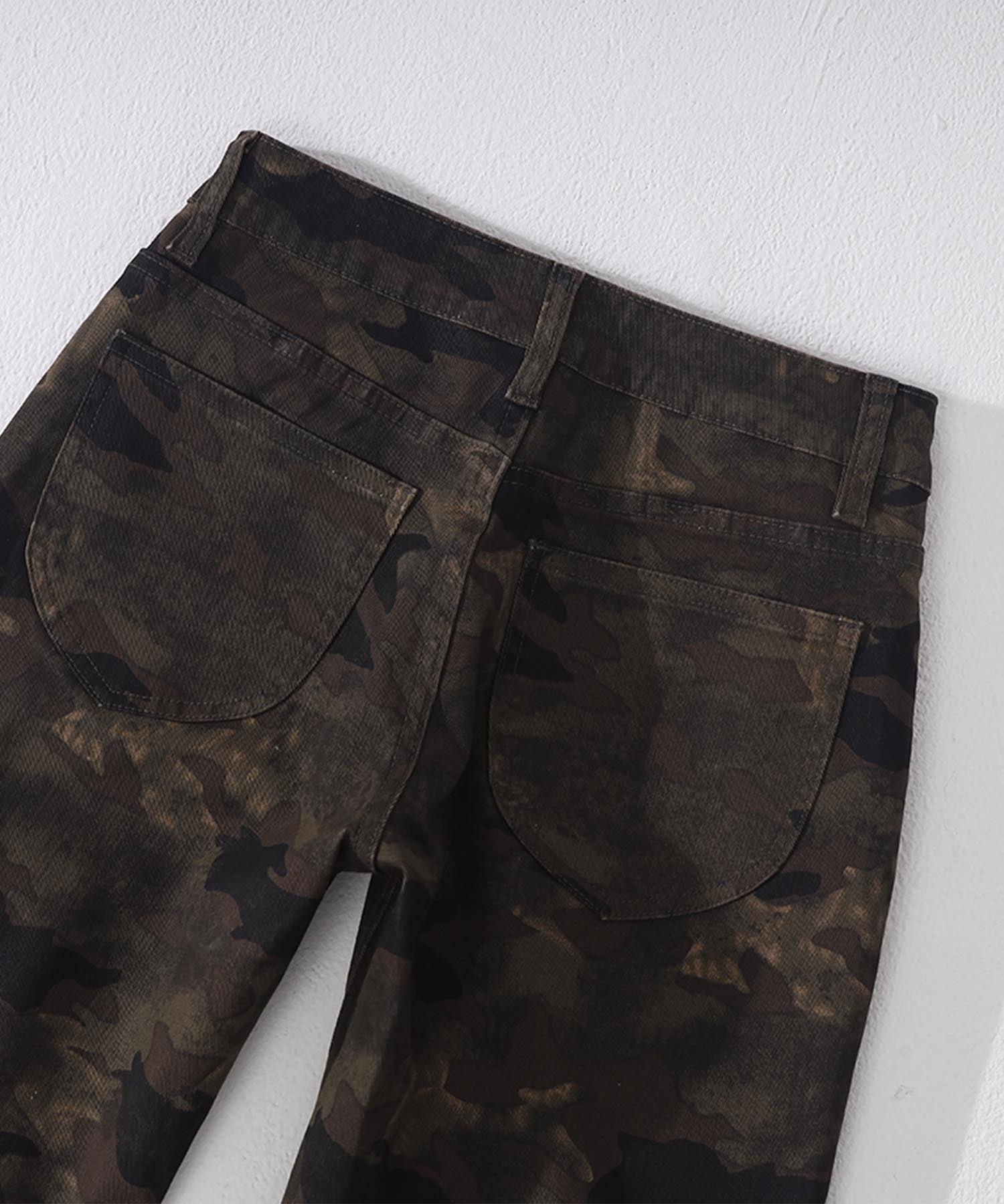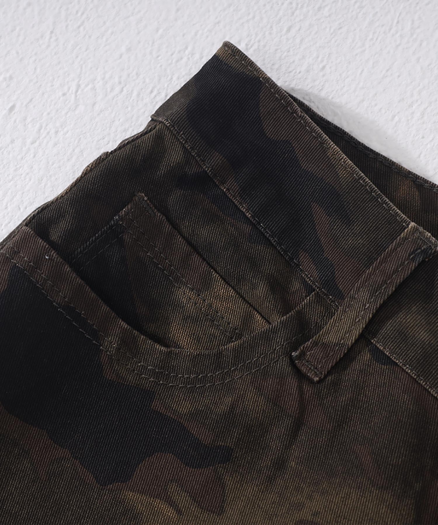 アメリカンヴィンテージからインスパイアされた迷彩柄がストリート感をプラスし、穿くだけでコーデがキマる一本。