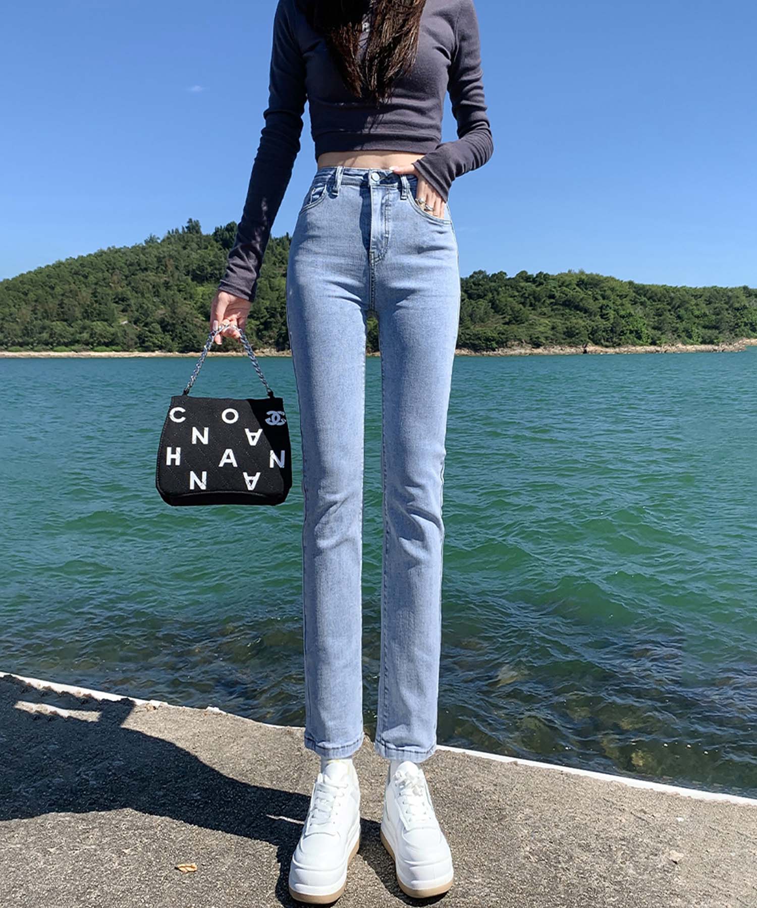 スタイリッシュなデザインで、女性らしい魅力を際立たせるデニムパンツ。ハイウエストデザインが脚のラインを長く見せ、スタイルアップ効果抜群◎