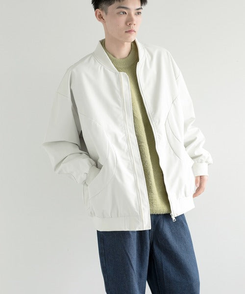 *フロントのジップクロージャー、リブ付きのカフスと裾が特徴です。シンプルながらも洗練されたデザインで、様々なスタイルにマッチします。サイドには便利なスナップボタンポケットがあり、実用性も考慮されています。色選びも豊富で、ブラック、オリーブグリーン、ホワイトの3色から選べます。