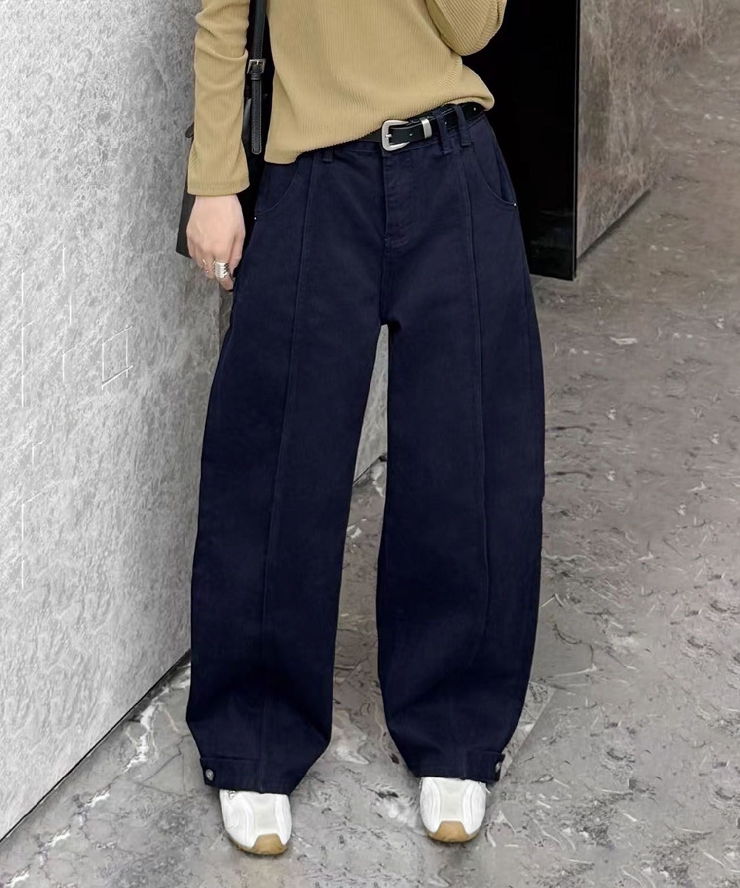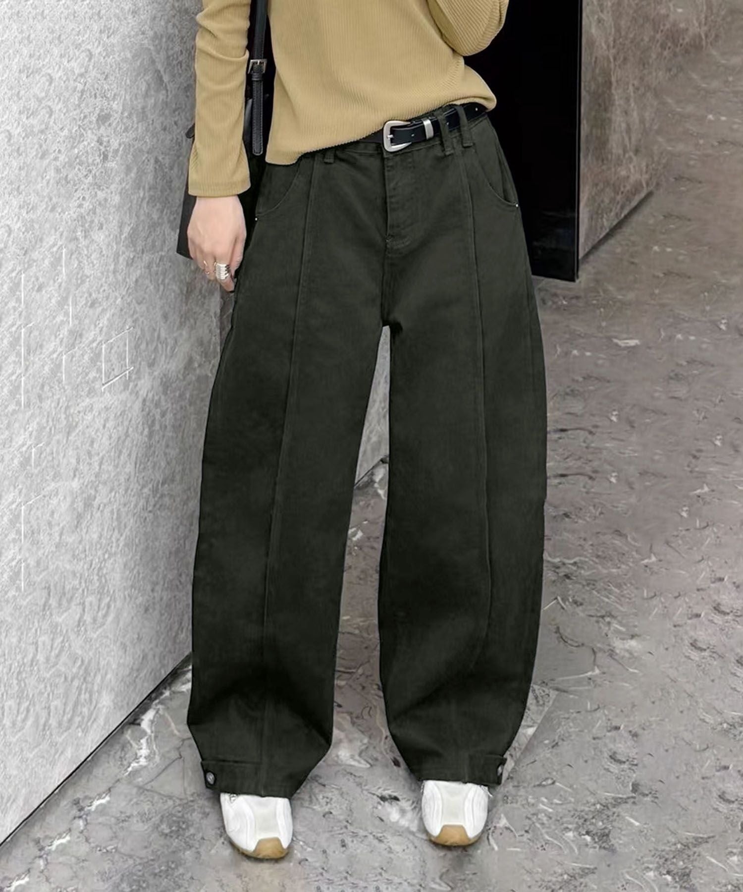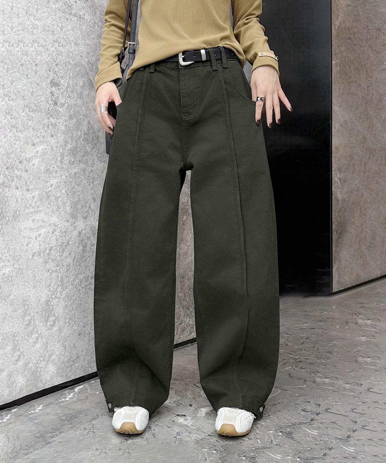 ■シーズントレンド今季注目の「ウエストマーク×ワイドシルエット」。ベルトデザインで一枚でもおしゃれが完成する万能パンツは、デイリーにもお出かけにも大活躍。1本持っているだけで着回し力抜群の、今季マストアイテムです。