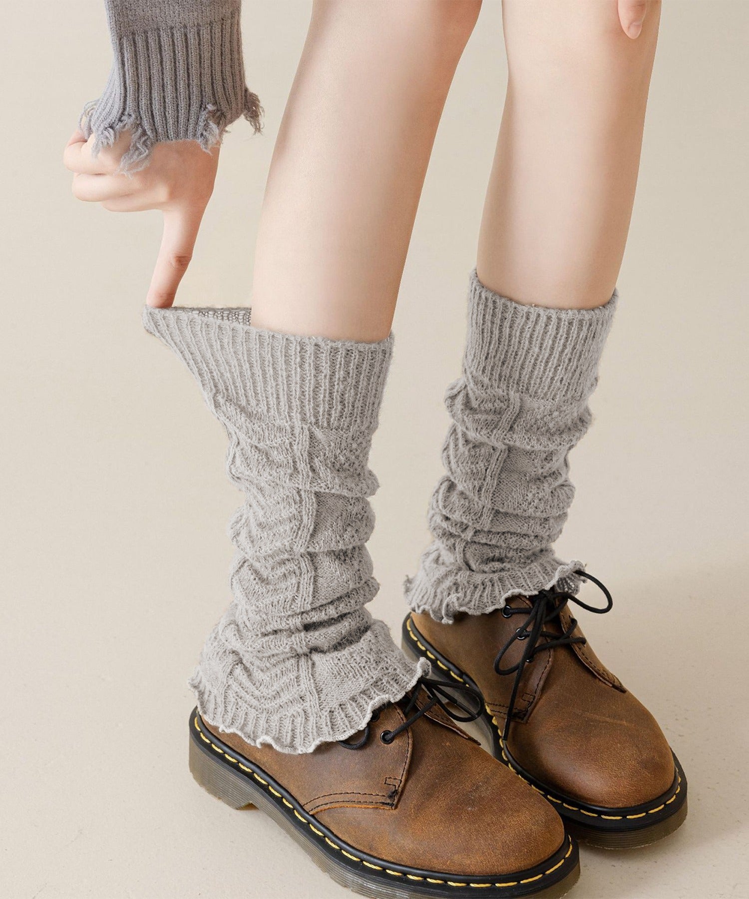 トレンドのY2Kファッションにぴったりの、ケーブル編みのレッグウォーマー。