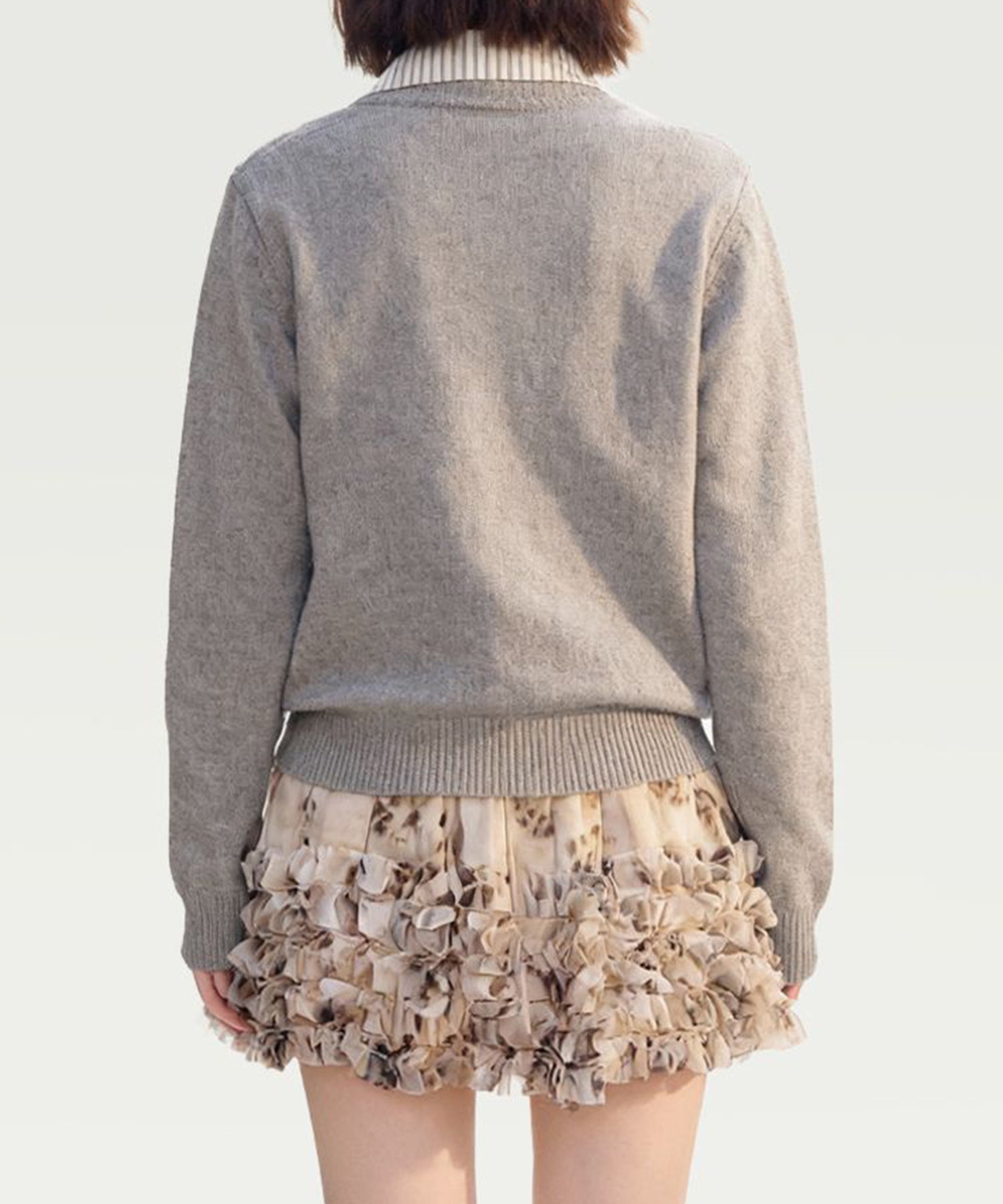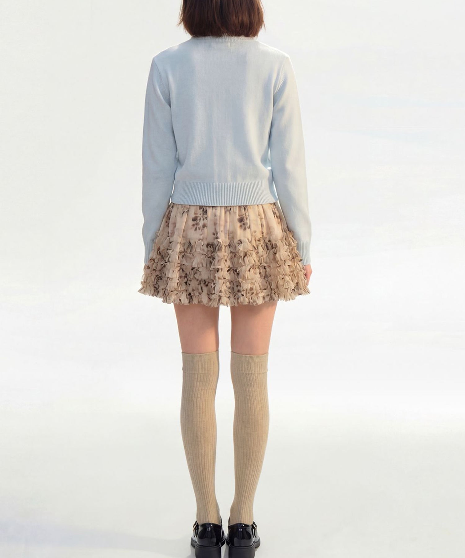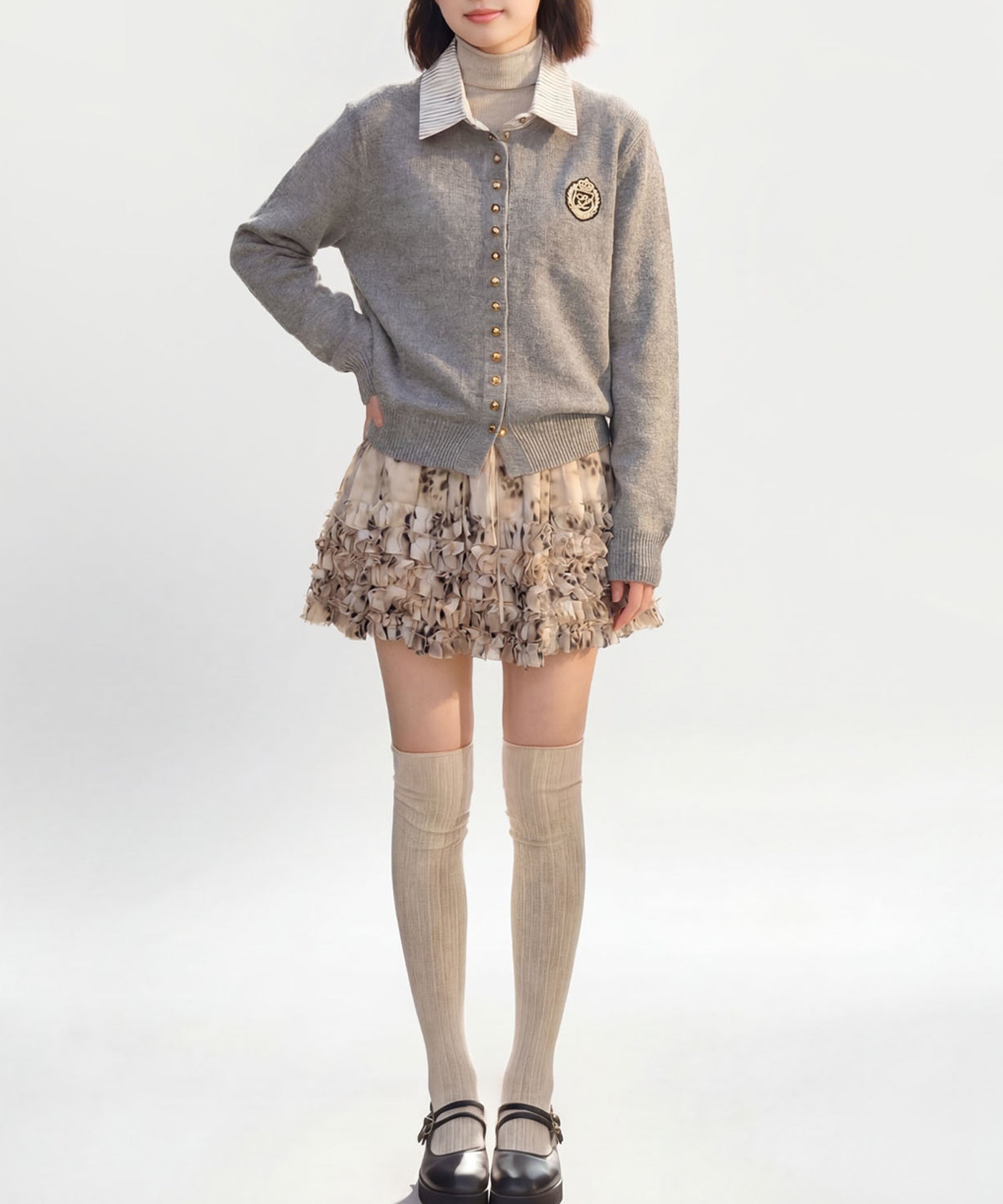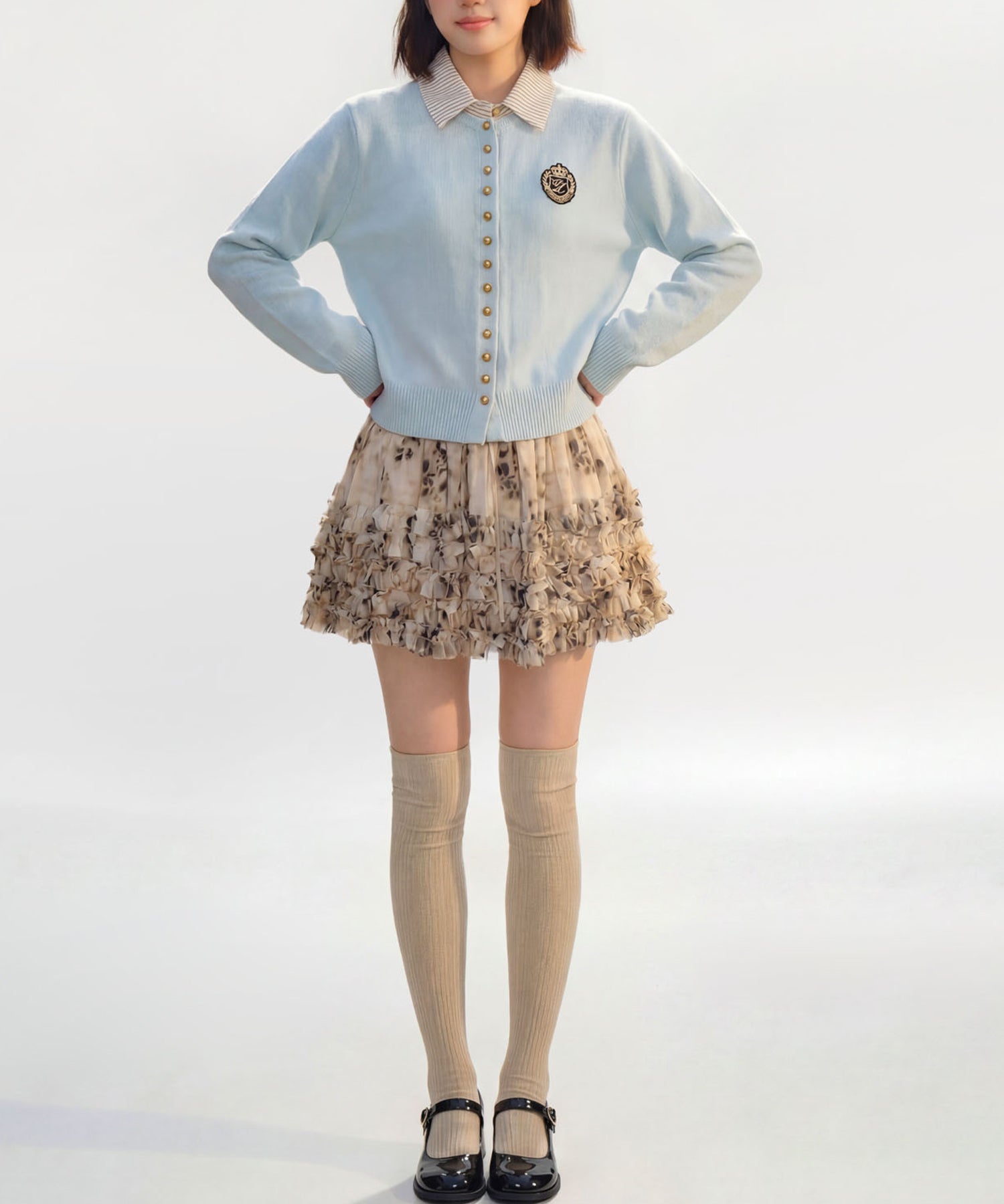 胸元にはクラシカルな刺繍ワッペン(エンブレム)がアクセントになり、ガーリーさとスクールライクな雰囲気を両立。