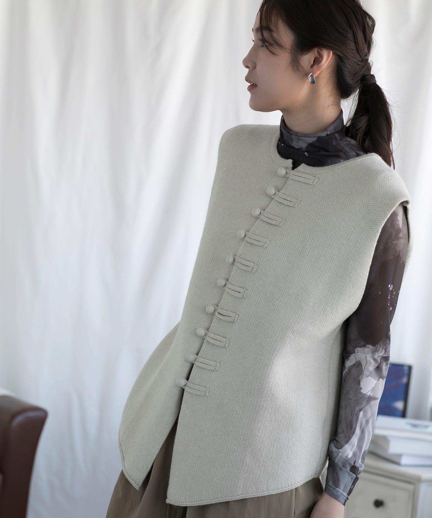 チャイナ風 ニットベスト