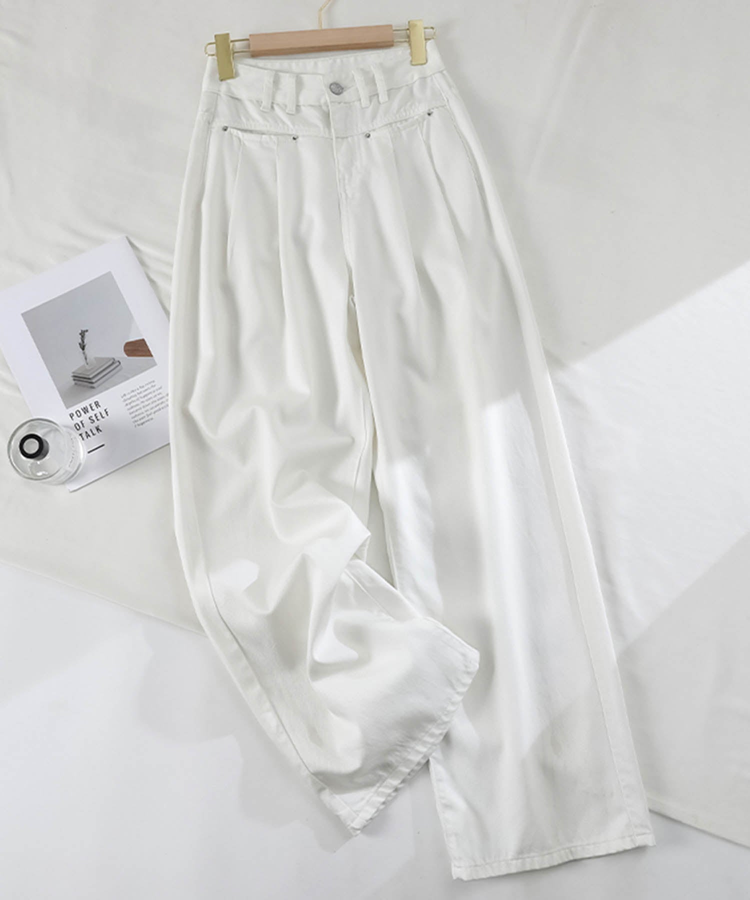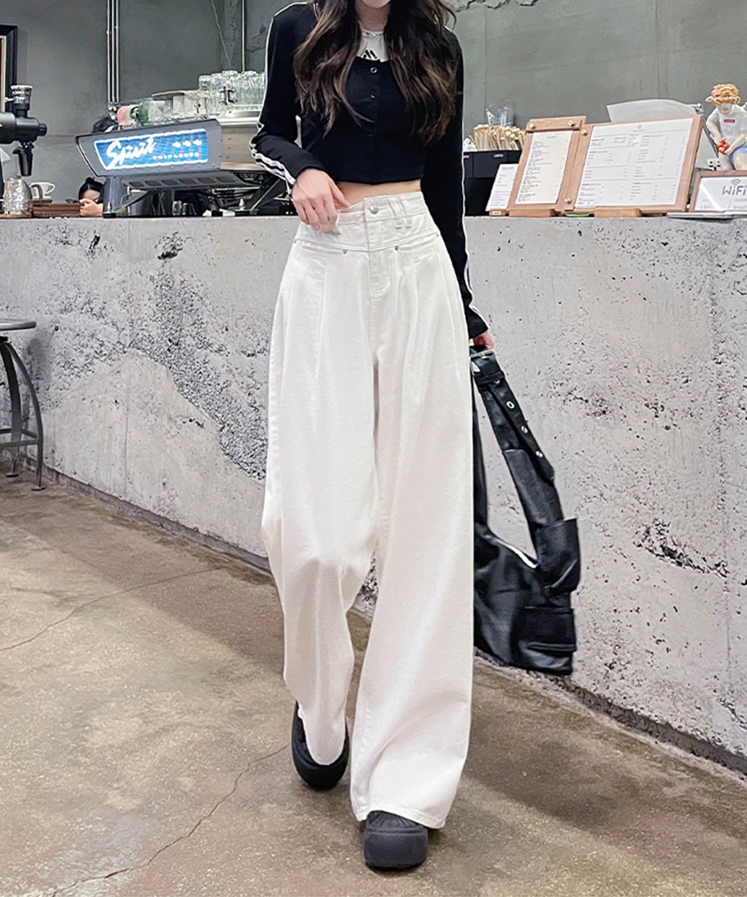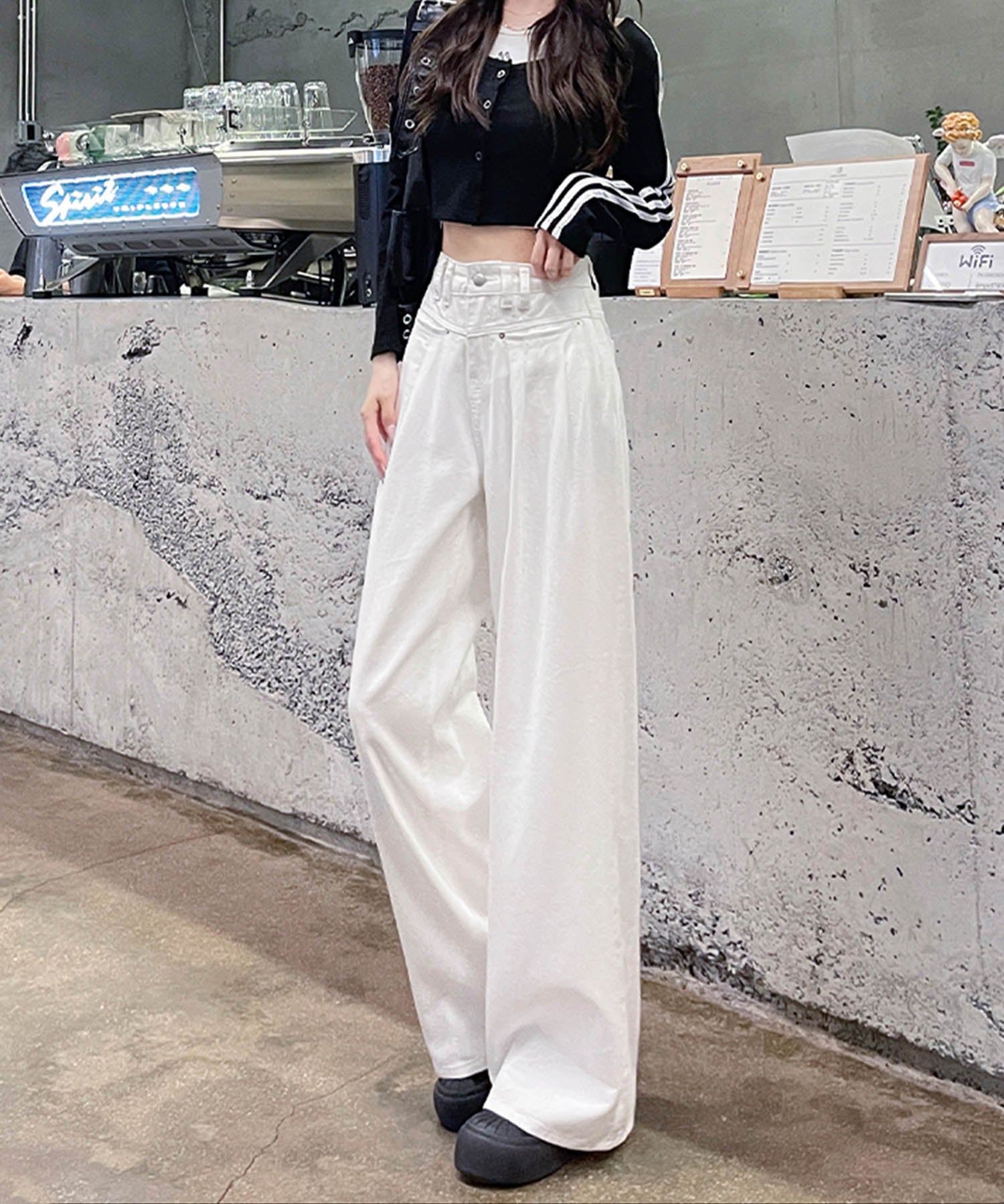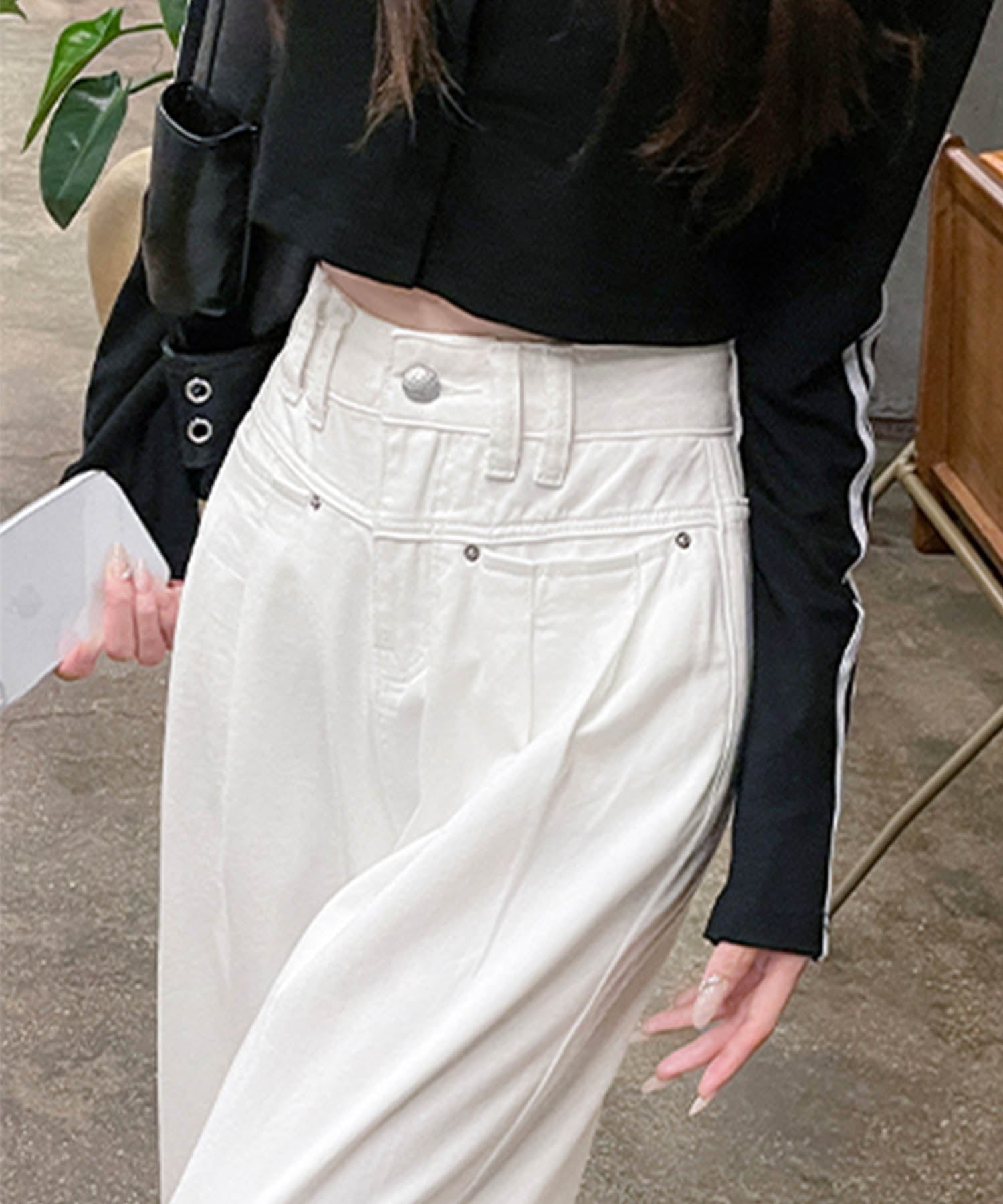トレンド感あふれるハイウエストワイドデニムパンツが登場!ゆったりとしたシルエットが動きやすく、スタイルアップ効果も抜群です。ホワイト、ネイビー、ライトブルーの3色展開で、カジュアルからモードまで幅広いコーデに対応。どんなトップスとも合わせやすい万能アイテムです。
