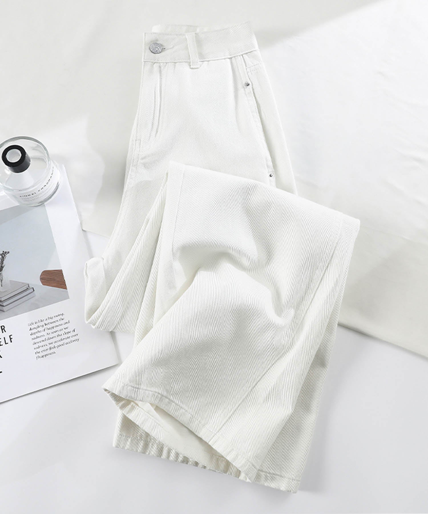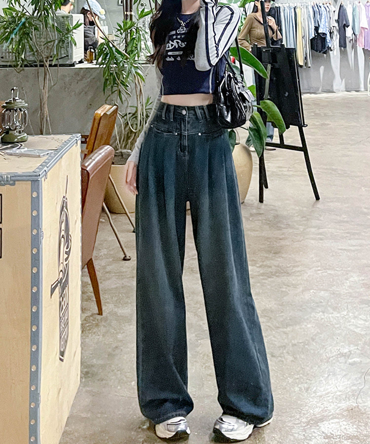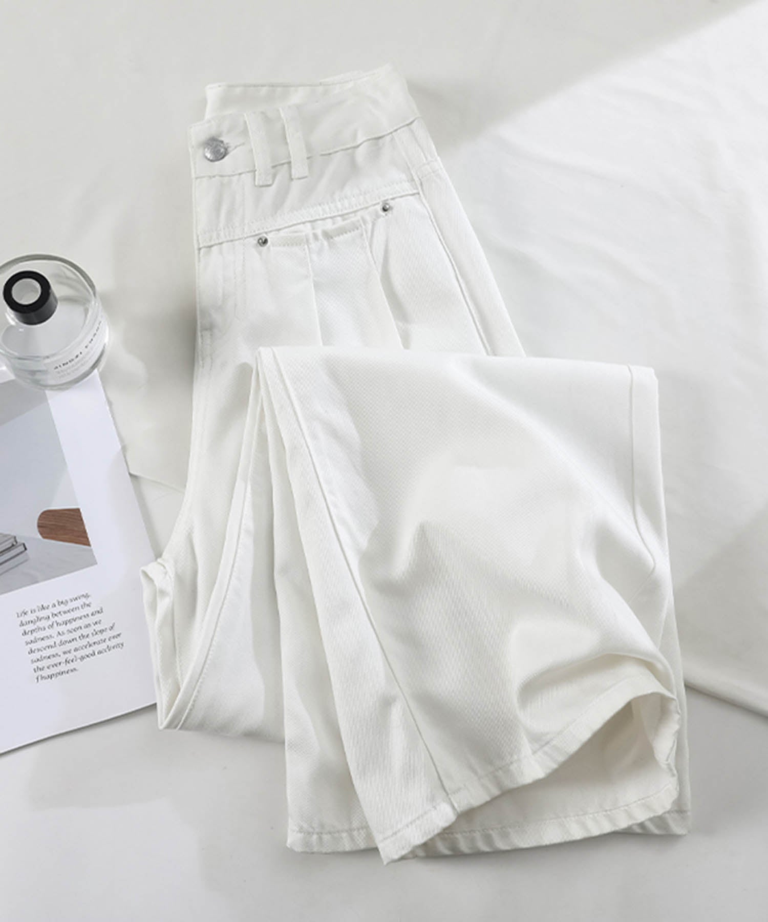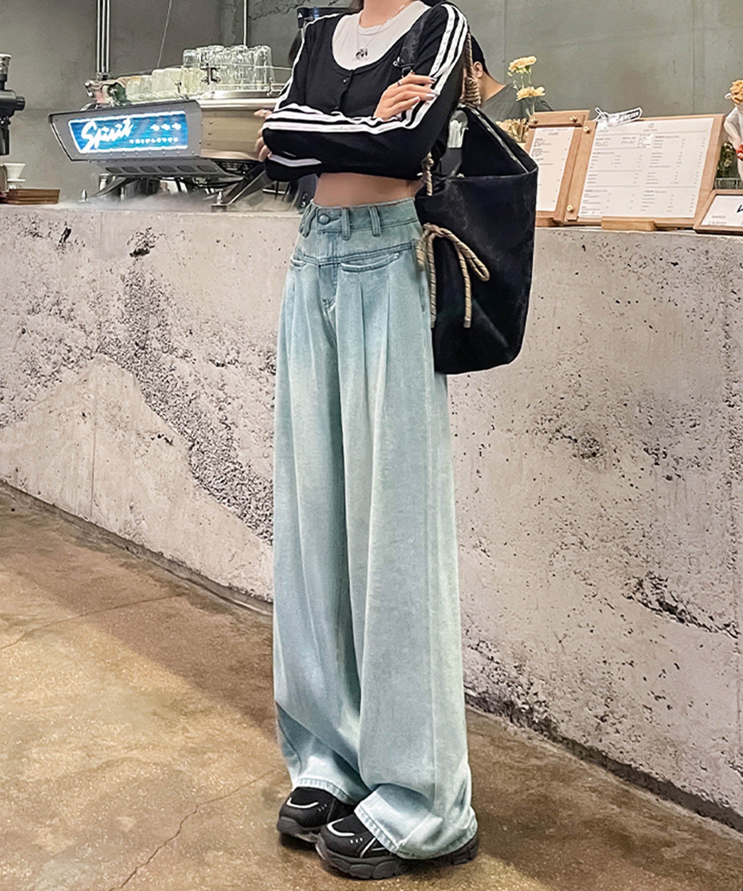 トレンド感あふれるハイウエストワイドデニムパンツが登場!ゆったりとしたシルエットが動きやすく、スタイルアップ効果も抜群です。ホワイト、ネイビー、ライトブルーの3色展開で、カジュアルからモードまで幅広いコーデに対応。どんなトップスとも合わせやすい万能アイテムです。