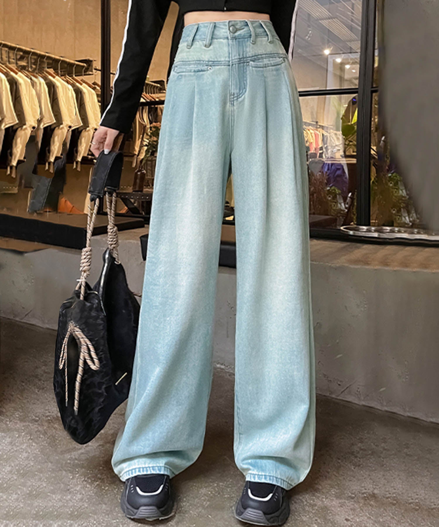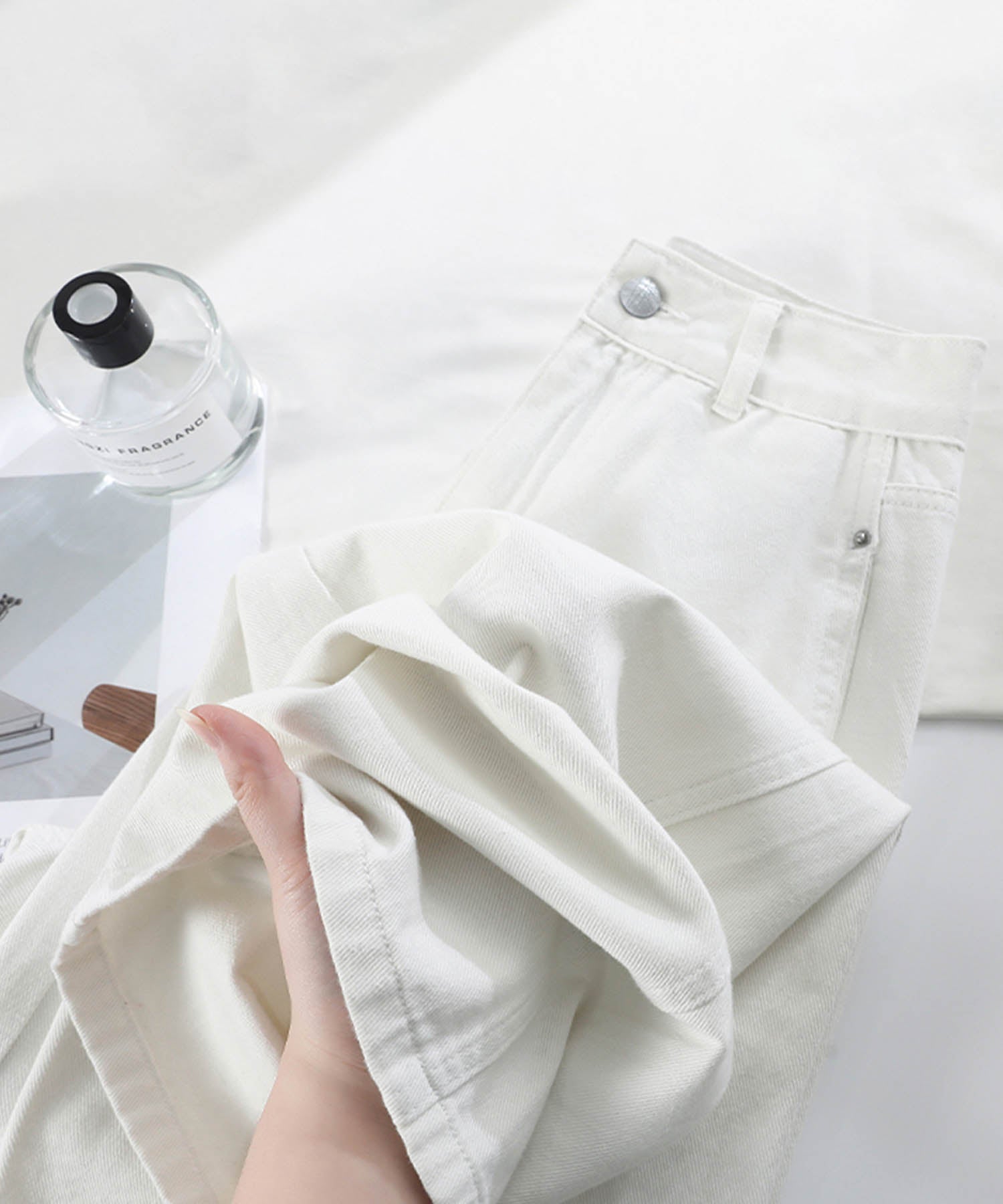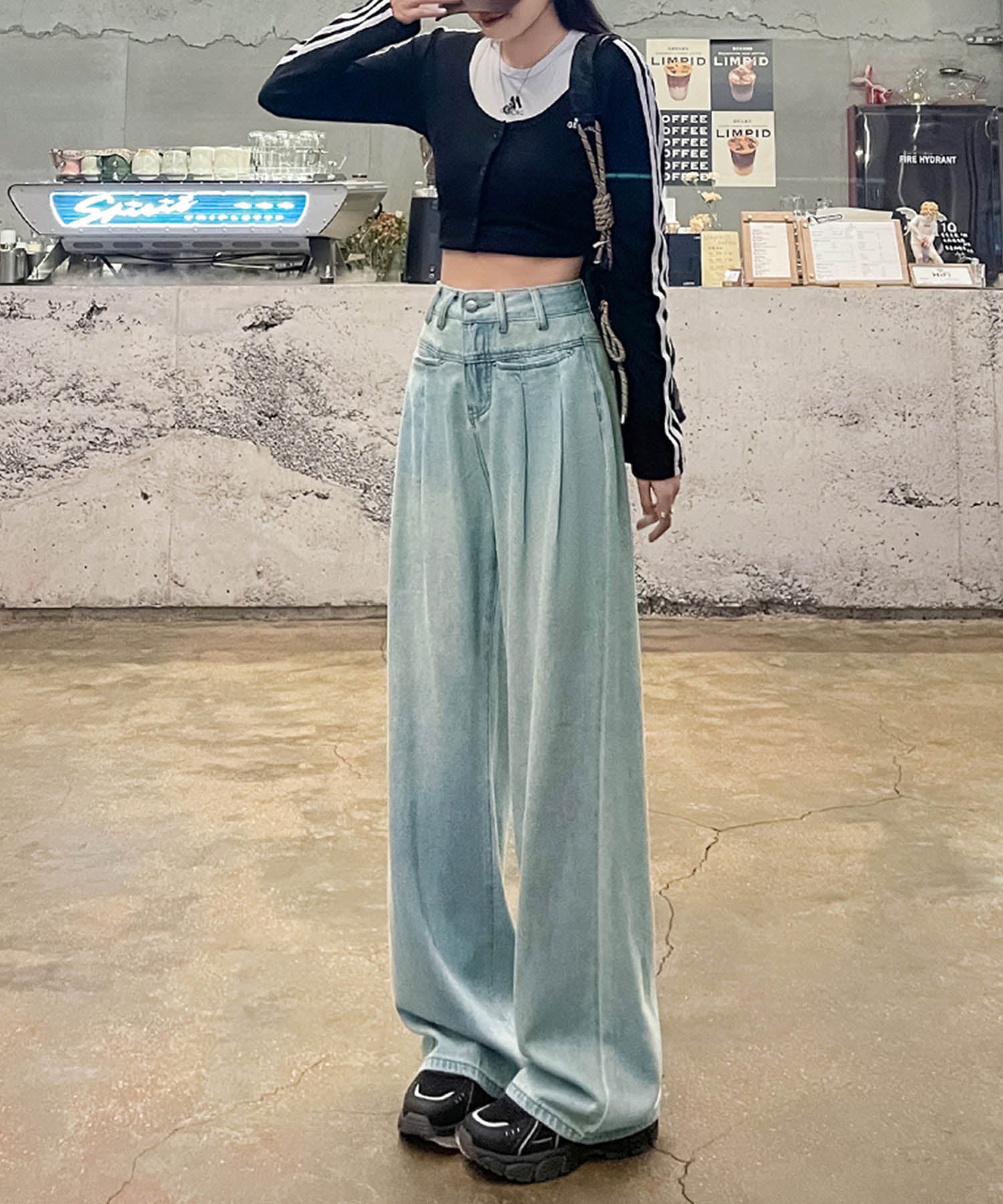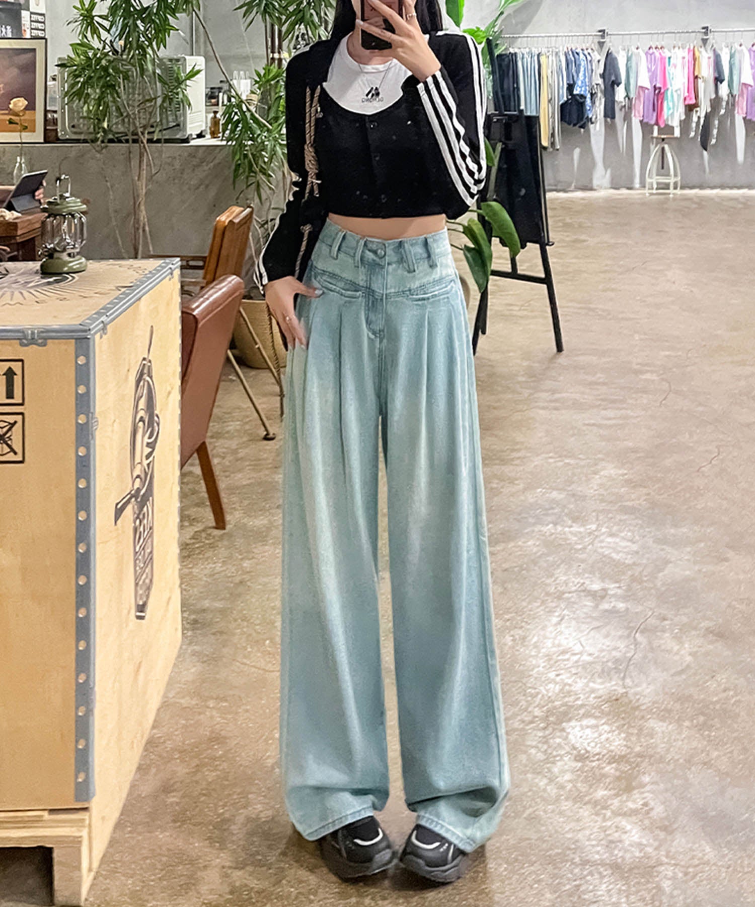 トレンド感あふれるハイウエストワイドデニムパンツが登場!ゆったりとしたシルエットが動きやすく、スタイルアップ効果も抜群です。ホワイト、ネイビー、ライトブルーの3色展開で、カジュアルからモードまで幅広いコーデに対応。どんなトップスとも合わせやすい万能アイテムです。